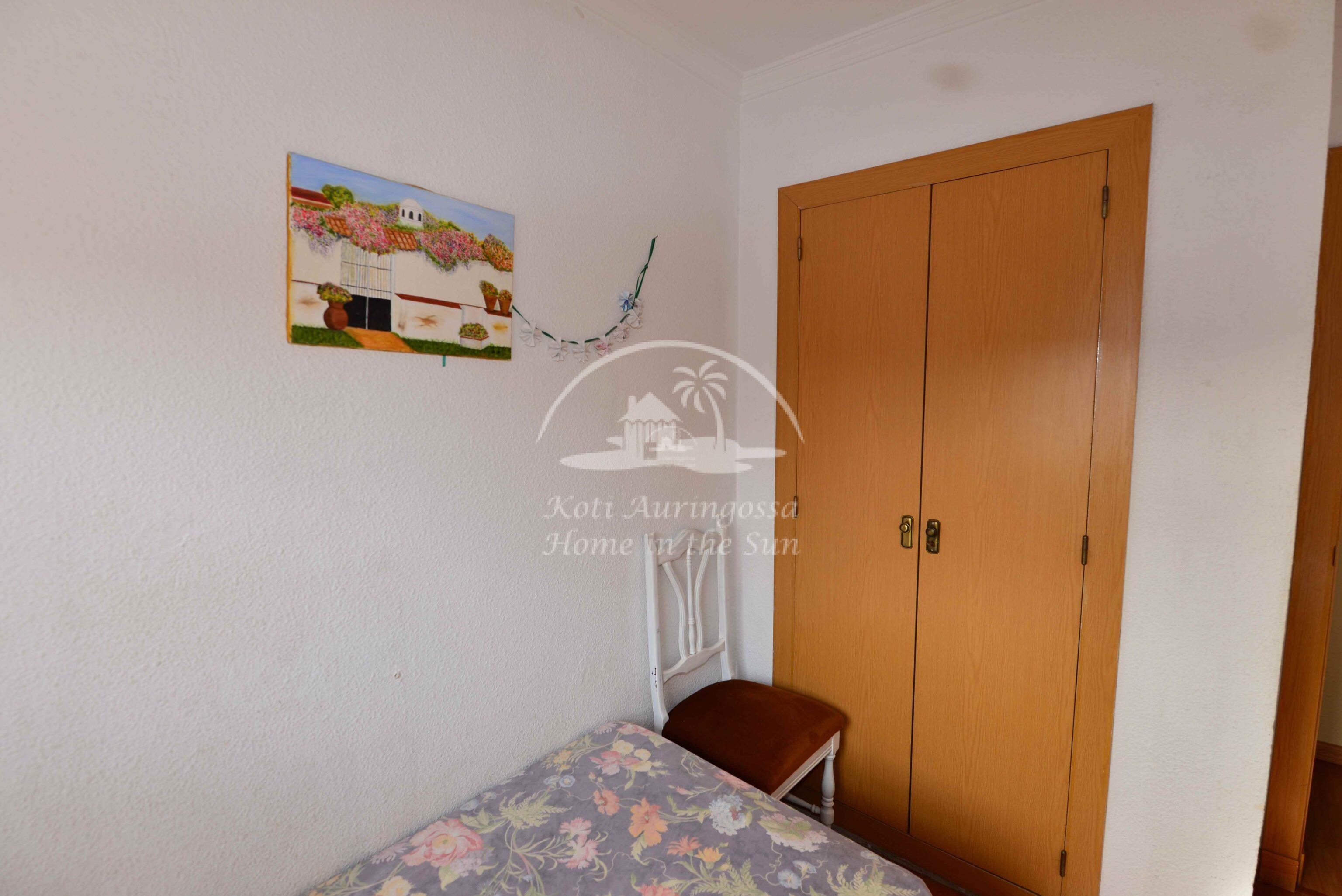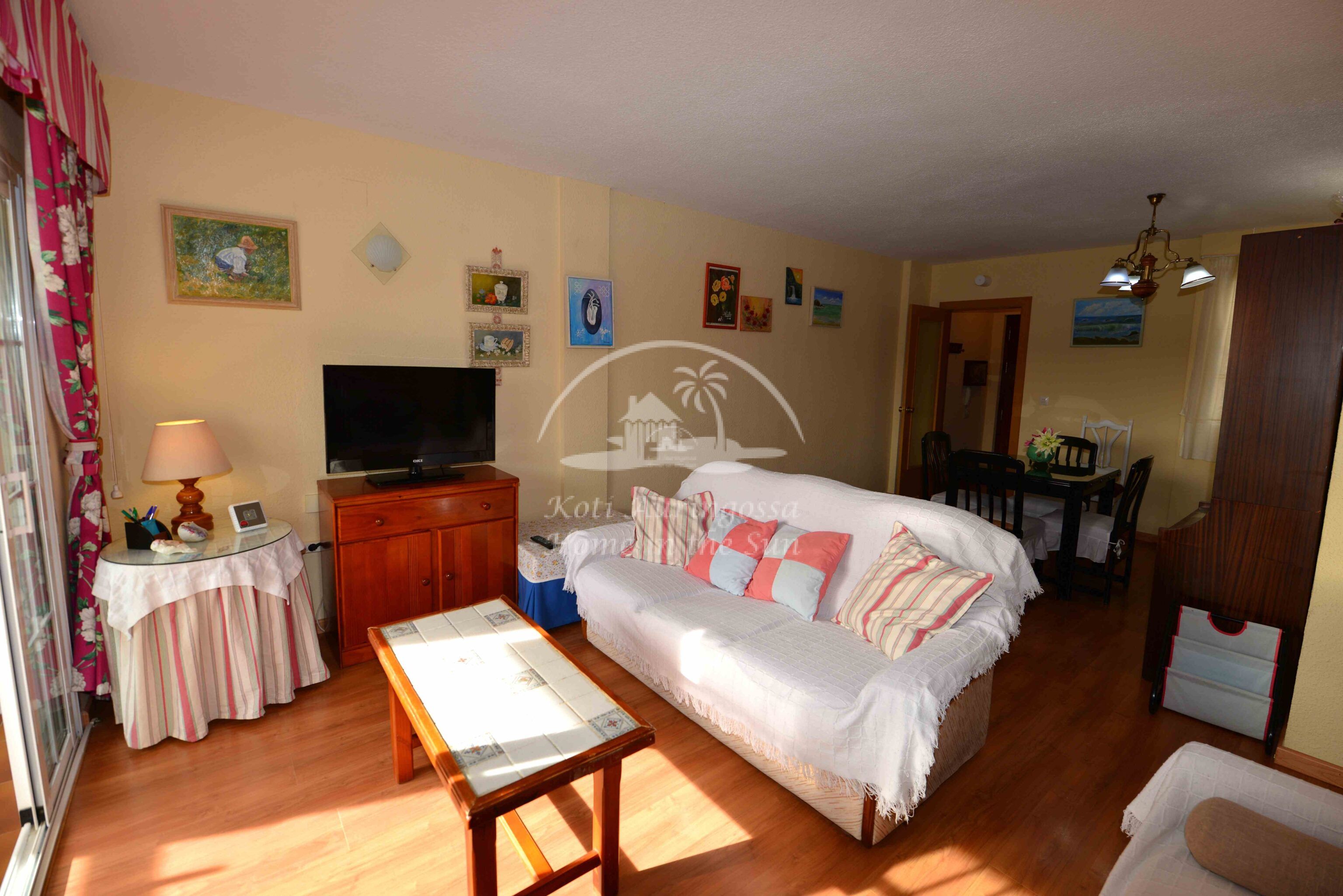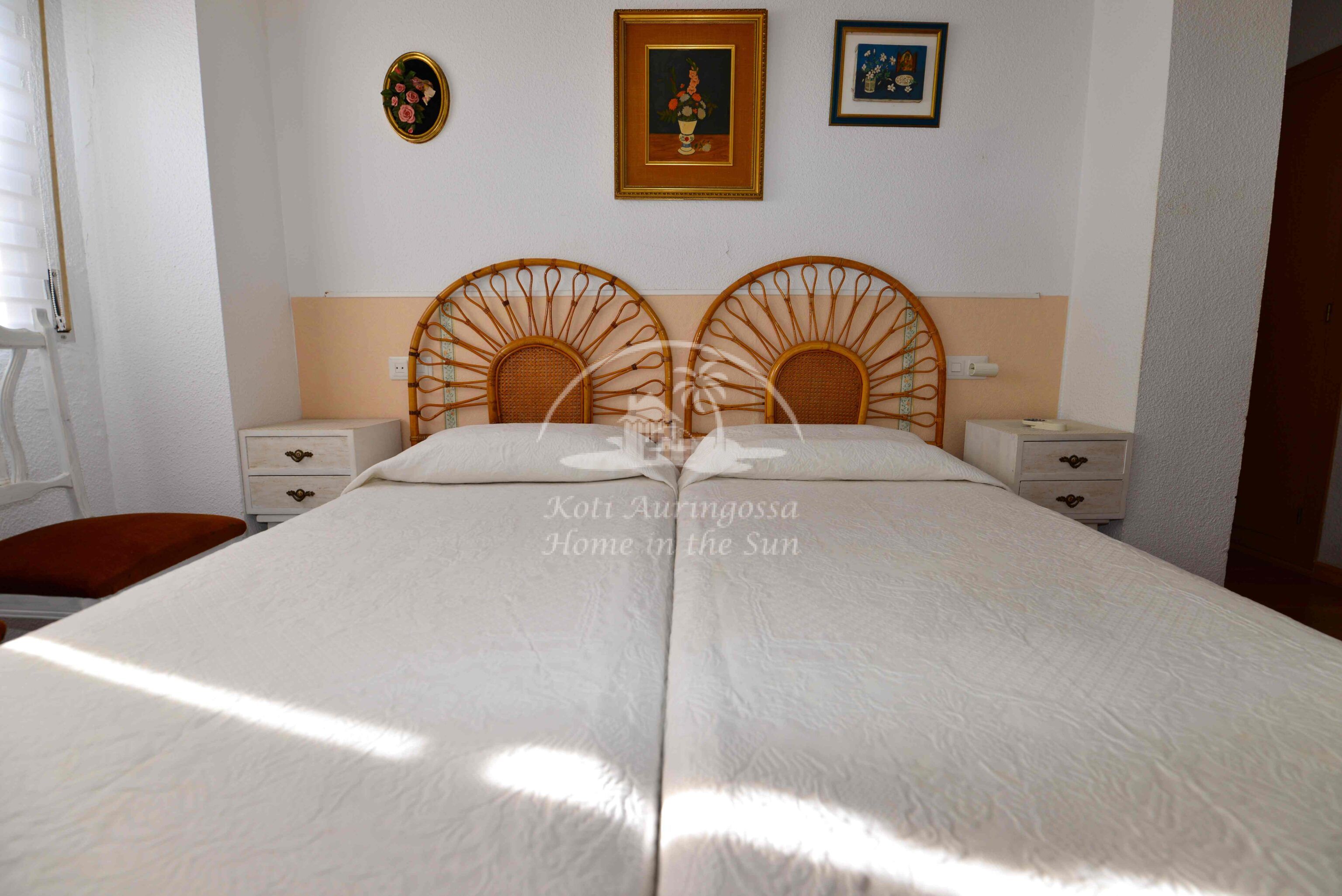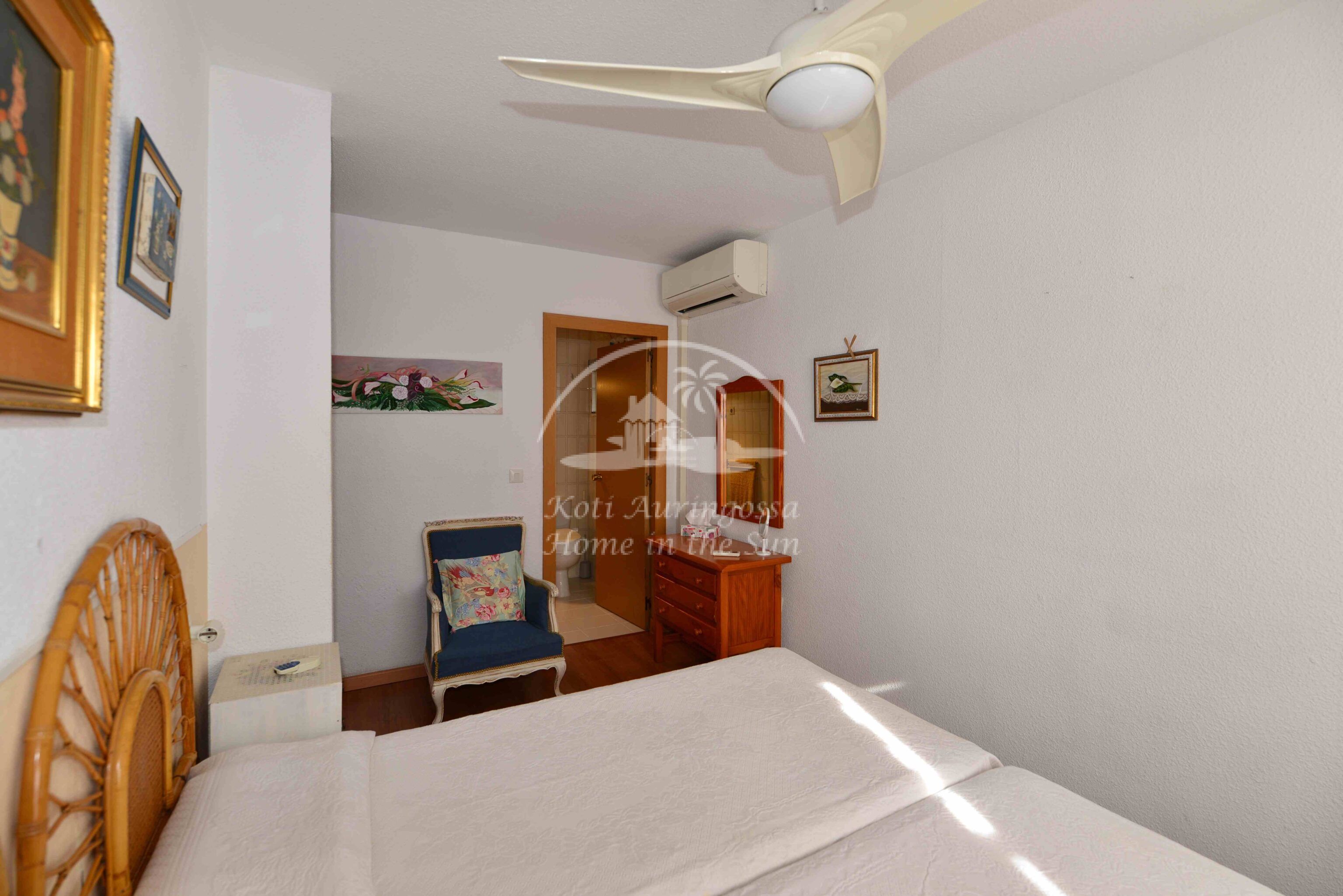 Tässä kodikkaasti kalustetussa asunnossa on valoisa olohuone ja ruokailutila, josta on käynti aurinkoiselle, länteen päin olevalle terassille. Terassilta on näkymät Los Bolichesin keskustaan. Asunnossa on hyvin varusteltu erillinen keittiö sekä sen perällä vielä erillinen kodinhoitohuone. Keittiössä kaikki toimii sähköllä. 2 makuuhuonetta. 2 kylpyhuonetta. Olohuoneessa ilmastointi/lämpöpumppu. Nopea valokuitu wifi internet yhteys. Taloyhtiössä on tenniskenttä ja kaksi suurta uima-allasta vehreän nurmikko puutarhan ympäröimänä. Yks uima-allas on auki ja käytettävissä ympäri vuoden. Kaikki keskustan palvelut lähellä.