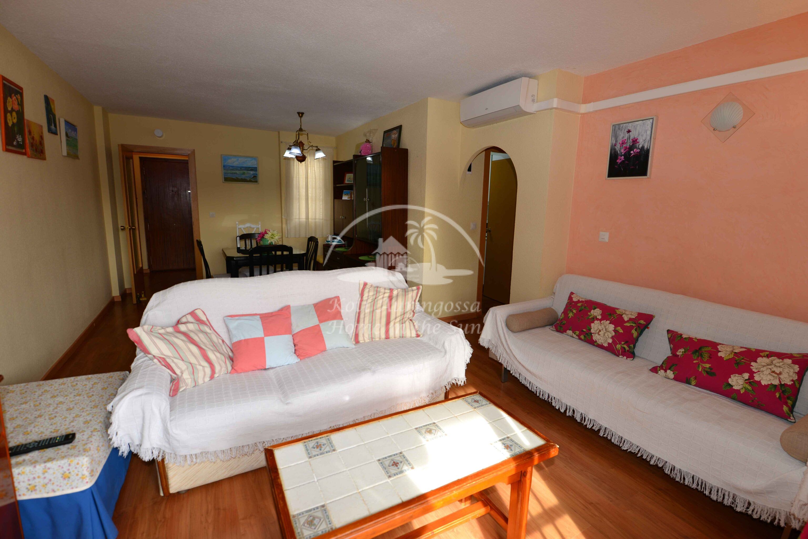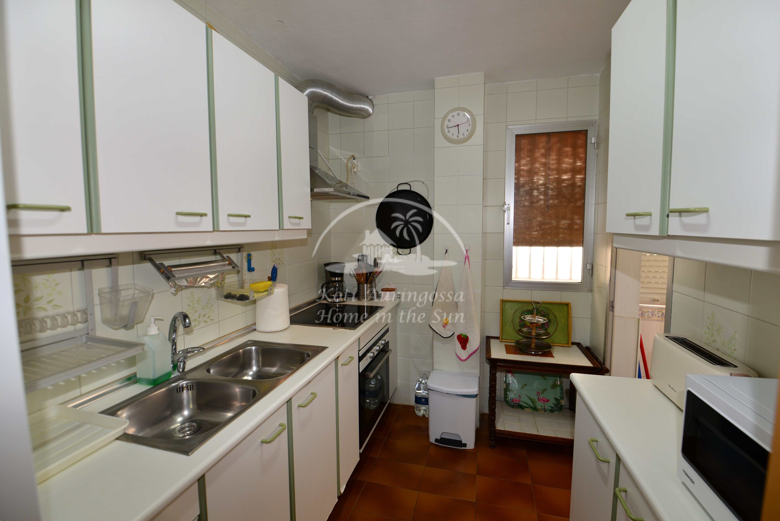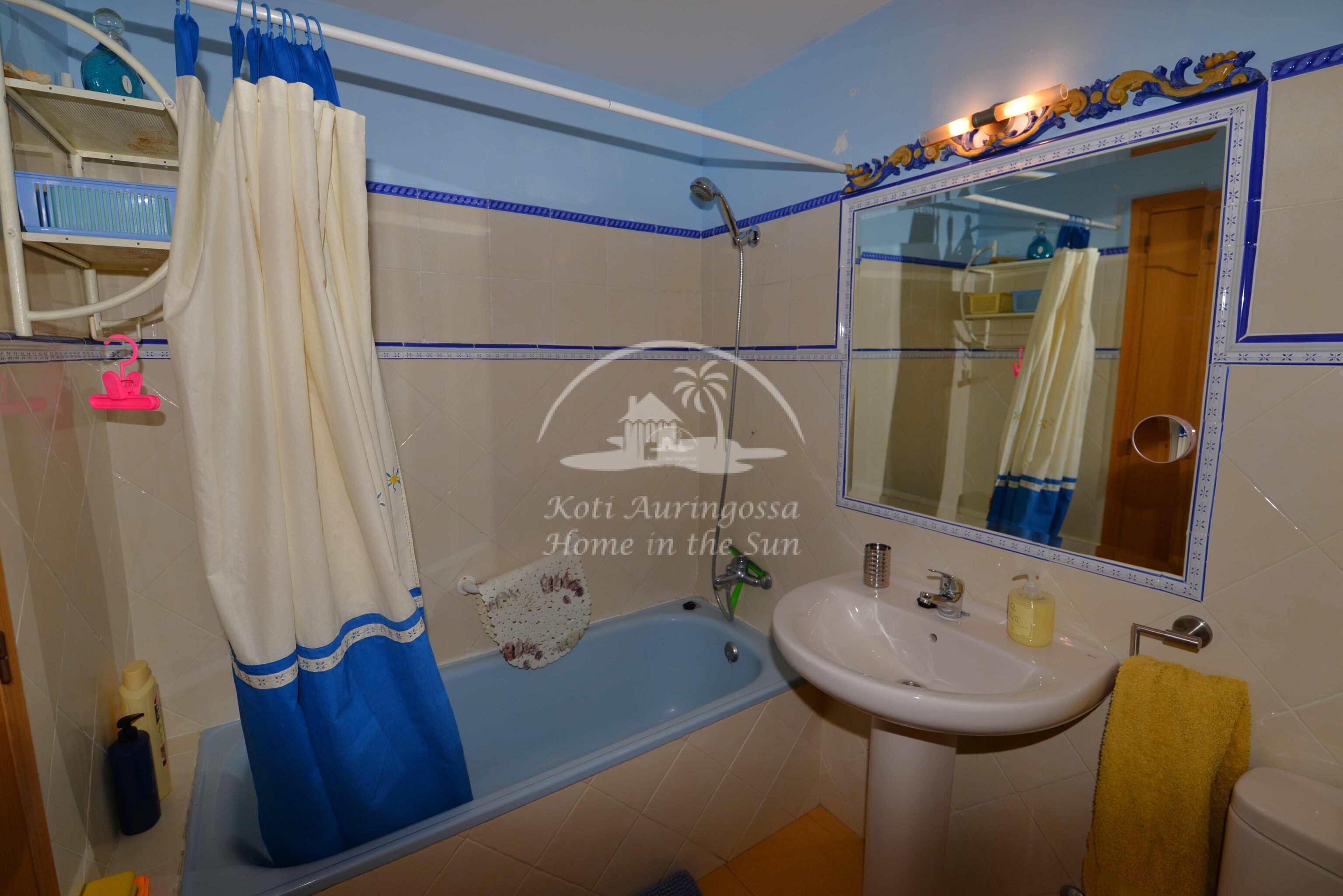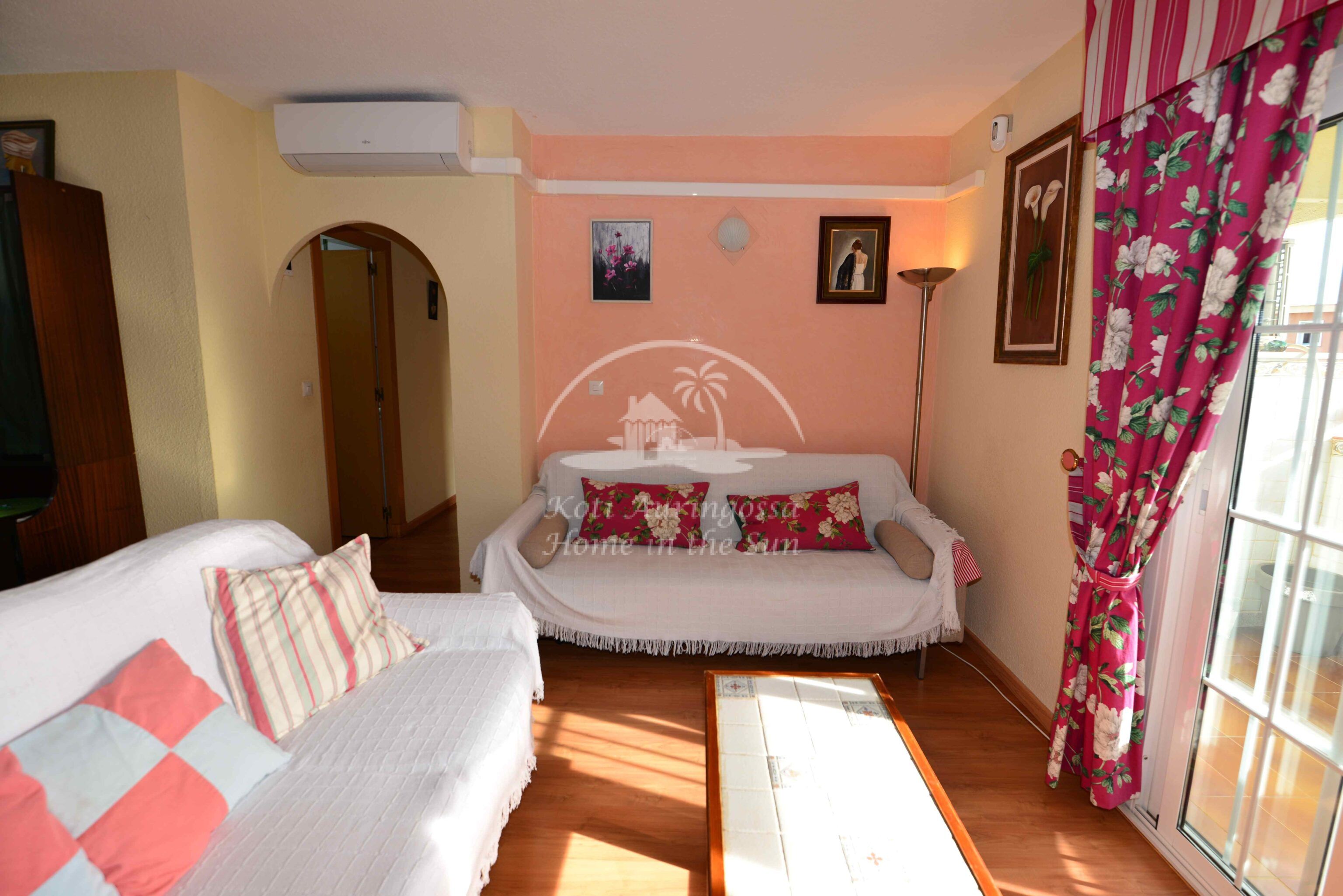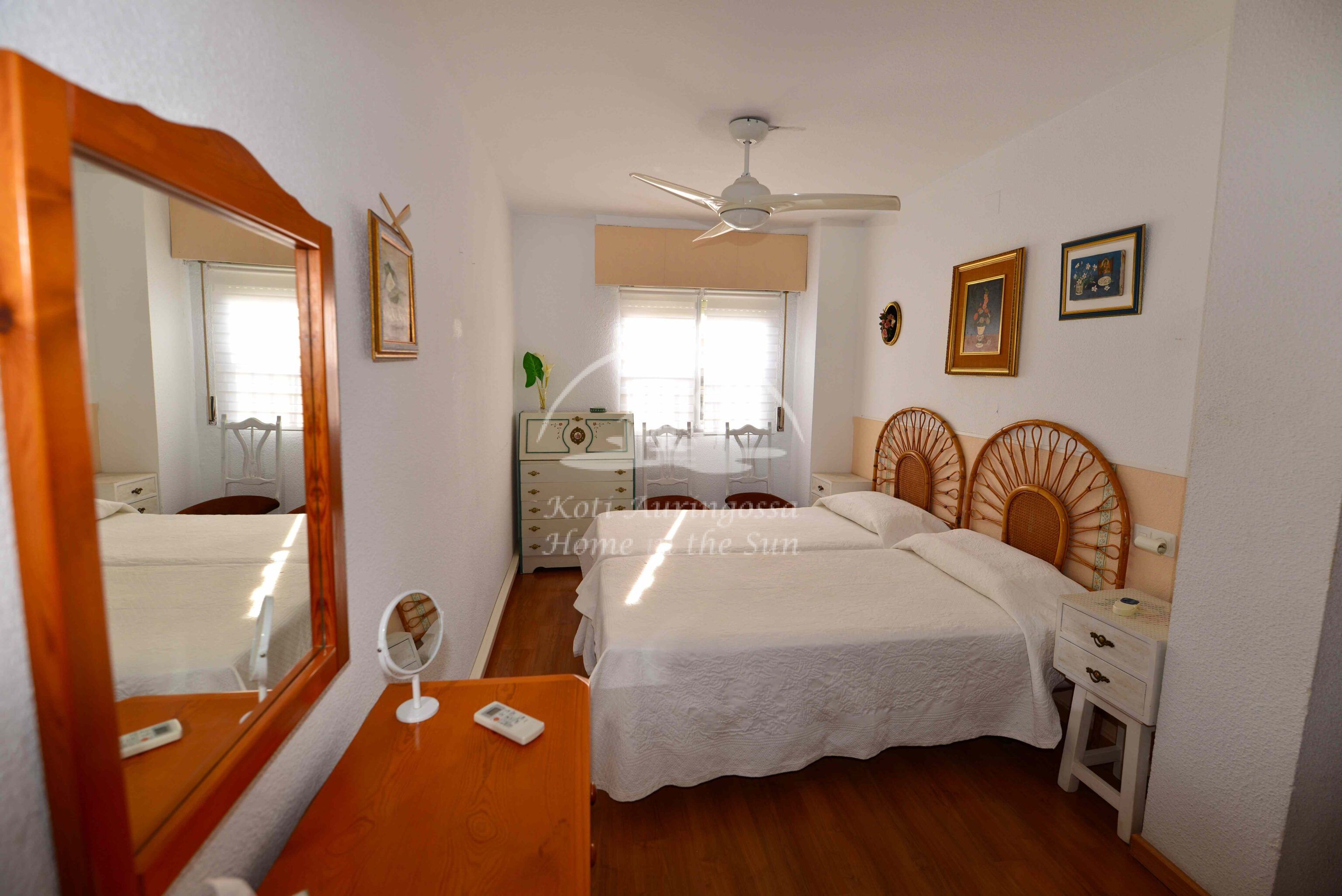 Tässä kodikkaasti kalustetussa asunnossa on valoisa olohuone ja ruokailutila, josta on käynti aurinkoiselle, länteen päin olevalle terassille. Terassilta on näkymät Los Bolichesin keskustaan. Asunnossa on hyvin varusteltu erillinen keittiö sekä sen perällä vielä erillinen kodinhoitohuone. Keittiössä kaikki toimii sähköllä. 2 makuuhuonetta. 2 kylpyhuonetta. Olohuoneessa ilmastointi/lämpöpumppu. Nopea valokuitu wifi internet yhteys. Taloyhtiössä on tenniskenttä ja kaksi suurta uima-allasta vehreän nurmikko puutarhan ympäröimänä. Yks uima-allas on auki ja käytettävissä ympäri vuoden. Kaikki keskustan palvelut lähellä.