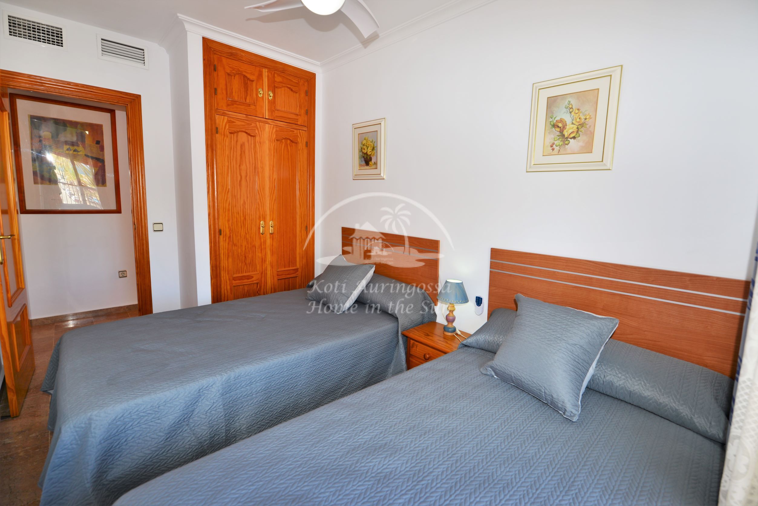 Asunto on kodikkaasti kalustettu ja sisustettu. Valoisa olohuone ja ruokailutila. Olohuoneesta on käynti etelään itään päin olevalle aamu aurinkoiselle ranskalaiselle kulma parvekkeelle. Parvekkeelta on kivat näkymät merelle. Moderni avokeittiö jossa kaikki toimii sähköllä. 2 makuuhuonetta. Molemmissa makuuhuoneissa on etelään päin oleva ranskalainen parveke, josta näkymät merelle. 2 kylpyhuonetta suihkukaapilla. Olohuoneessa on ilmastointi lämpöpumppu. Nopea valokuitu wifi internet yhteys valmiina. Kaikki keskustan palvelut lähellä.