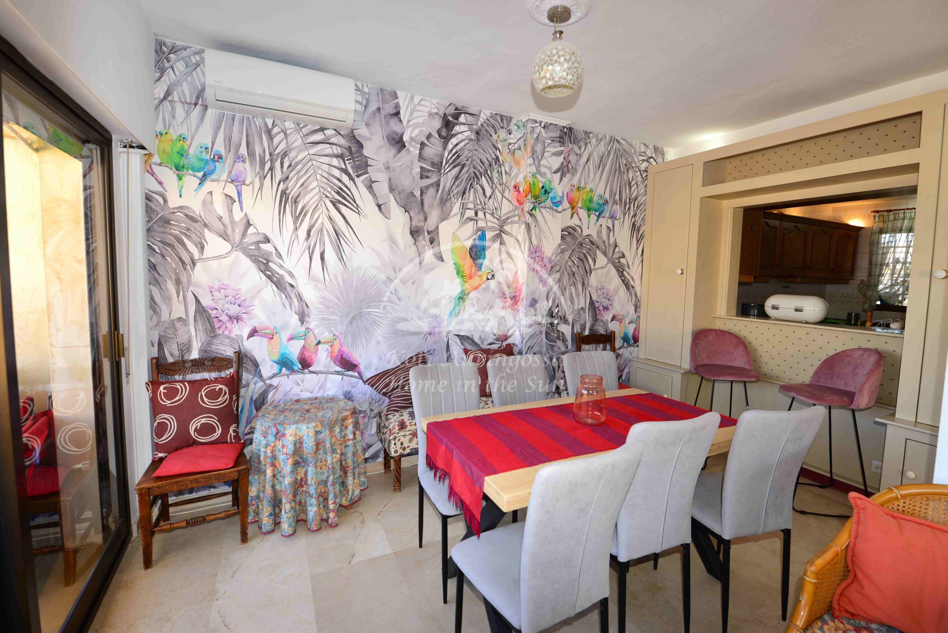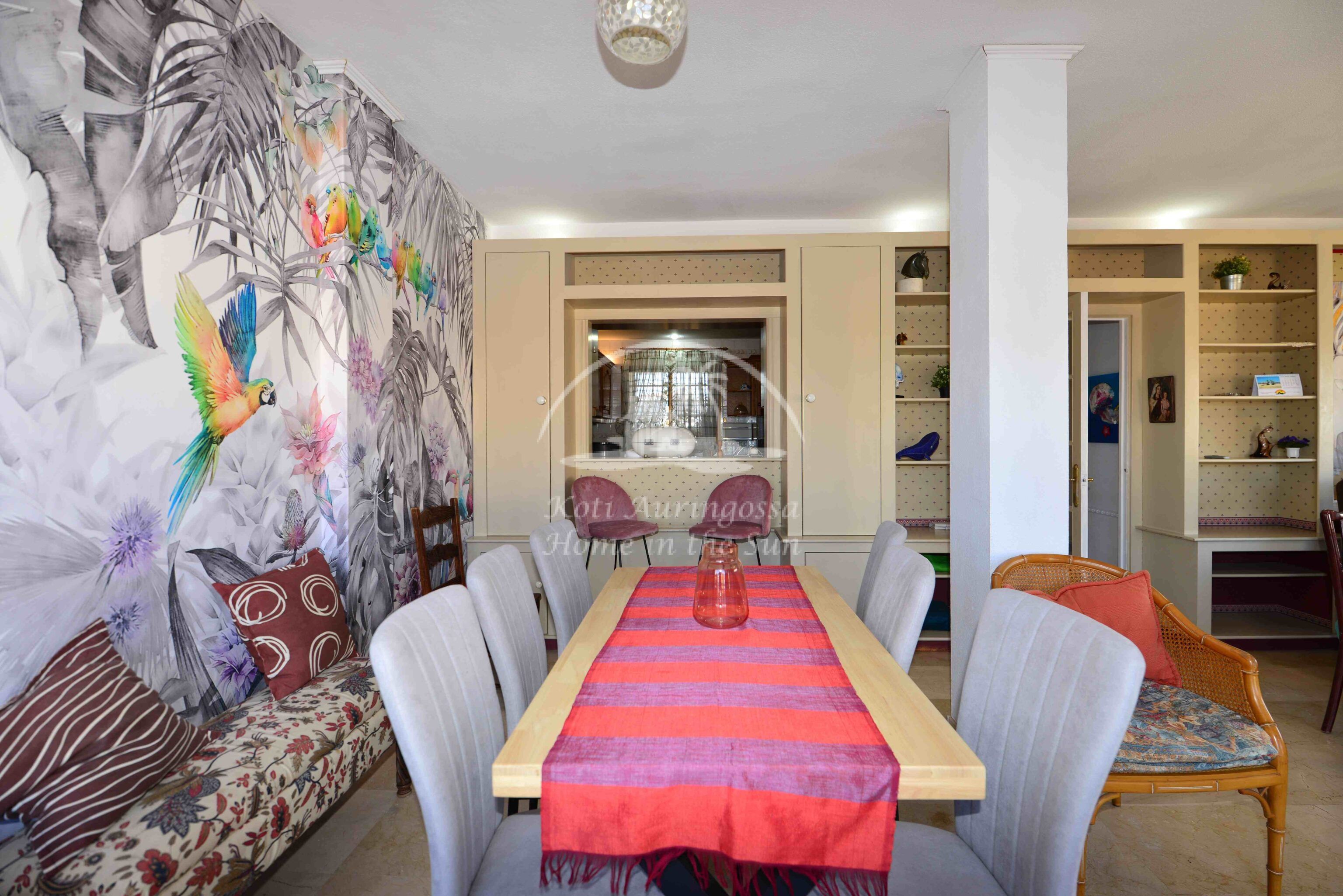 Asunto on kodikkaasti kalustettu ja sisustettu. Avara valoisa olohuone ja ruokailutila, olohuoneesta ja ruokailutilasta käynti reilun kokoiselle aamu aurinkoiselle etelään päin olevalle terassille, josta hienot näkymät merelle ja kaupungin ylle. Täydellisesti varustettu amerikkalainen keittiö, jossa on myös uusi integroitu uuni, joka ei vielä kuvien ottohetkellä ollut asennettu paikalleen keraamisen lieden alle.