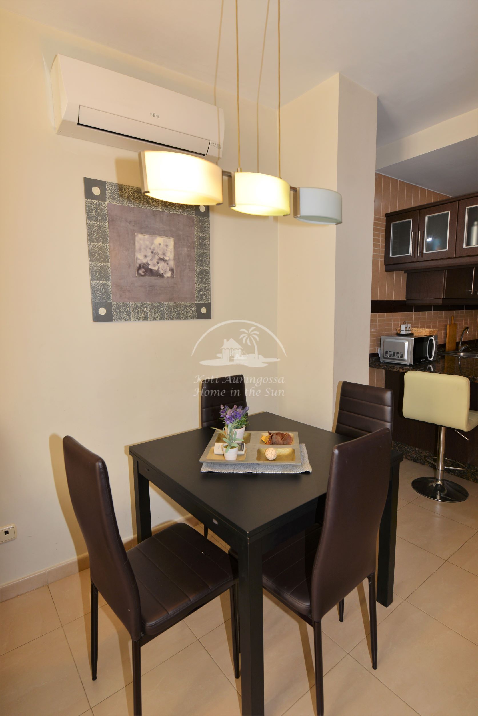 Asunto on kauniisti kalustettu ja sisustettu. Valoisa olohuone ja ruokailutila. Moderni amerikkalainen keittiö jossa kaikki toimii sähköllä. 2 makuuhuonetta. Päämakuuhuoneesta käynti reilun kokoiselle sisäpatiolle. 1 kylpyhuone. Ilmastointi lämpöpumppu olohuoneessa ja molemmissa makuuhuoneissa. Nopea valokuitu wifi internet yhteys valmiina. Kaikki keskustan palvelut lähellä.