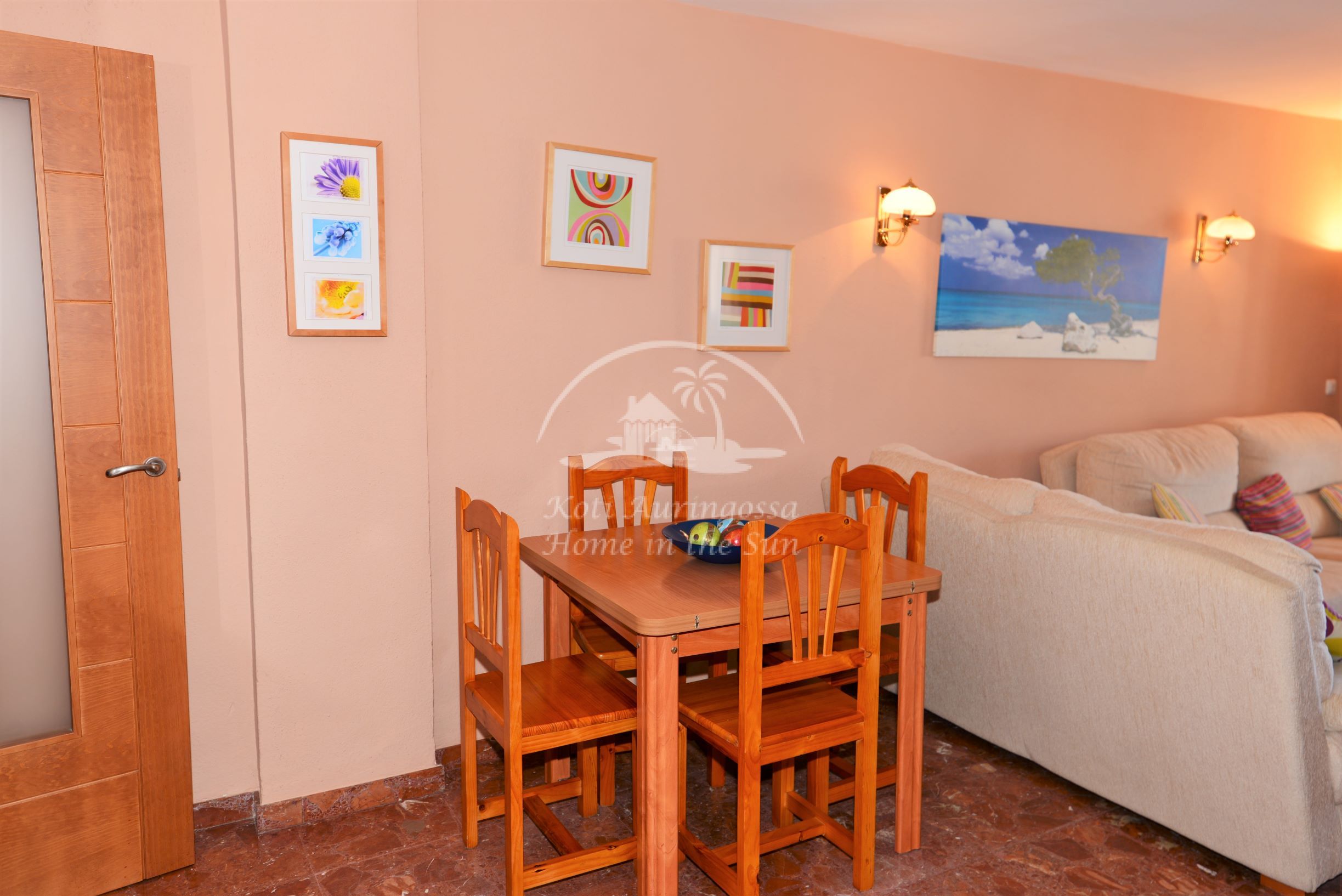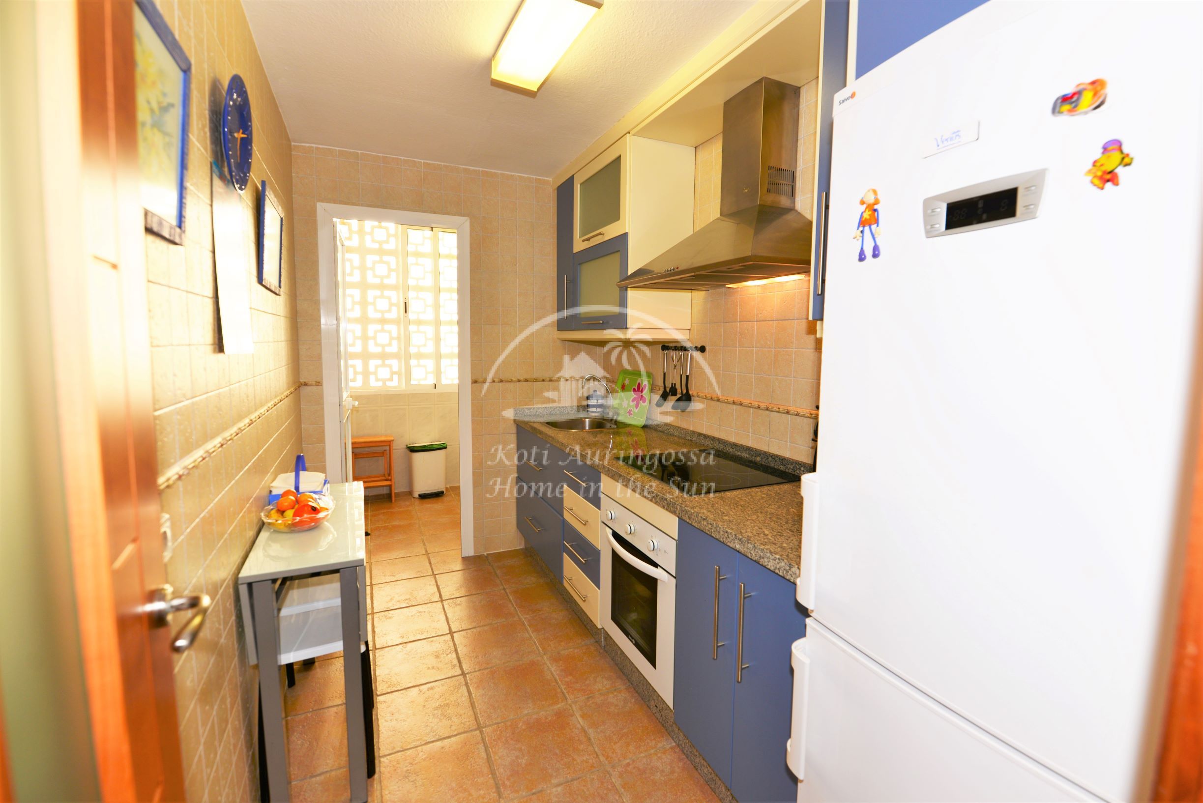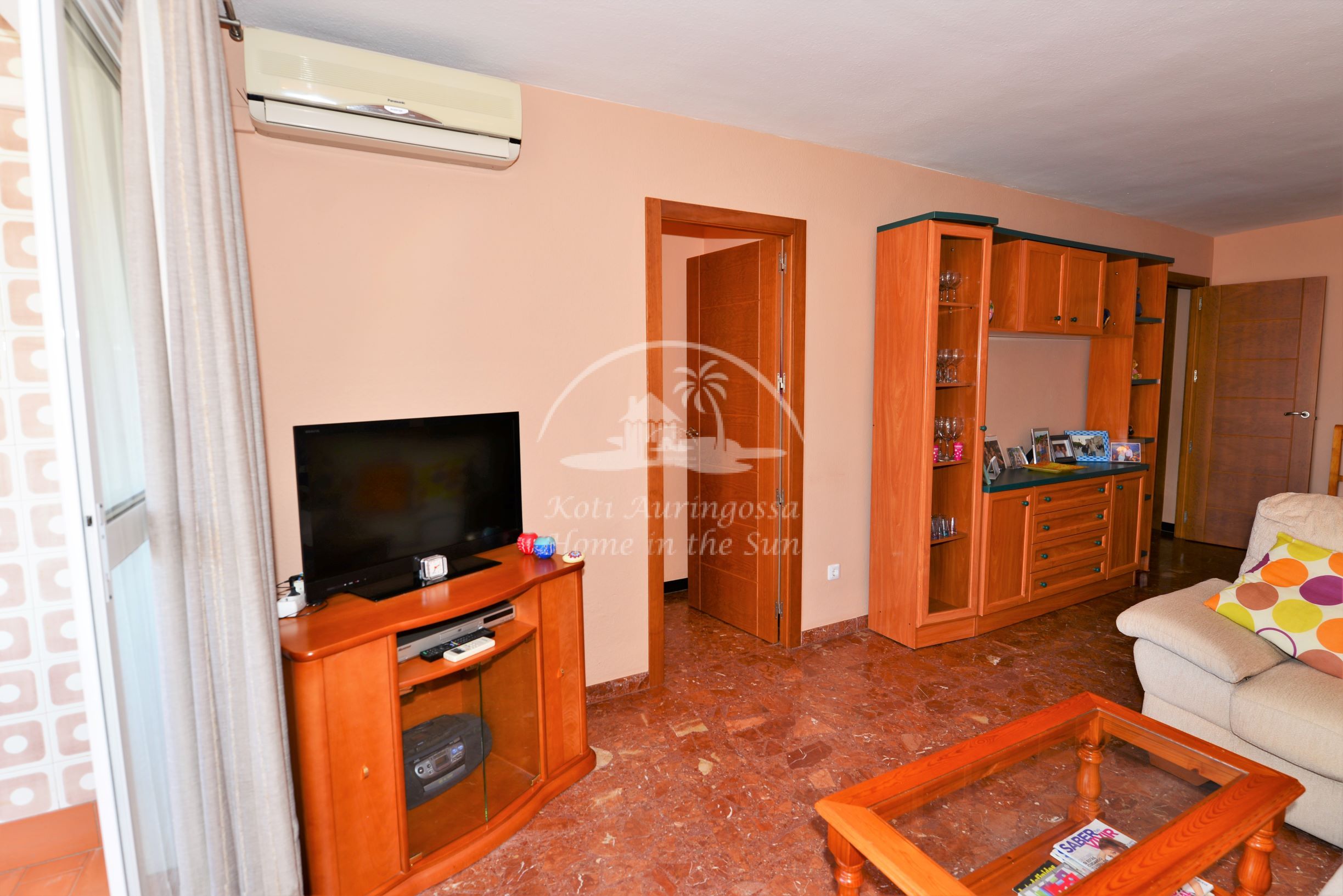 Valoisa olohuone ja ruokailutila. Olohuoneesta on käynti pohjoiseen päin olevalle ilta aurinkoiselle lasitetulle terassille. Terassilta on kivat näkymät Mijaksen vuorille ja kaupungin ylle. Erillinen tilava keittiö jossa kaikki toimii sähköllä. 3 makuuhuonetta. 1 kylpyhuone. Olohuoneessa on ilmastointi lämpöpumppu. Vuokraan sisältyy reilun kokoinen autopaikka asunnon lähellä, suljetussa pysäköintihallissa. Kaikki keskustan palvelut lähellä. Merenrantaan 50 metriä.