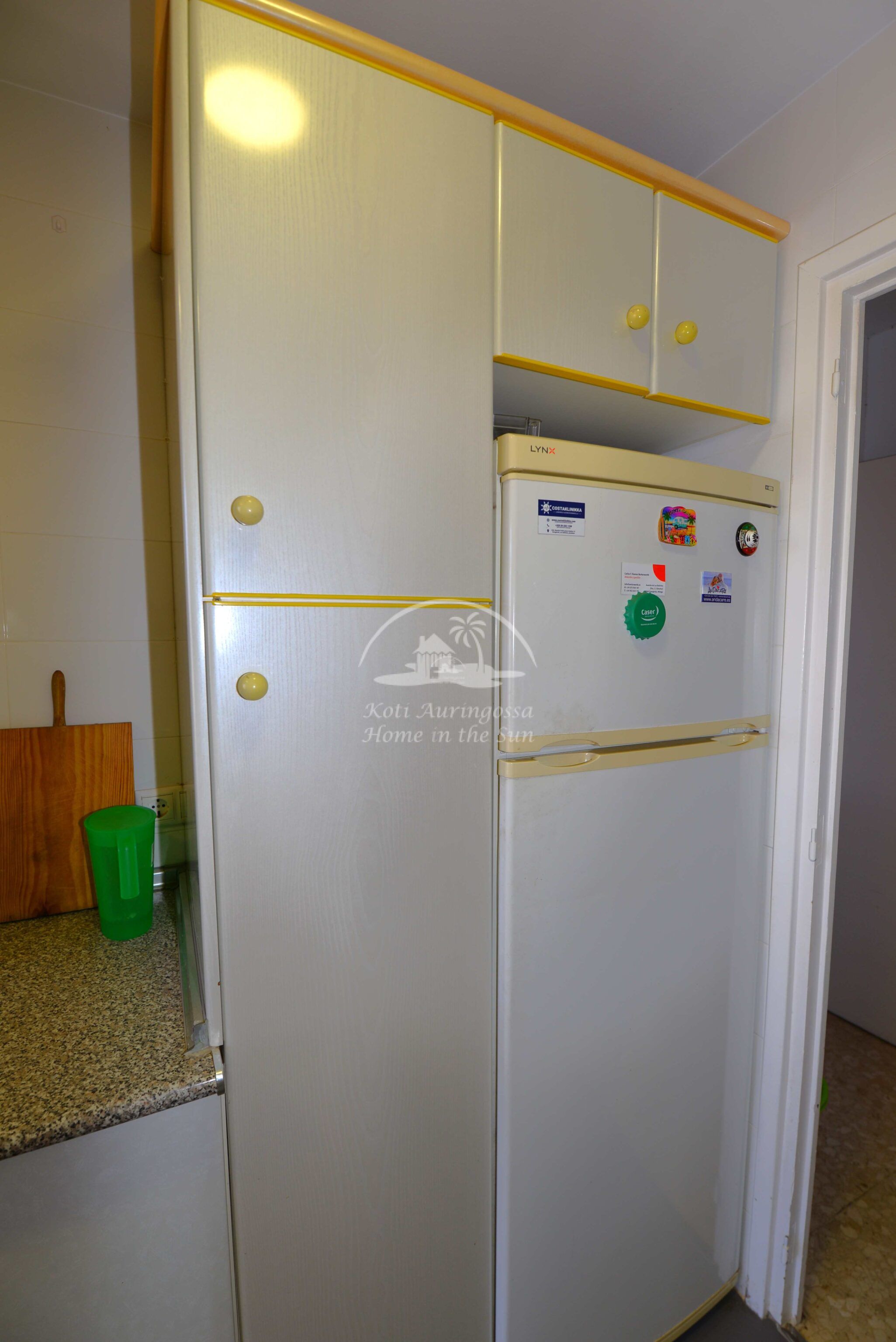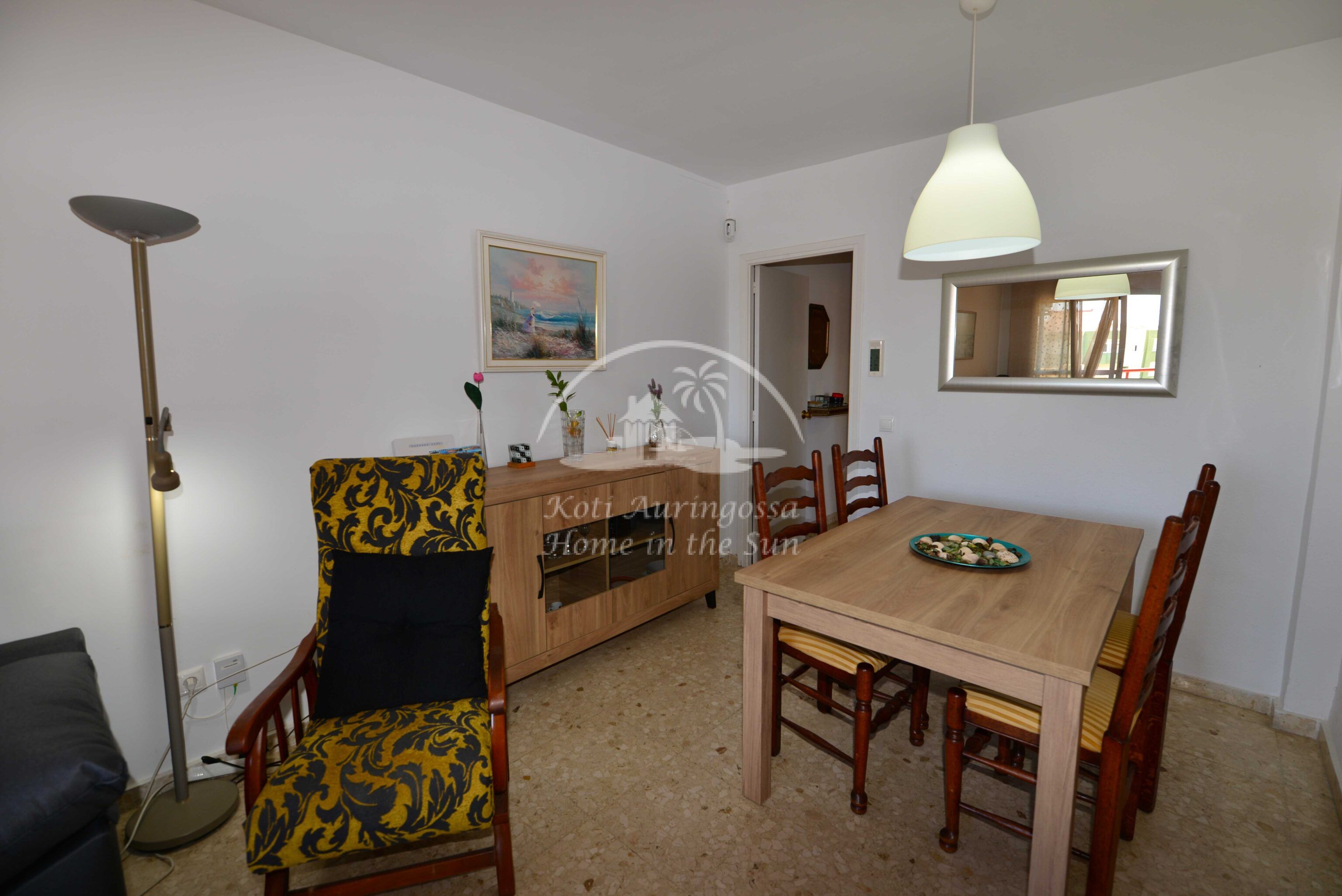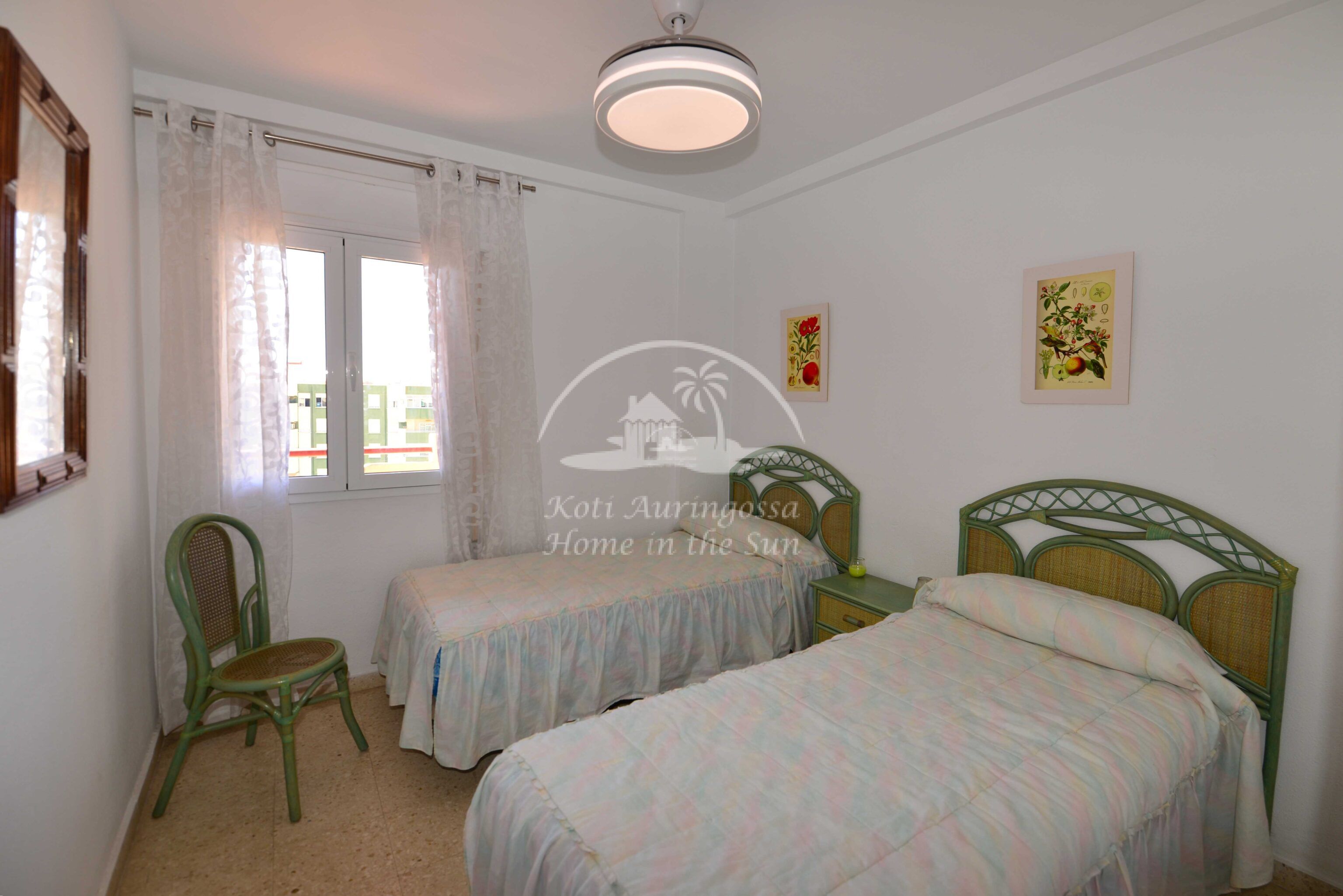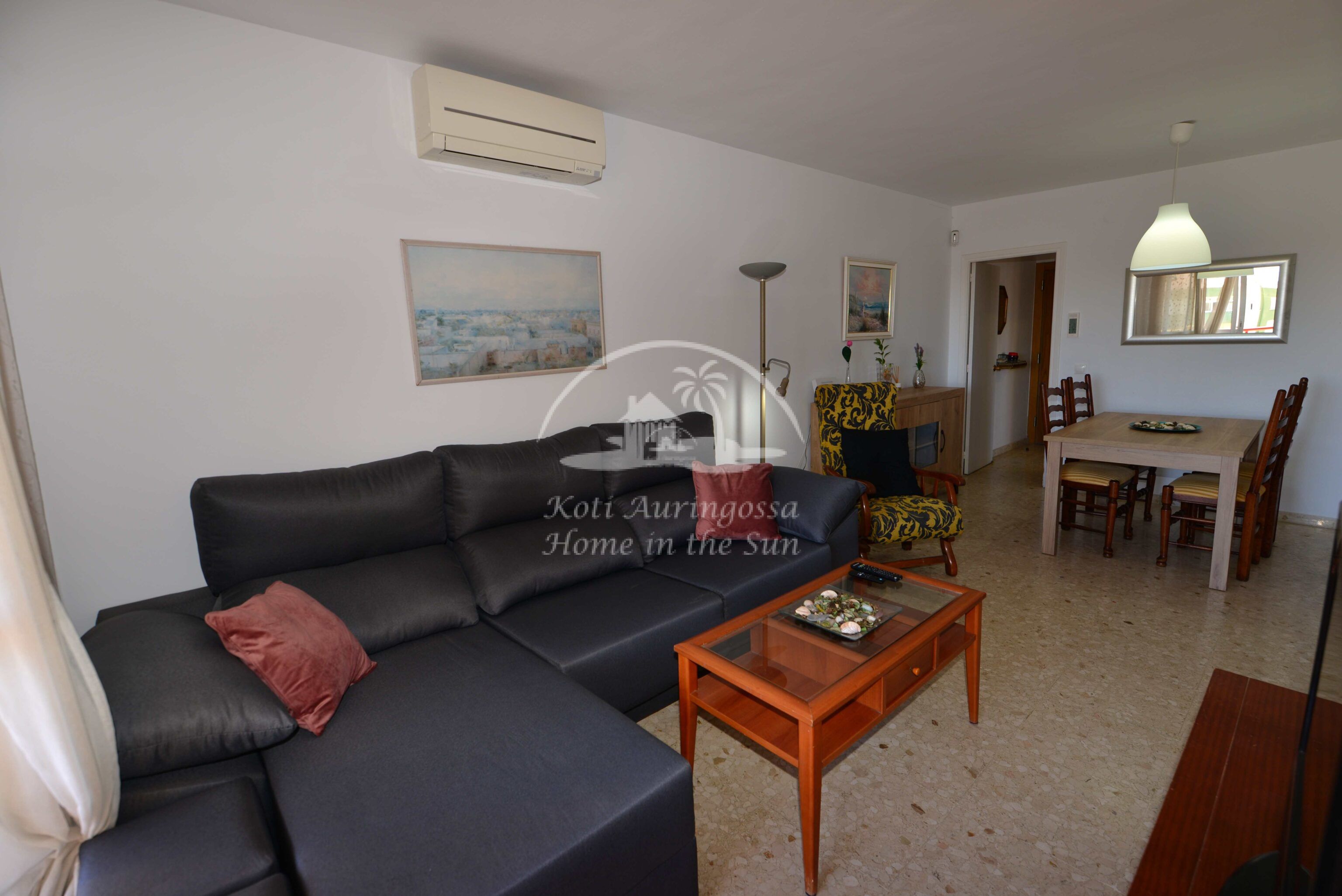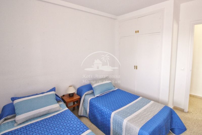 Valoisa olohuone ja ruokailutila. Olohuoneesta käynti koko huoneiston pituiselle länteen päin olevalle aurinkoiselle terassille, josta harvinaisen upeat näkymät kaupungin ylle. Erillinen tilava keittiö, keittiön perällä kodinhoitohuone jossa on pesukone ja vesiboileri. 3 makuuhuonetta, 2 täysin uusittua kylpyhuonetta. Olohuoneessa ilmastointi lämpöpumppu. Nopea valokuitu wifi nettiyhteys. Uima-allas kauniin nurmikko puutarhan ympäröiminä. Kaikki keskustan palvelut lähellä. Merenrantaan 400 metriä. Juna asemalle noin 500 metriä. Osoite: Calle Santa Isabel, Edif. Diana 1, 7 krs. Los Boliches.