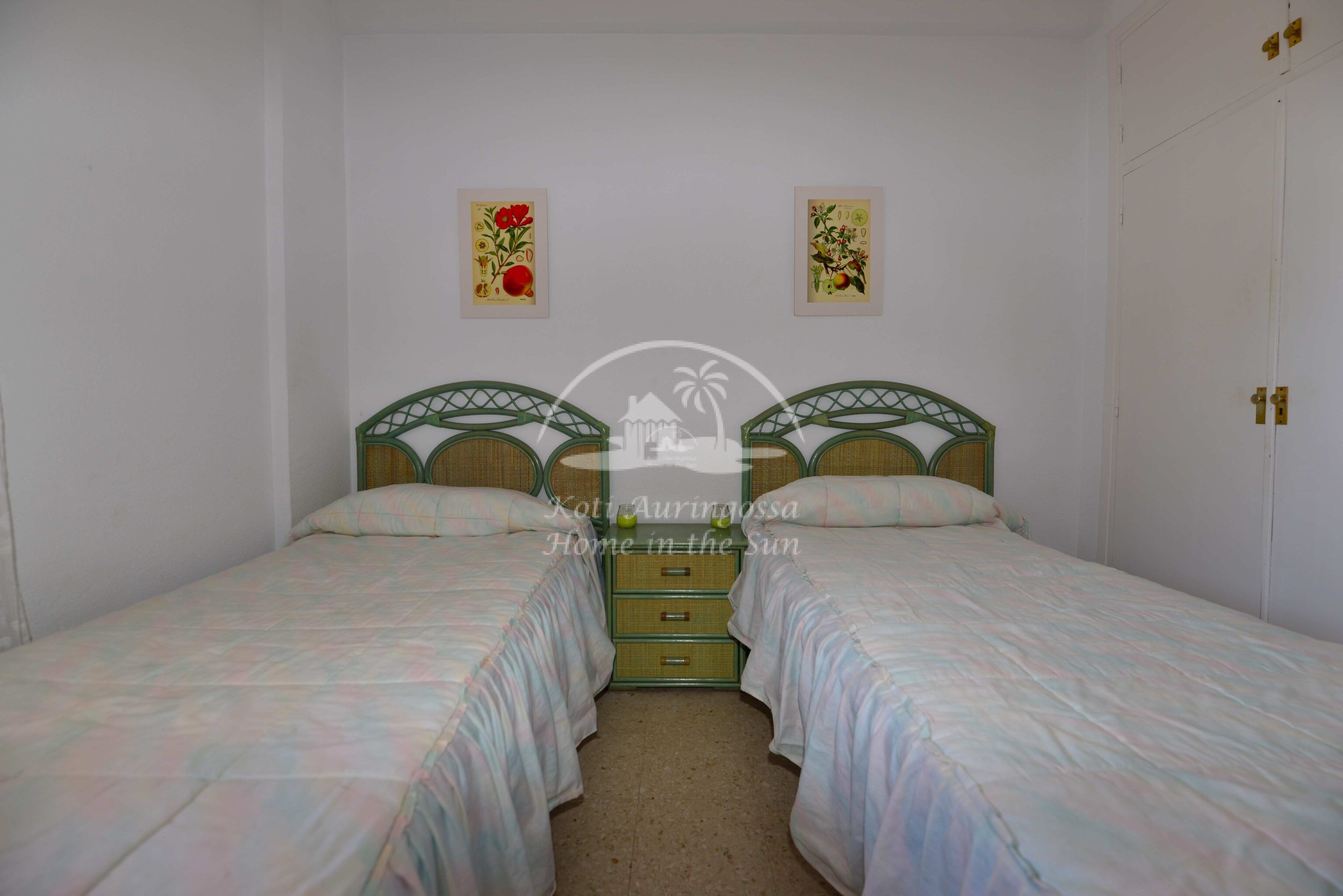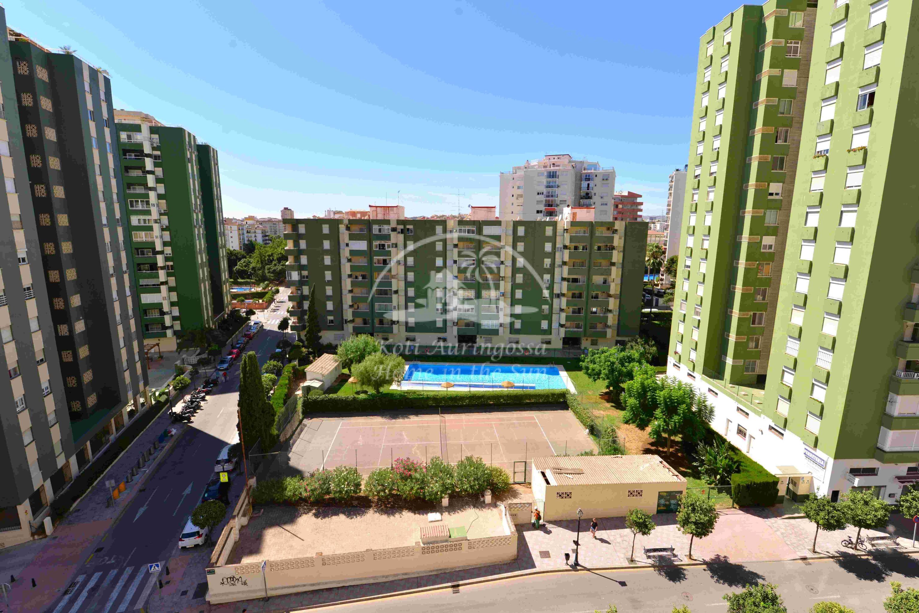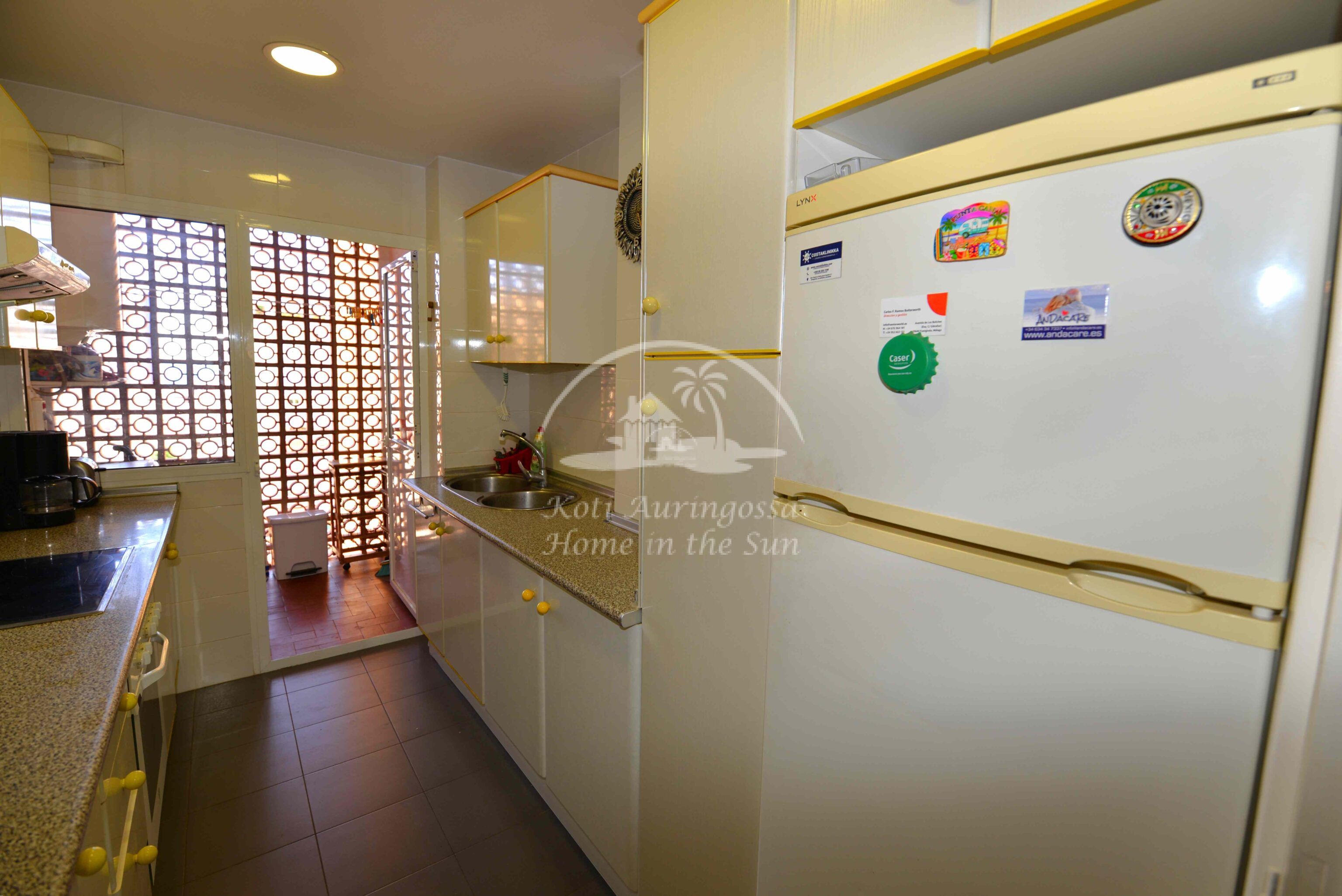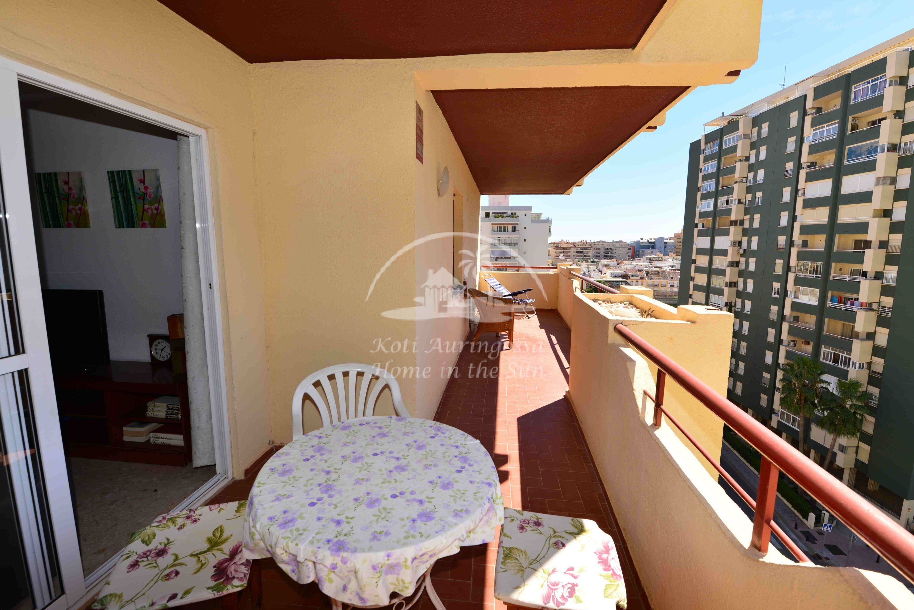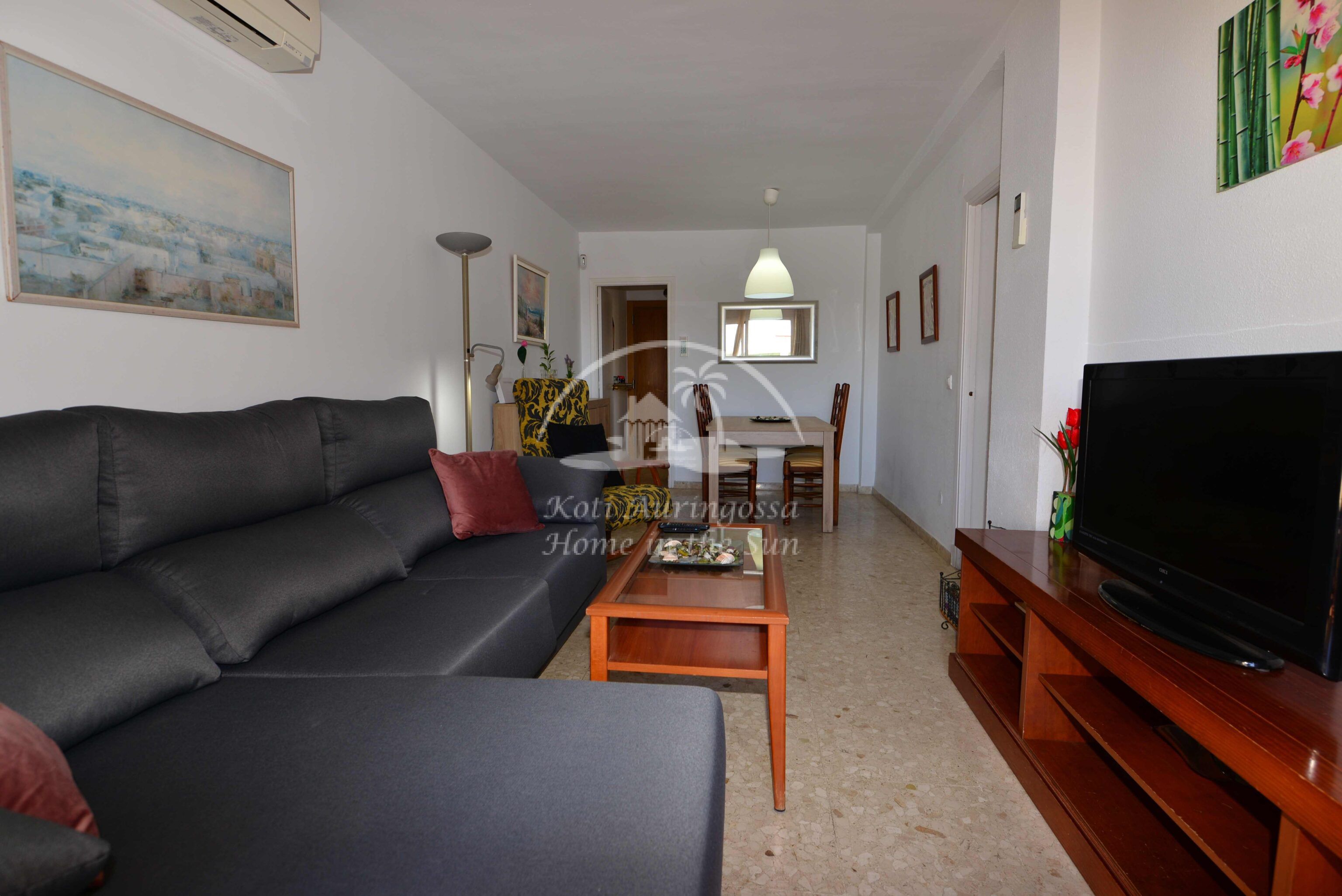 Valoisa olohuone ja ruokailutila. Olohuoneesta käynti koko huoneiston pituiselle länteen päin olevalle aurinkoiselle terassille, josta harvinaisen upeat näkymät kaupungin ylle. Erillinen tilava keittiö, keittiön perällä kodinhoitohuone jossa on pesukone ja vesiboileri. 3 makuuhuonetta, 2 täysin uusittua kylpyhuonetta. Olohuoneessa ilmastointi lämpöpumppu. Nopea valokuitu wifi nettiyhteys. Uima-allas kauniin nurmikko puutarhan ympäröiminä. Kaikki keskustan palvelut lähellä. Merenrantaan 400 metriä. Juna asemalle noin 500 metriä. Osoite: Calle Santa Isabel, Edif. Diana 1, 7 krs. Los Boliches.