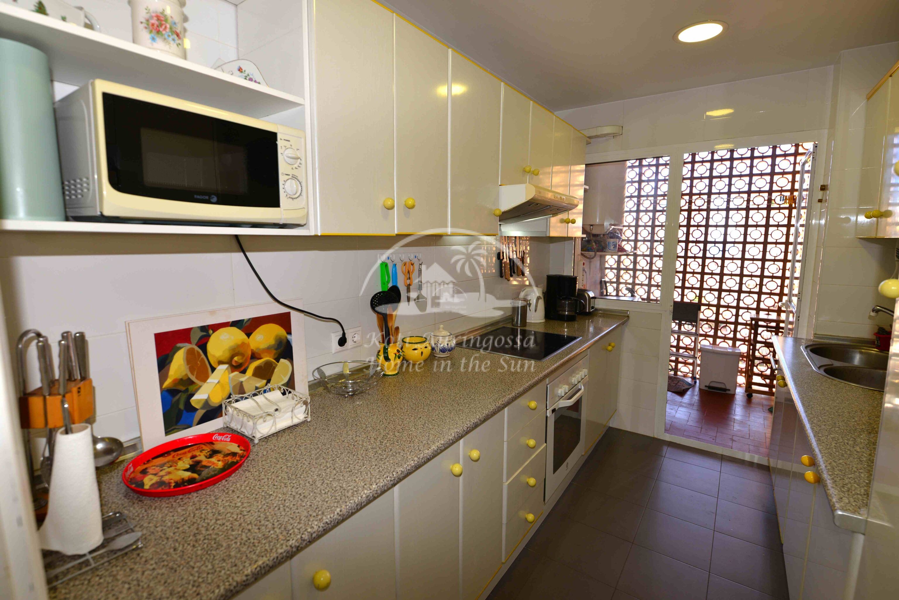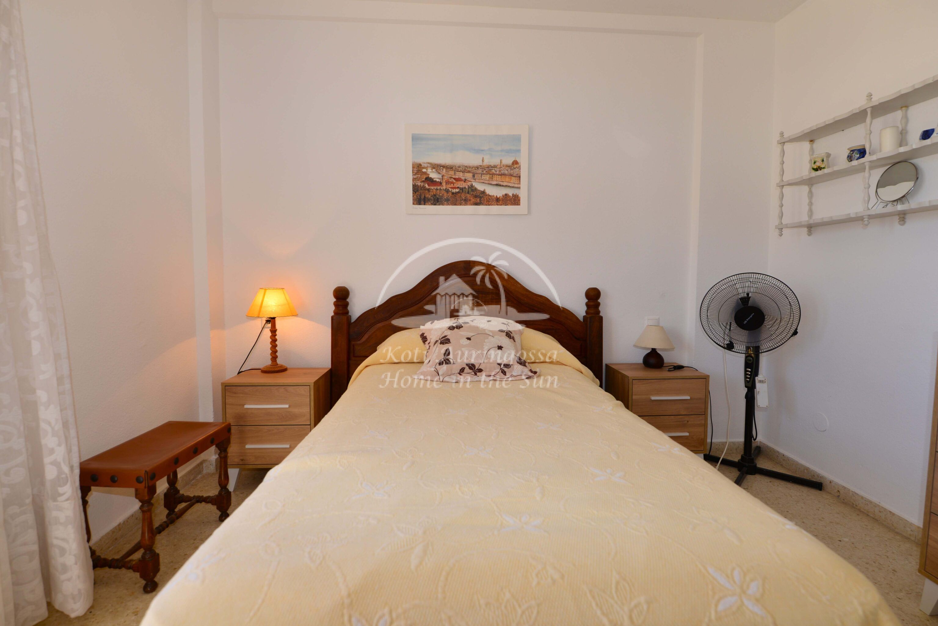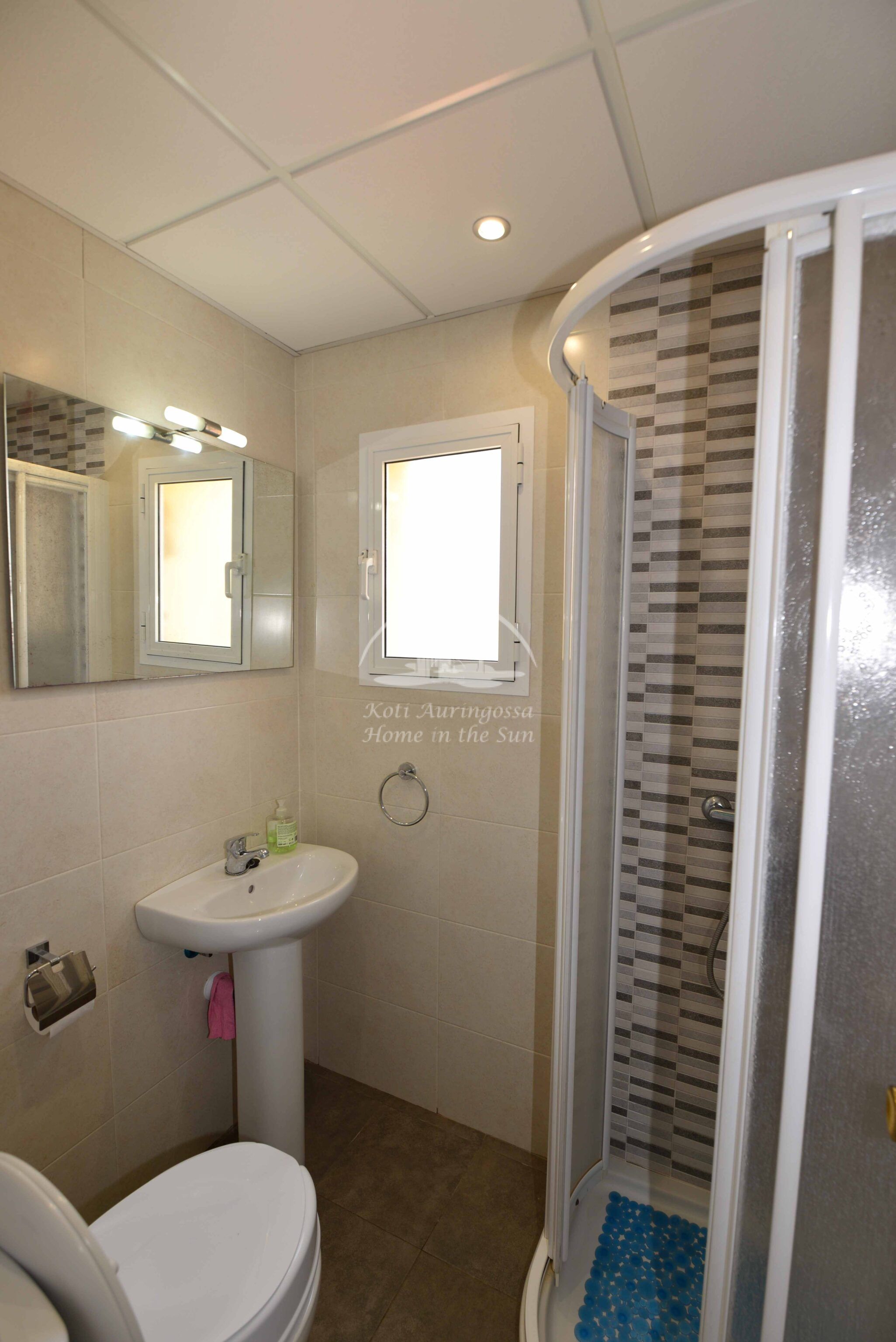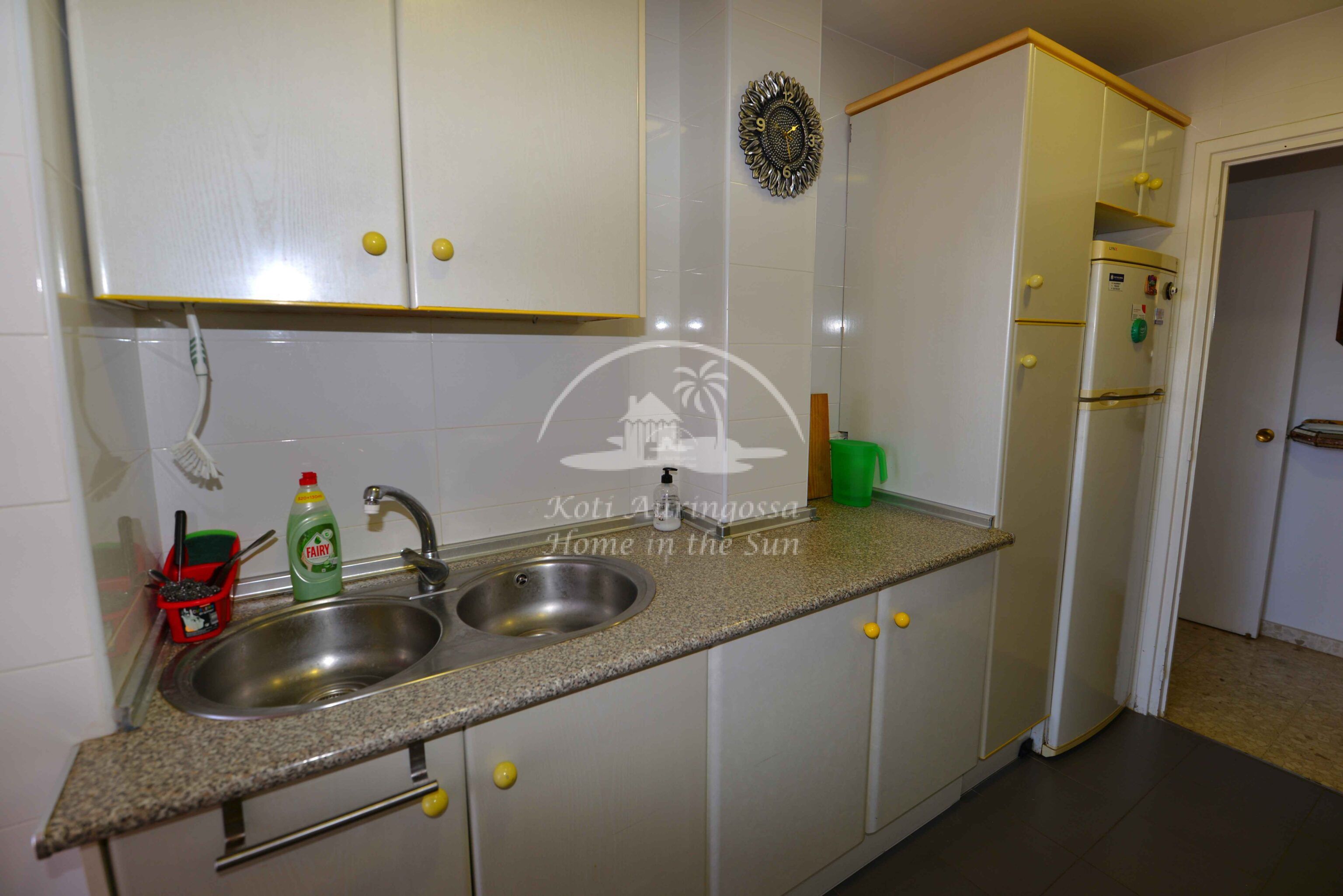 Valoisa olohuone ja ruokailutila. Olohuoneesta käynti koko huoneiston pituiselle länteen päin olevalle aurinkoiselle terassille, josta harvinaisen upeat näkymät kaupungin ylle. Erillinen tilava keittiö, keittiön perällä kodinhoitohuone jossa on pesukone ja vesiboileri. 3 makuuhuonetta, 2 täysin uusittua kylpyhuonetta. Olohuoneessa ilmastointi lämpöpumppu. Nopea valokuitu wifi nettiyhteys. Uima-allas kauniin nurmikko puutarhan ympäröiminä. Kaikki keskustan palvelut lähellä. Merenrantaan 400 metriä. Juna asemalle noin 500 metriä. Osoite: Calle Santa Isabel, Edif. Diana 1, 7 krs. Los Boliches.