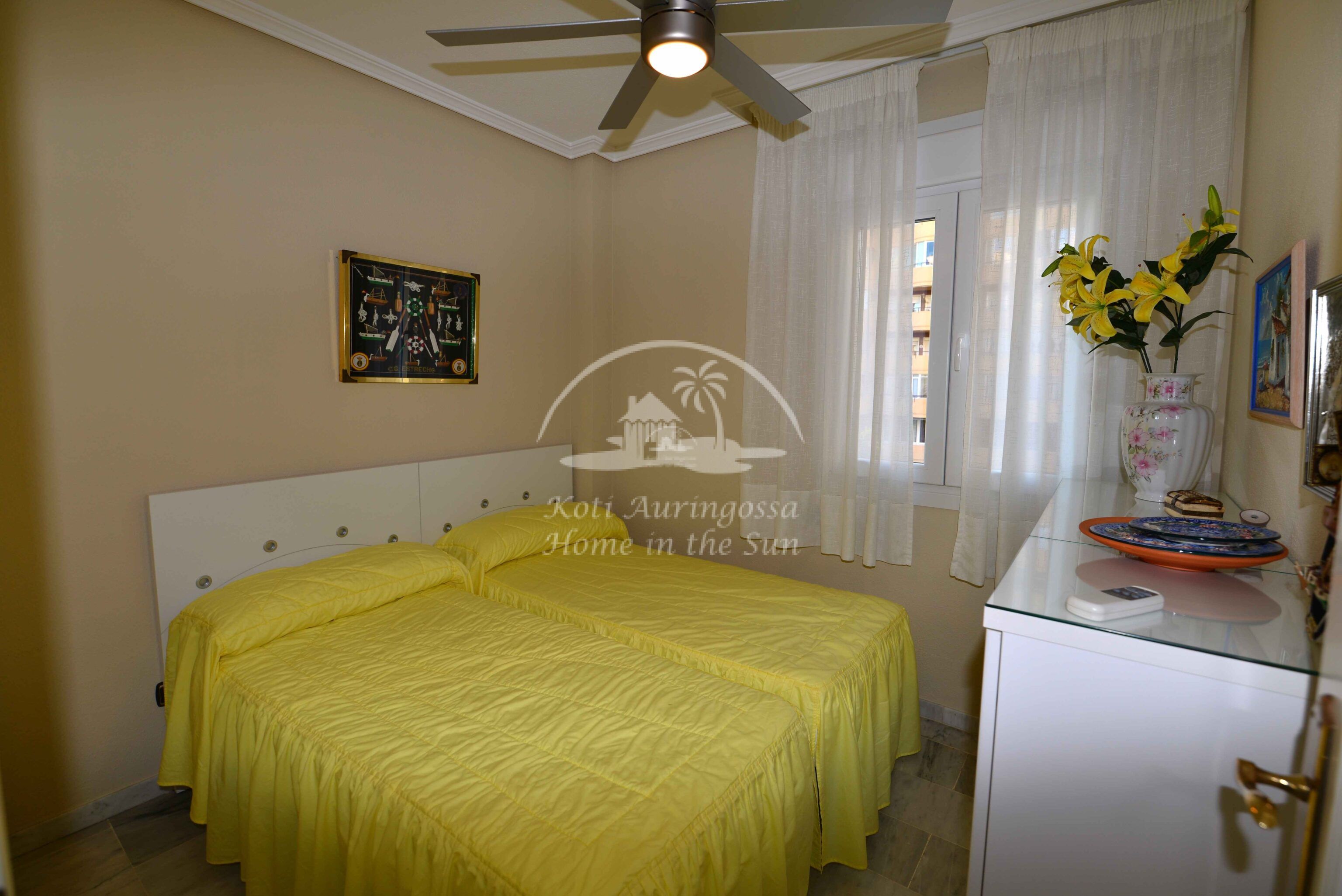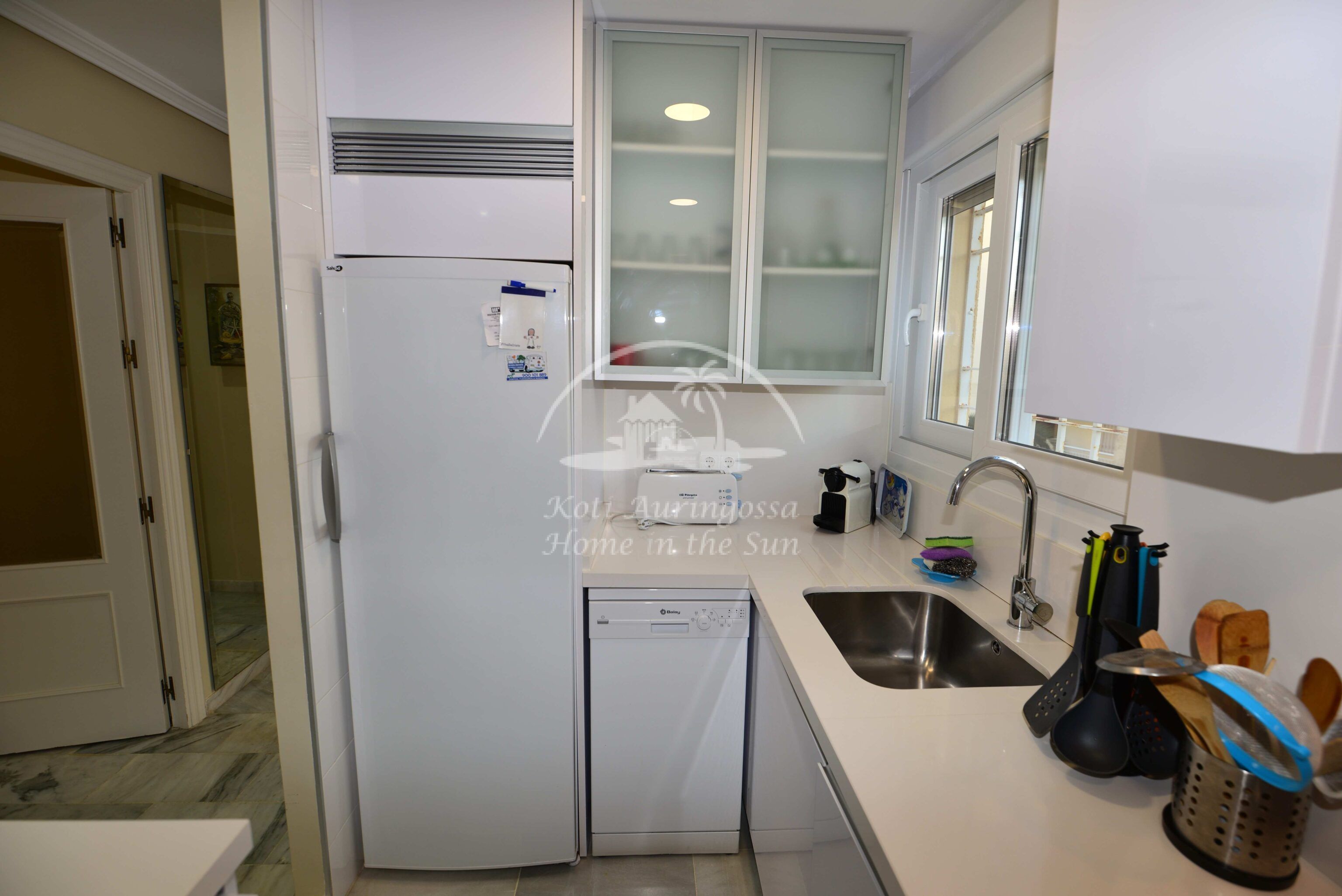 Asunto on kauniisti kalustettu ja sisustettu, siinä on kodin tuntua heti ensi näkemällä. Valoisa olohuone ja ruokailutila. Olohuoneesta on käynti itään päin olevalle aamu aurinkoiselle terassille, terassilta on avarat näkymät, näkyy merellekin hiukan. Erillinen avara moderni keittiö kaikilla mukavuuksilla, on astianpesukone ja 2 jääkaappia. Hyvä kaasuhella. 3 makuuhuonetta, joista yhdestä on käynti pohjoiseen päin olevalle ilta aurinkoiselle terassille. 2 kylpyhuonetta. Parkkipaikka taloyhtiön katetulla paikoitus alueella. Kaikki keskustan palvelut lähellä. Merenrantaan 150 metriä.