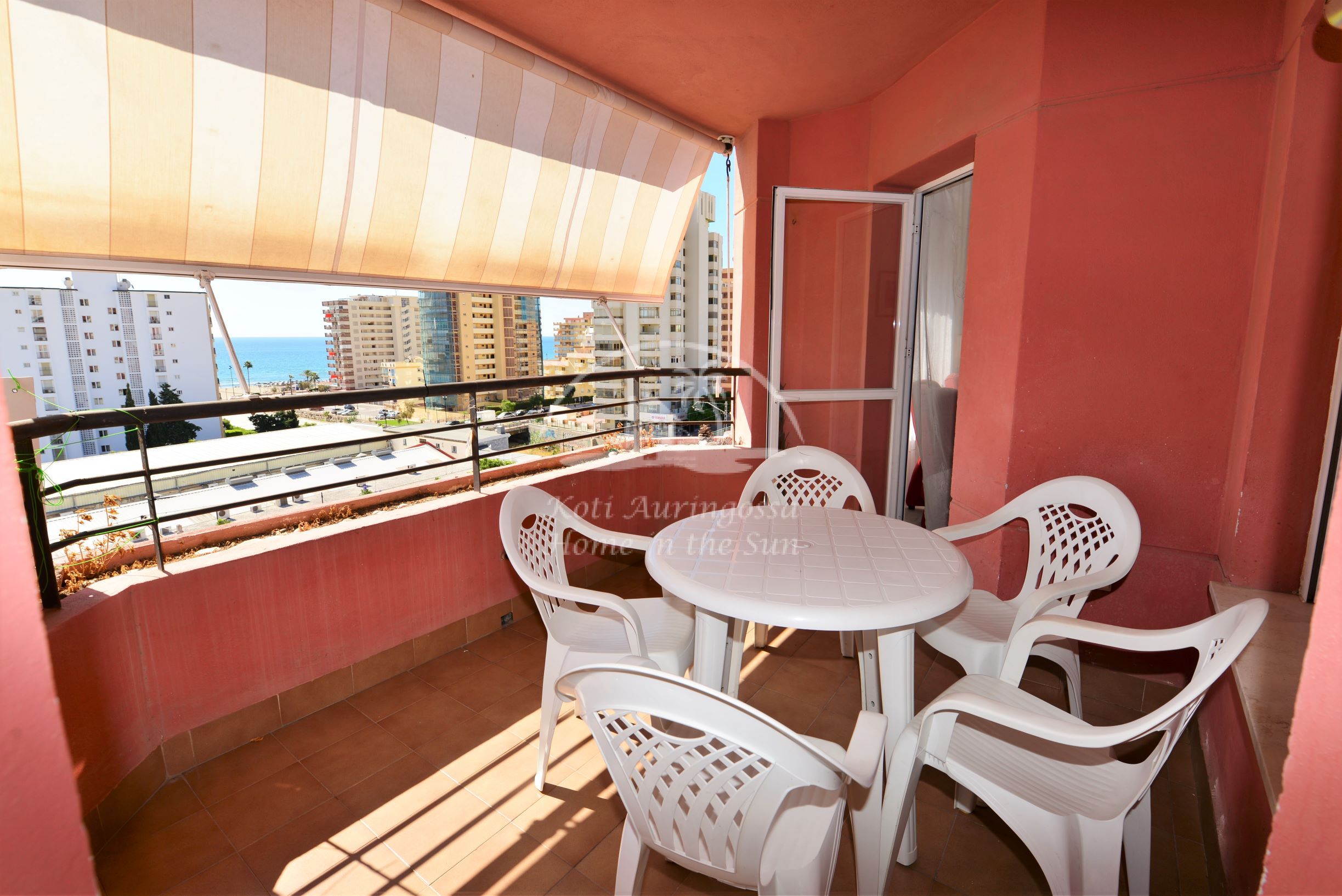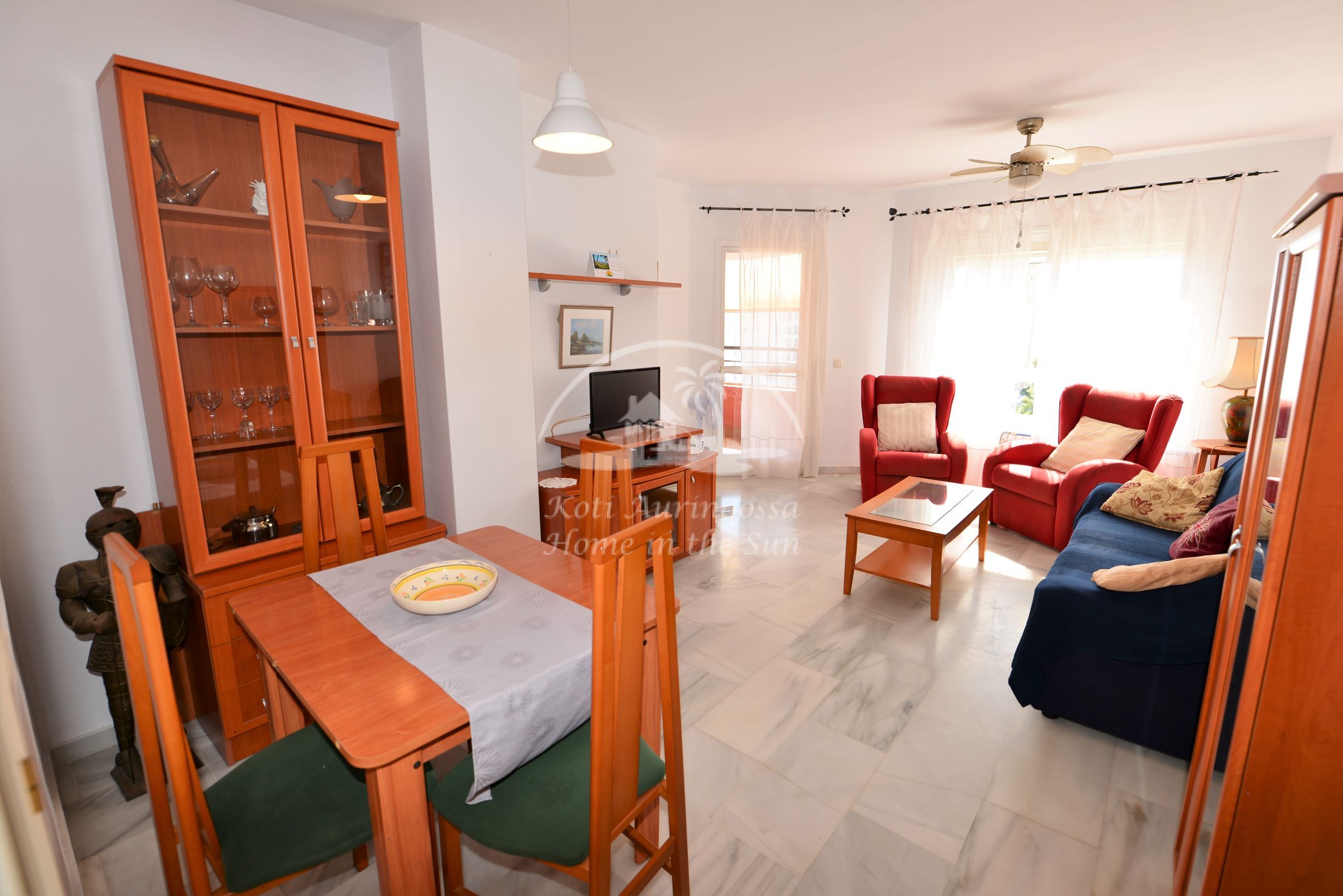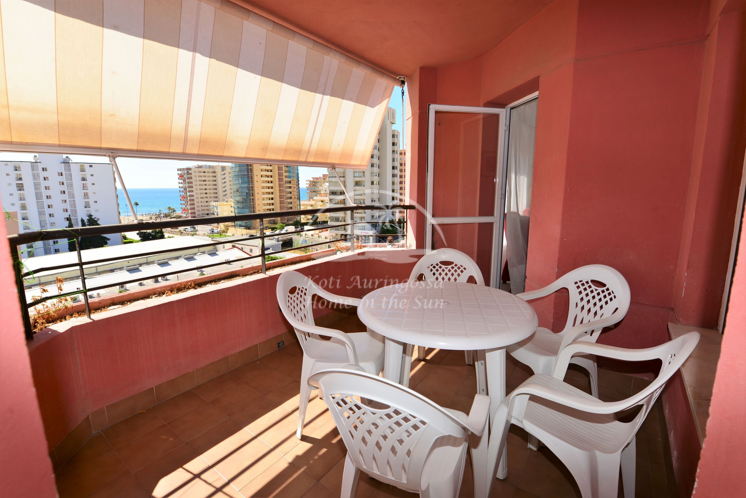 Asunto on kodikkaasti kalustettu ja sisustettu. Avara olohuone ja ruokailutila. Olohuoneesta on käynti aamu aurinkoiselle etelään päin olevalle terassille. Terassilta on hienot näkymät merelle ja rannikolle. Täydellisesti varustettu tilava keittiö, jossa on myös astianpesukone. 3 makuuhuonetta.