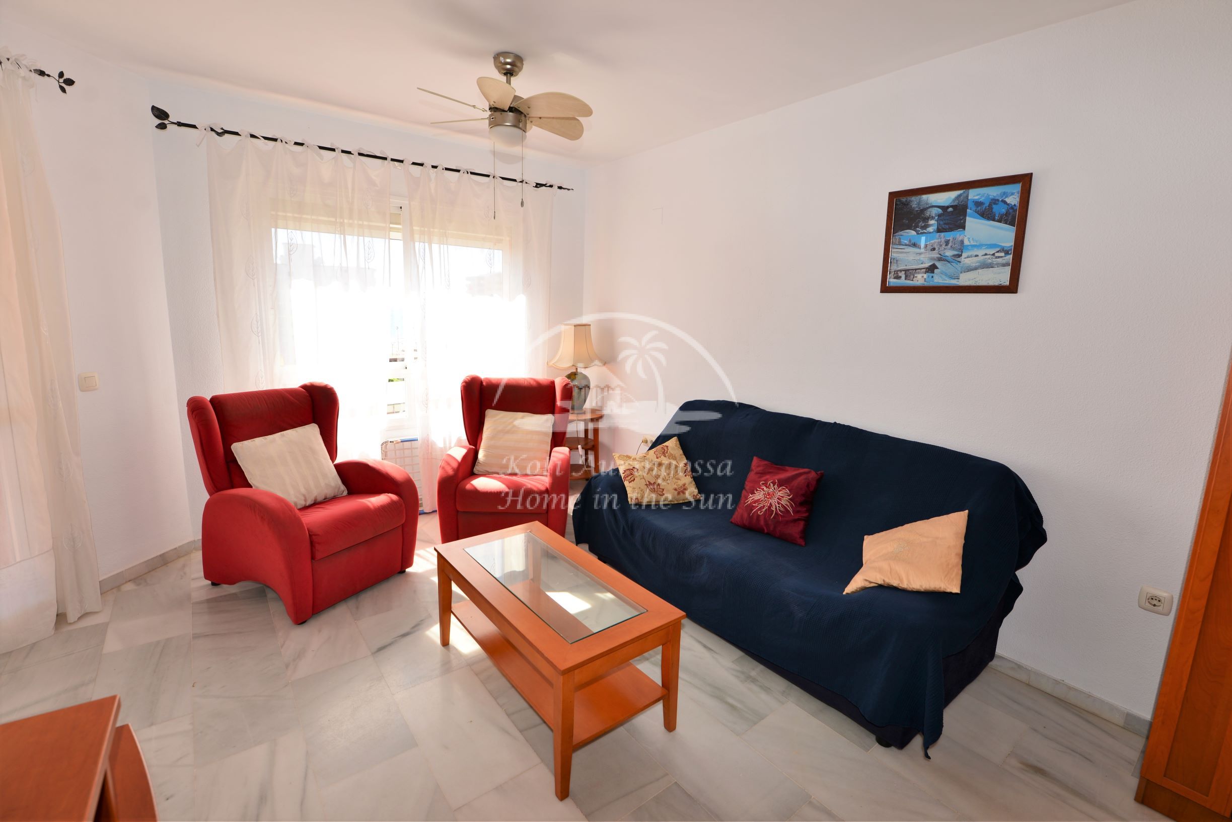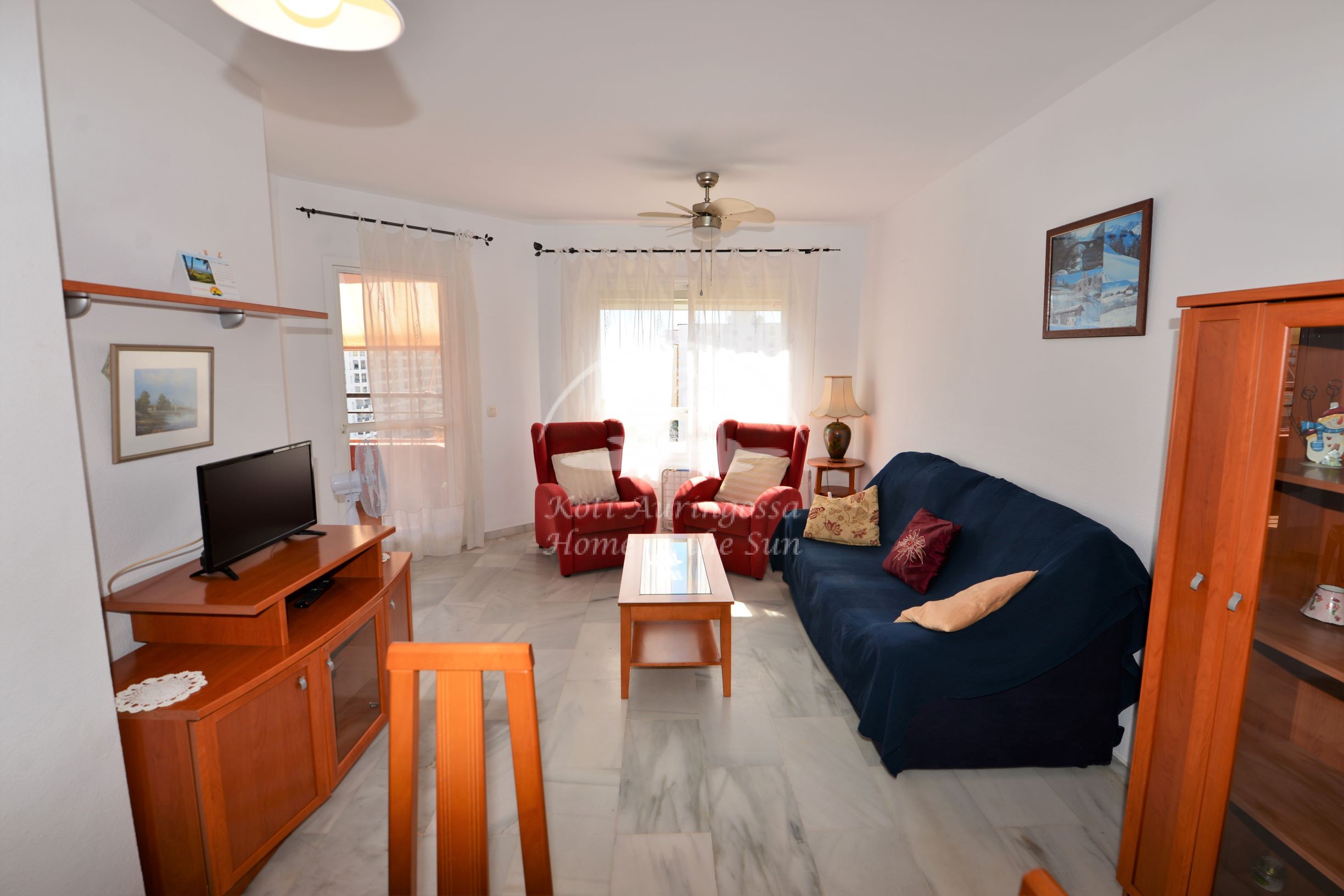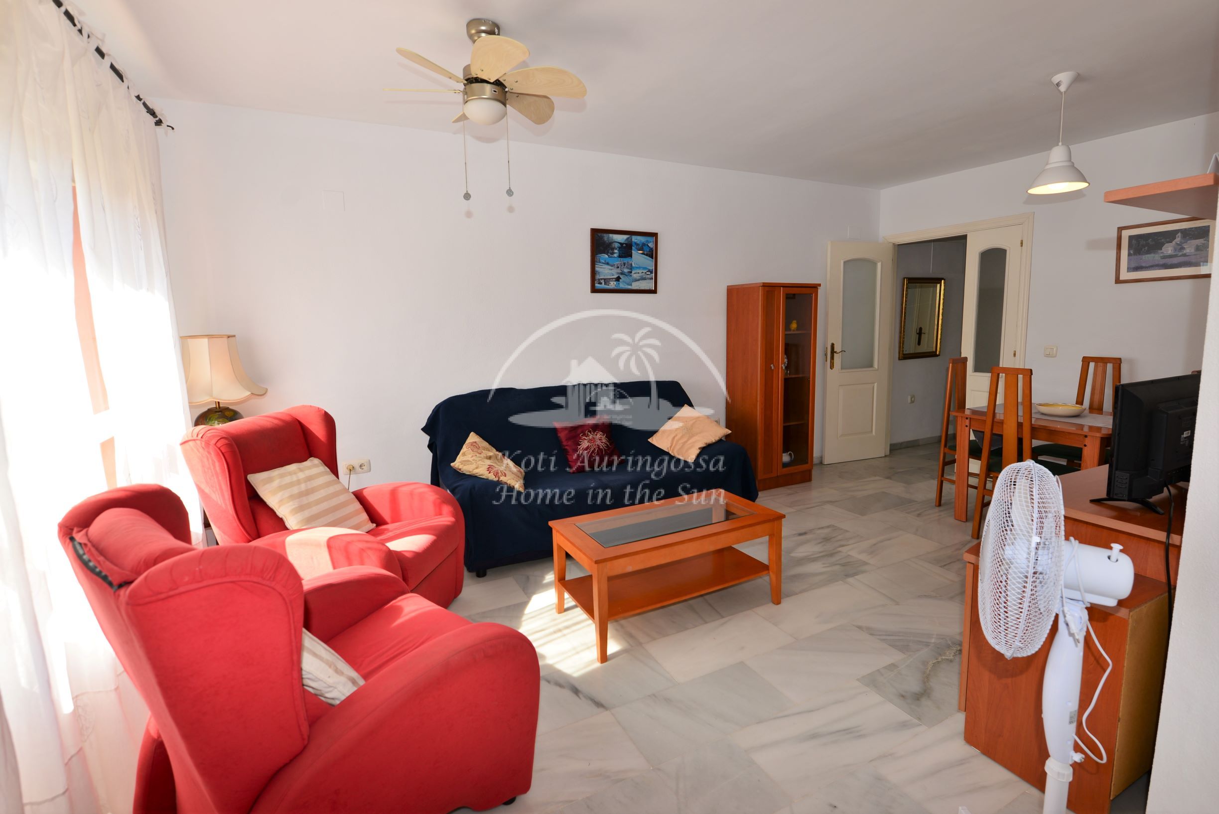 Asunto on kodikkaasti kalustettu ja sisustettu. Avara olohuone ja ruokailutila. Olohuoneesta on käynti aamu aurinkoiselle etelään päin olevalle terassille. Terassilta on hienot näkymät merelle ja rannikolle. Täydellisesti varustettu tilava keittiö, jossa on myös astianpesukone. 3 makuuhuonetta.
