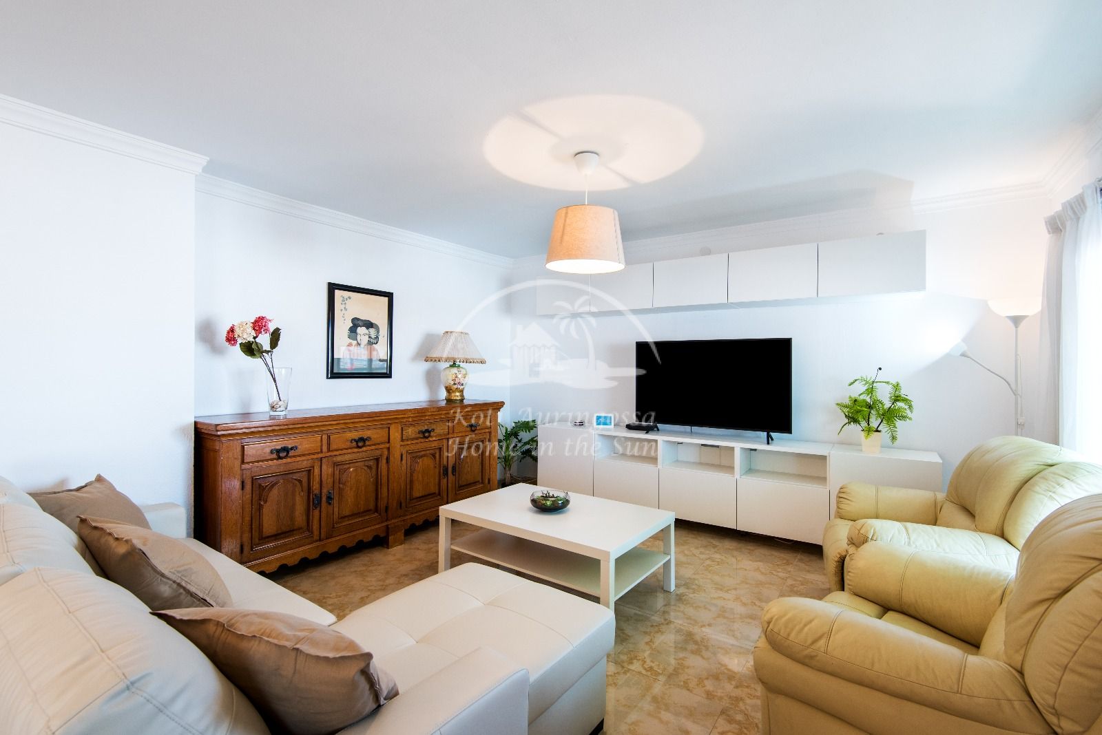 Avara valoisa olohuone ja ruokailutila. Olohuoneesta on käynti valtavan kokoiselle pohjoiseen päin olevalle aurinkoiselle terassille, josta upeat näkymät Mijaksen vuorille ja kaupungin ylle. Terassille paistaa aurinko noin klo 12.00 alkaen auringon laskuun asti. Täydellisesti varustettu tilava keittiö, jossa on myös astianpesukone. 2 makuuhuonetta. 2 kylpyhuonetta. Ilmastointi lämpöpumppu olohuoneessa ja molemmissa makuuhuoneissa. Nopea valokuitu wifi internet yhteys valmiina, joka sisältyy vuokraan. Tässä asunnossa viihtyy varmasti. Kaikki keskustan palvelut lähellä. Merenrantaan 50 metriä.