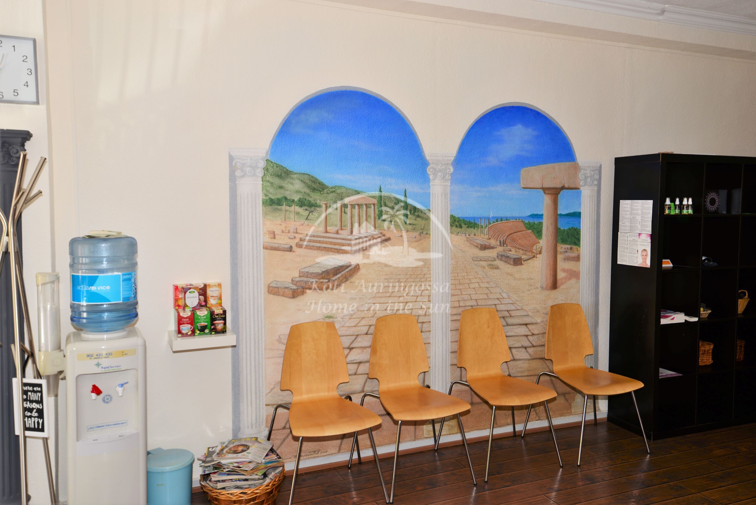 The premises has been completely renovated. There is a possibility to purchase the material seen in the potos, left by the previous entrepreneur. In the front there is a nice Little terrace. The front room is very luminous and spacious. Next there is a Little kitchen / storage room. Nice wide treatment room.