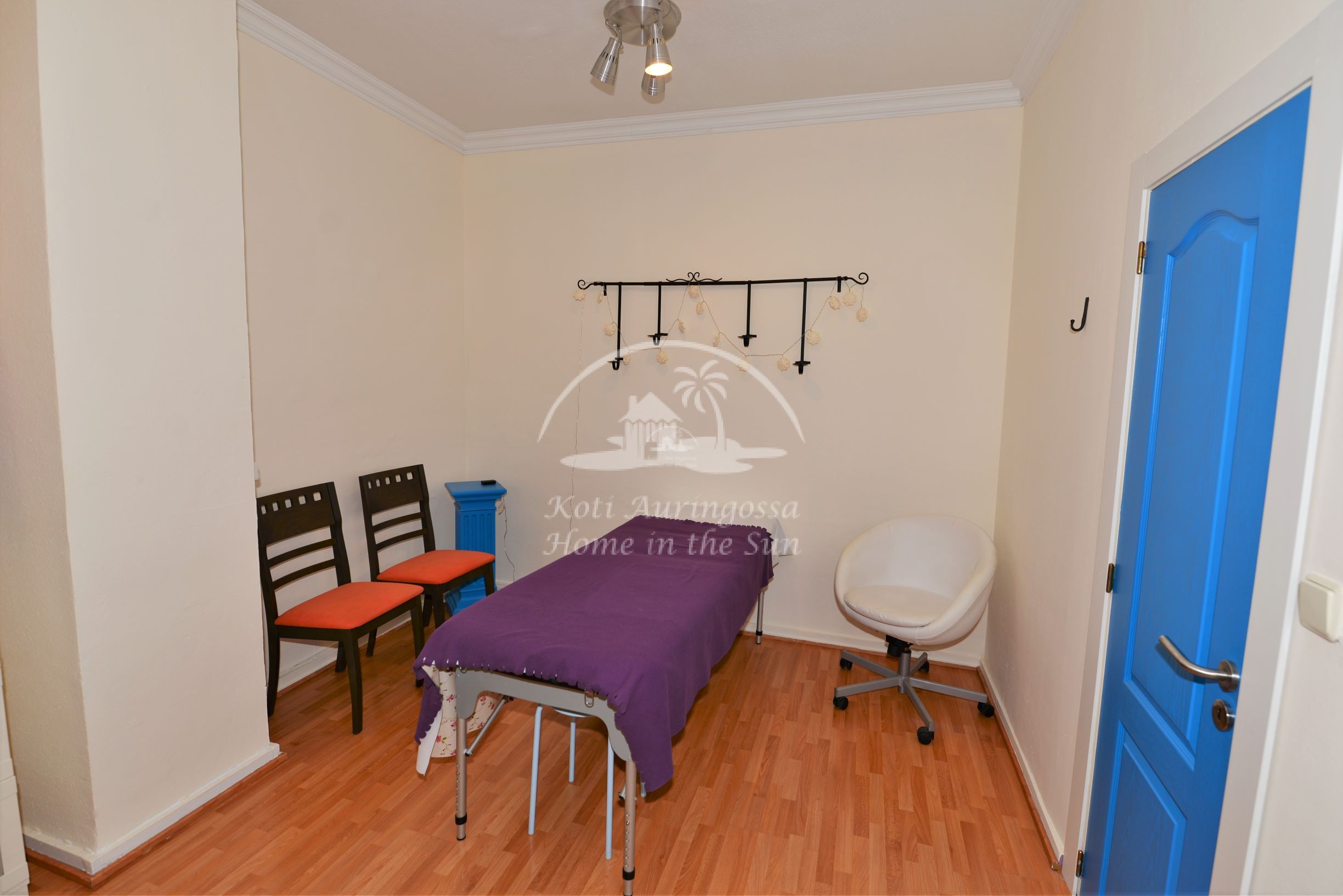 Liiketila on laadukkaasti kauttaaltaan uusittu ja remontoitu. On mahdollista ostaa edellisen yrittäjän jättämä kuvissa oleva materiaali ja laitteet. Liiketilan edessä on pieni kiva terassi alue. Valoisa etuhuone / odotushuone, reilun kokoinen hoitohuone, varastohuone / keittiö. Liiketilan perällä on toinen hoitohuone + kylpyhuone jossa hieno hieronta suihkukaappi. Liiketila on keskeisellä paikalla Los Bolichesissä, kaikkien palveluiden vieressä.