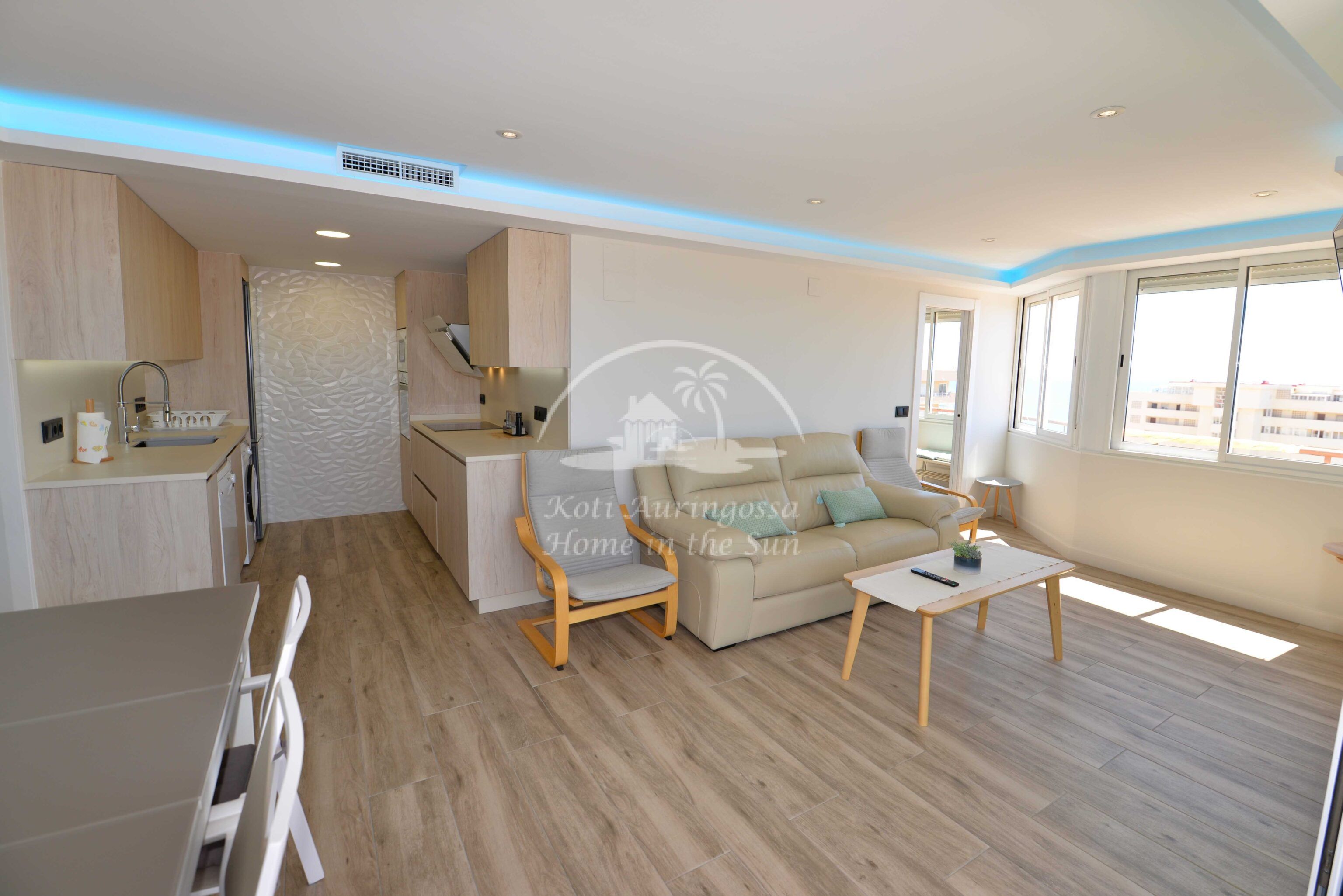 Asunto on remontoitu ja uusittu kauttaaltaan. Vaalea kaunis kalustus ja sisustus, pohjoismaalaiseen makuun. Keskus ilmastointi lämpöpumppu kaikissa huoneissa. Valoisa olohuone ja ruokailutila. Olohuoneesta on käynti länteen päin olevalle aurinkoiselle terassille. Terassilta on kauniit avarat näkymät merelle ja kaupungin ylle. Terassin katto avautuu sähköisesti kokonaan. Tilava moderni keittiö, jossa on myös astianpesukone. 2 makuuhuonetta. 1 kylpyhuone. Taloyhtiössä on ympäri vuoden auki oleva uima-allas. Kaikki keskustan palvelut lähellä. Parkkipaikkoja taloyhtiön suljetulla paikoitus alueella. Tämä on oikea valinta laatua etsivälle.