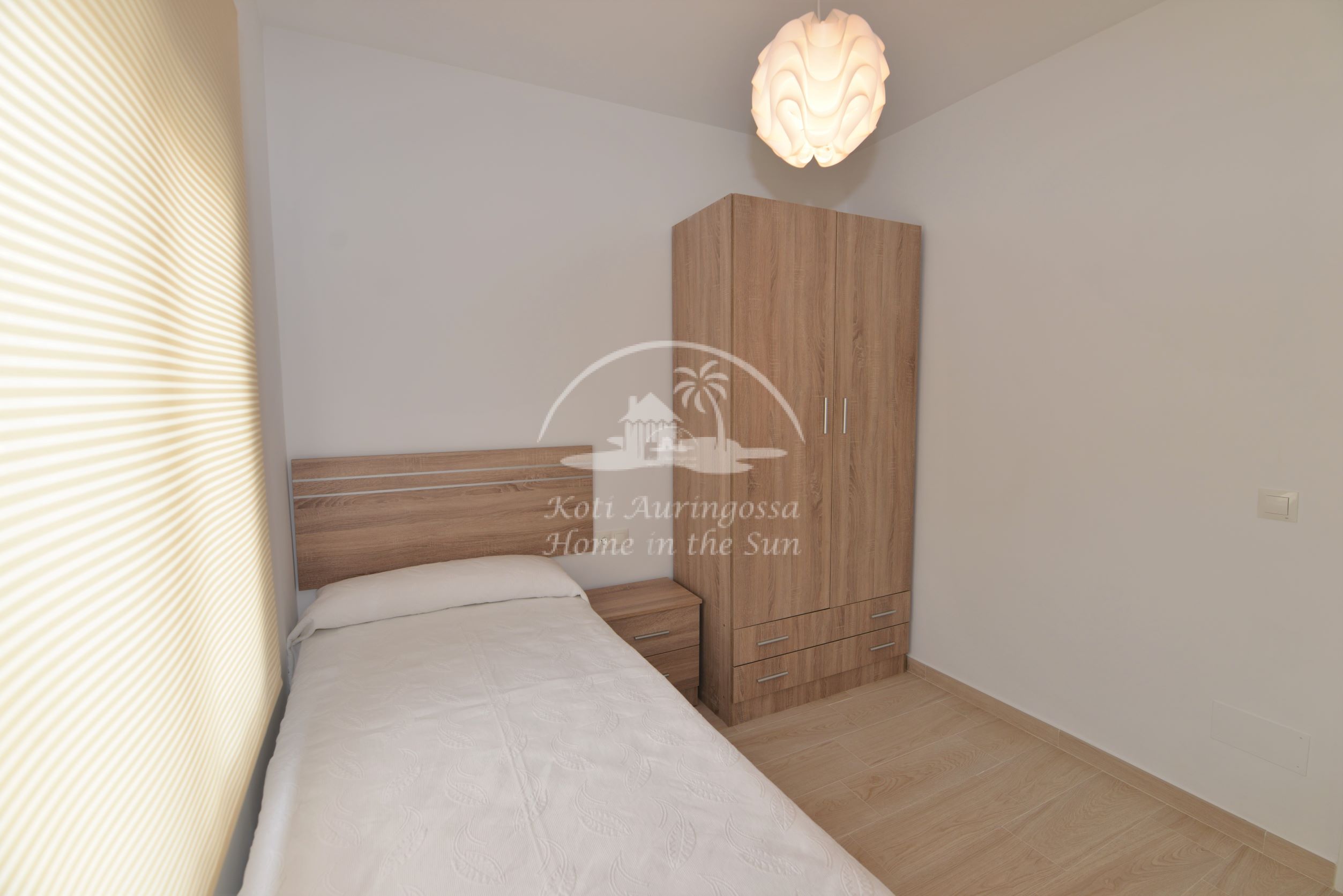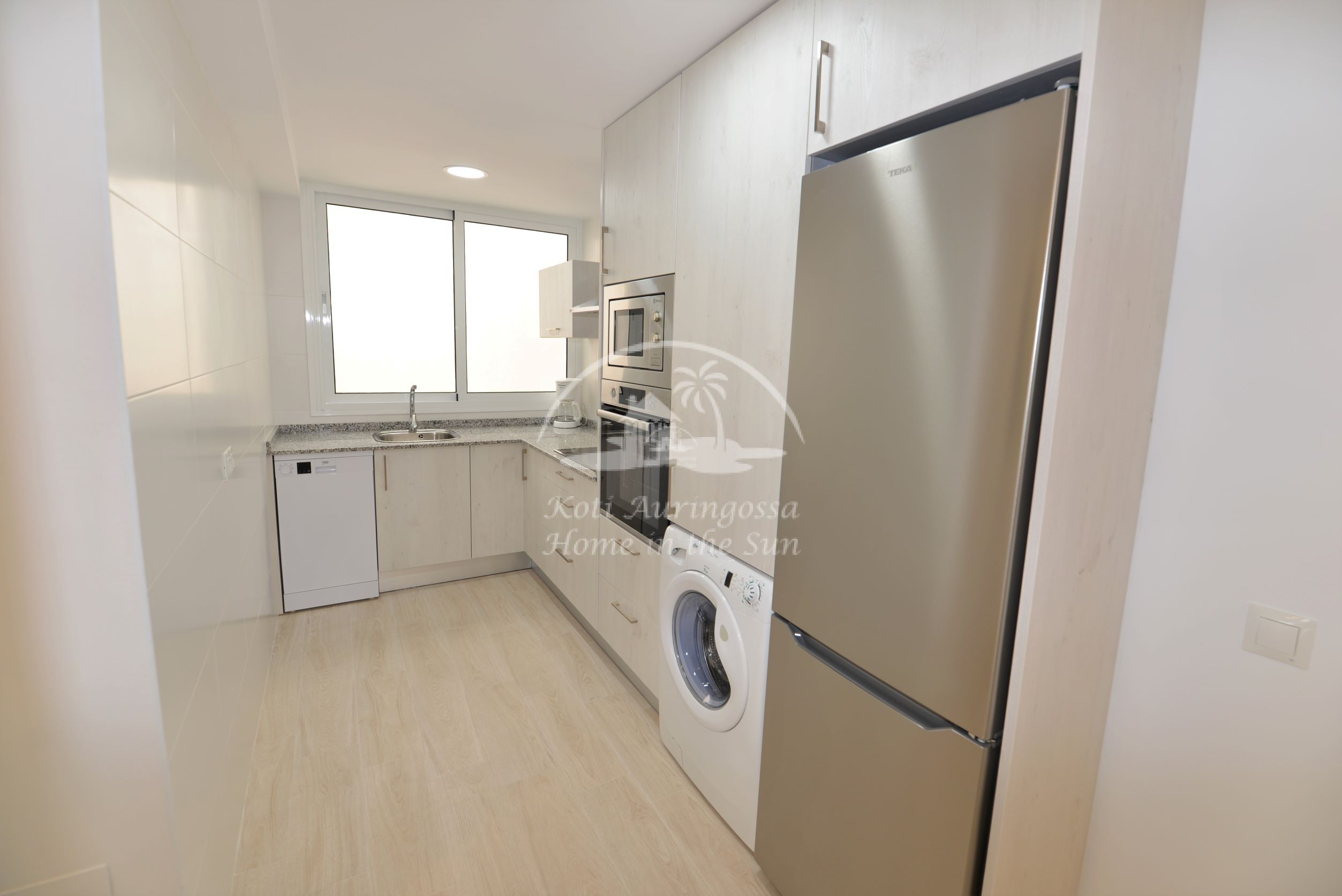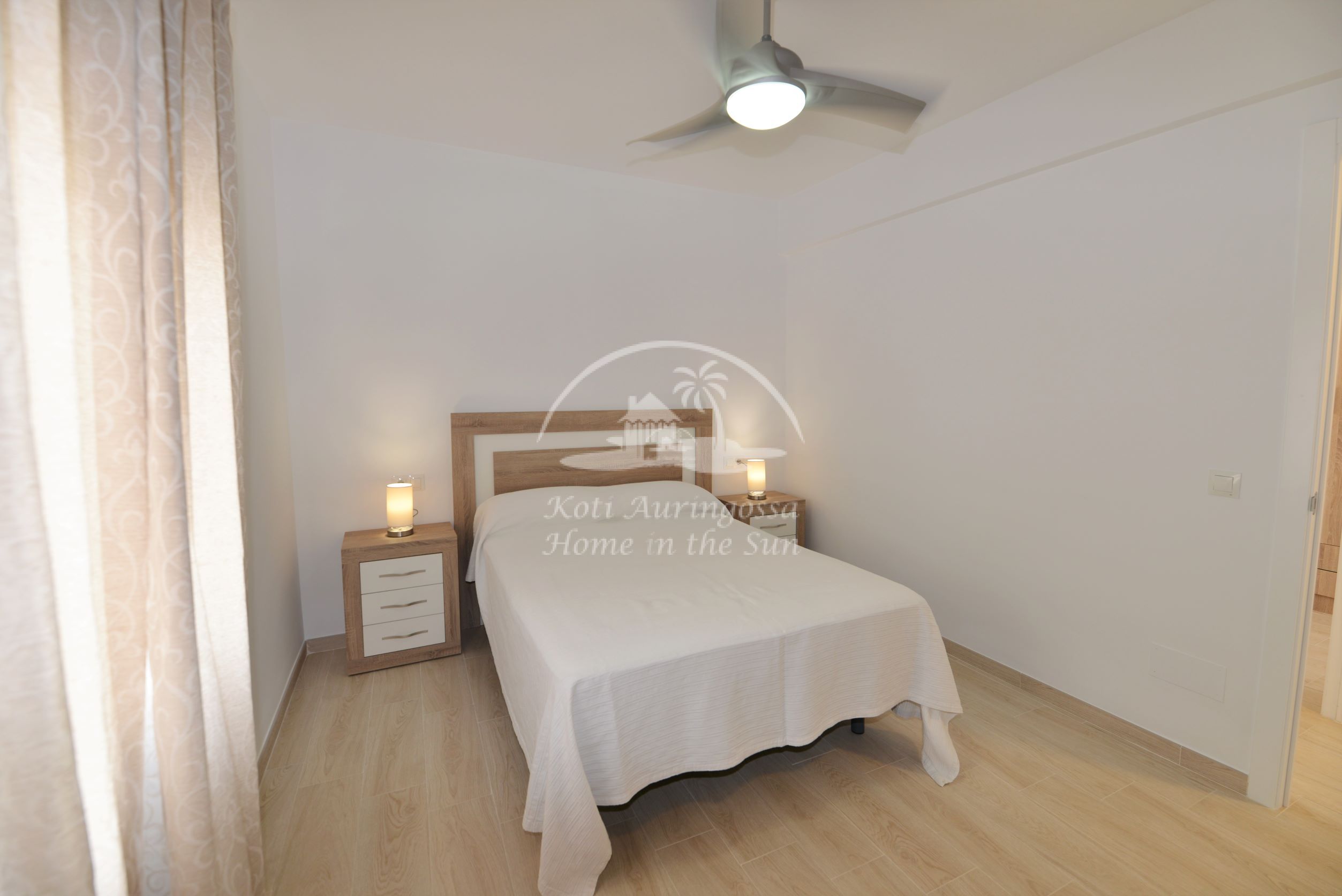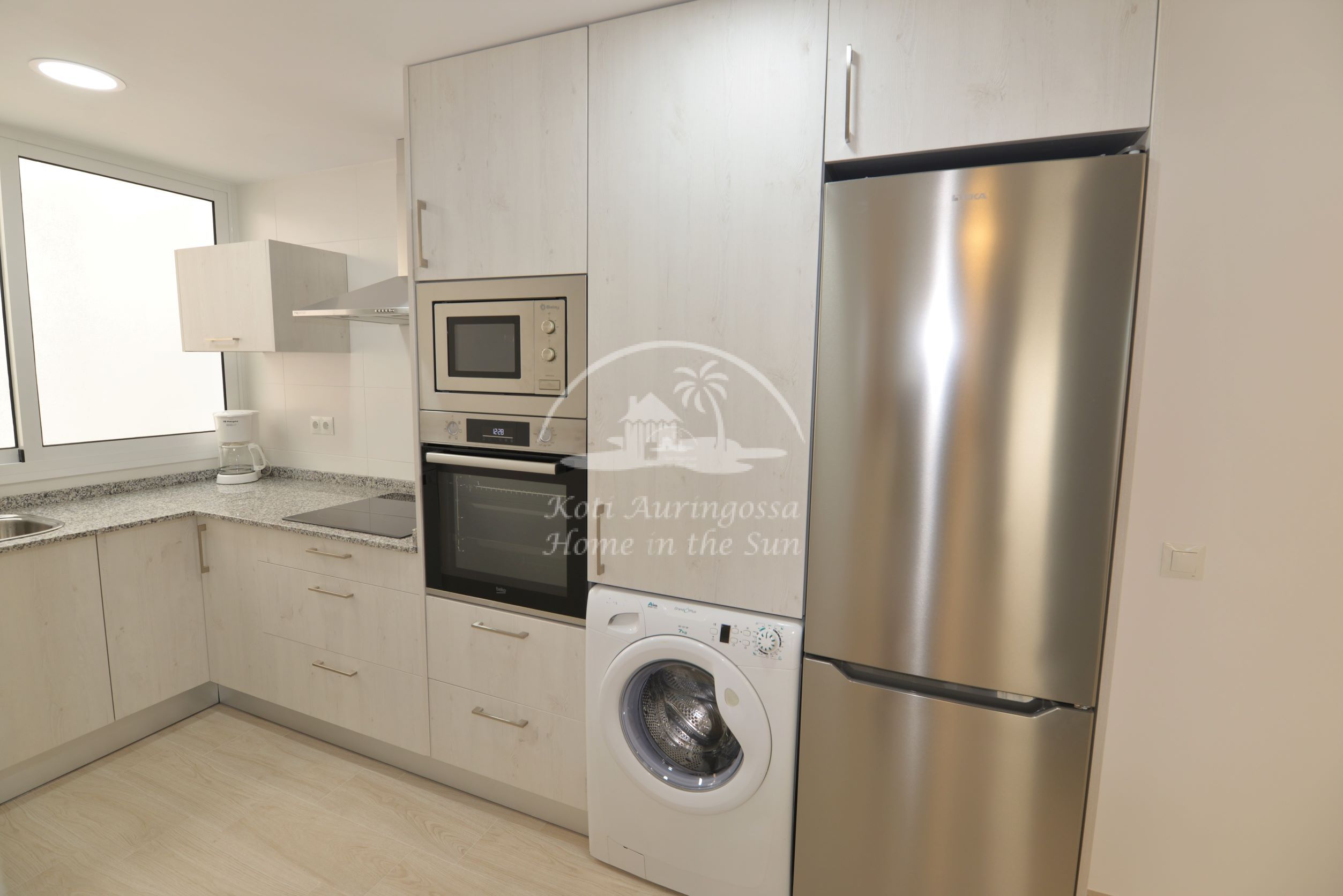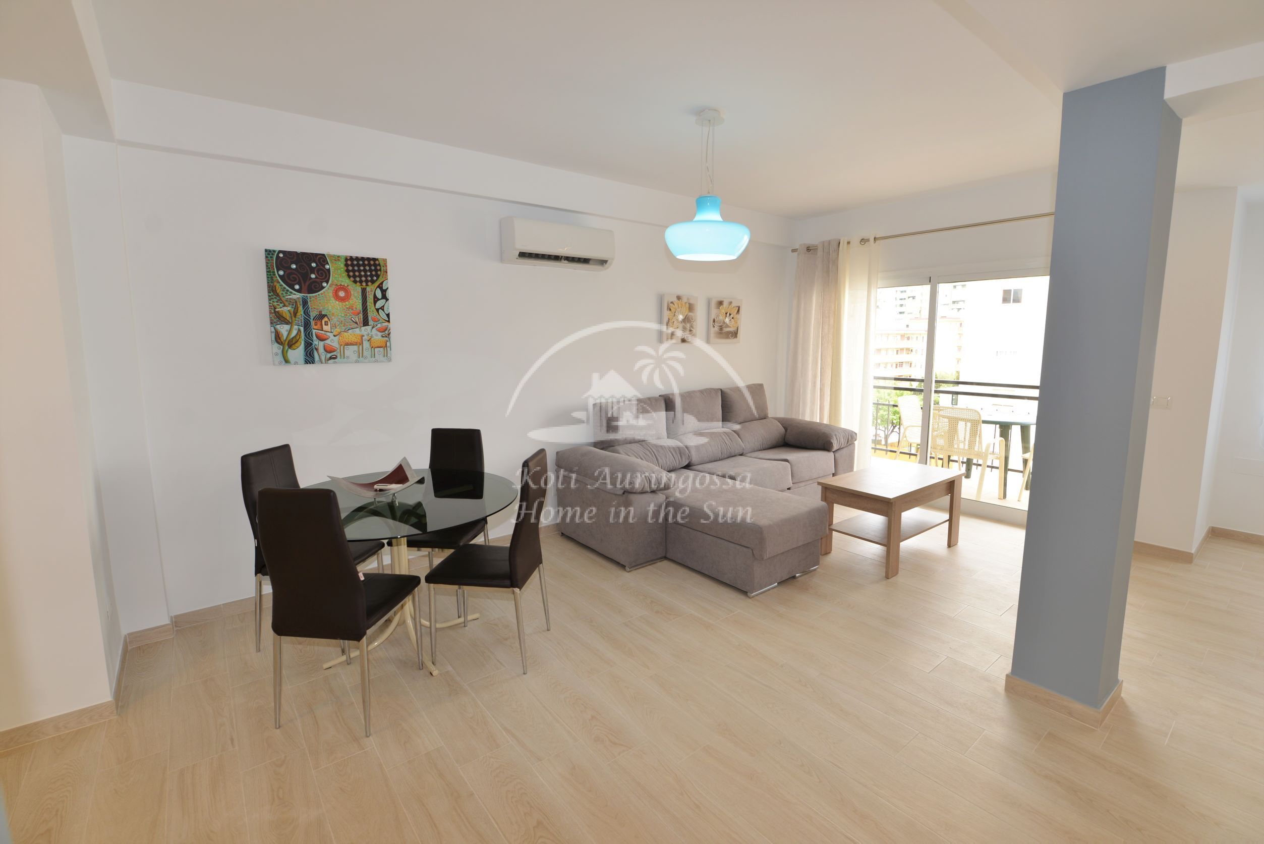 Asunto on uusittu ja remontoitu kauttaaltaan, kaikki asunnossa on uutta. Asunto on tyylikkäästi kevein värein kalustettu ja sisustettu, pohjoismaalaiseen makuun. Valoisa olohuone ja ruokailutila, olohuoneesta käynti aurinkoiselle länteen päin olevalle terassille, josta kivat näkymät lähiympäristöön. Tilava moderni avokeittiö, jossa on kaikki mukavuudet, kuten astianpesukone. 2 makuuhuonetta.