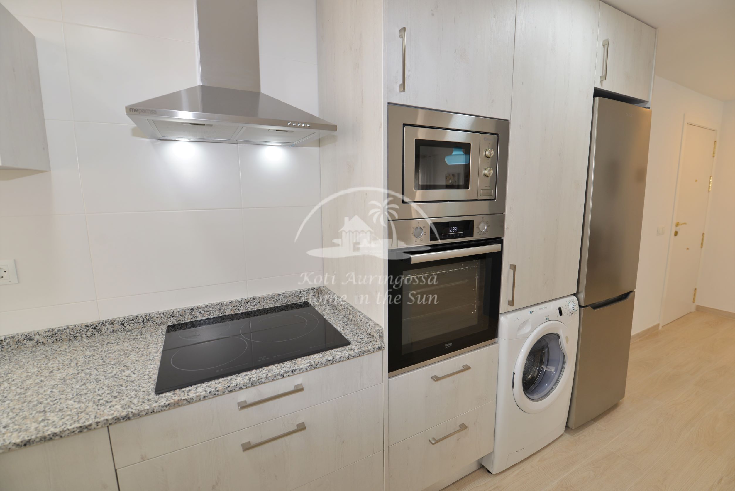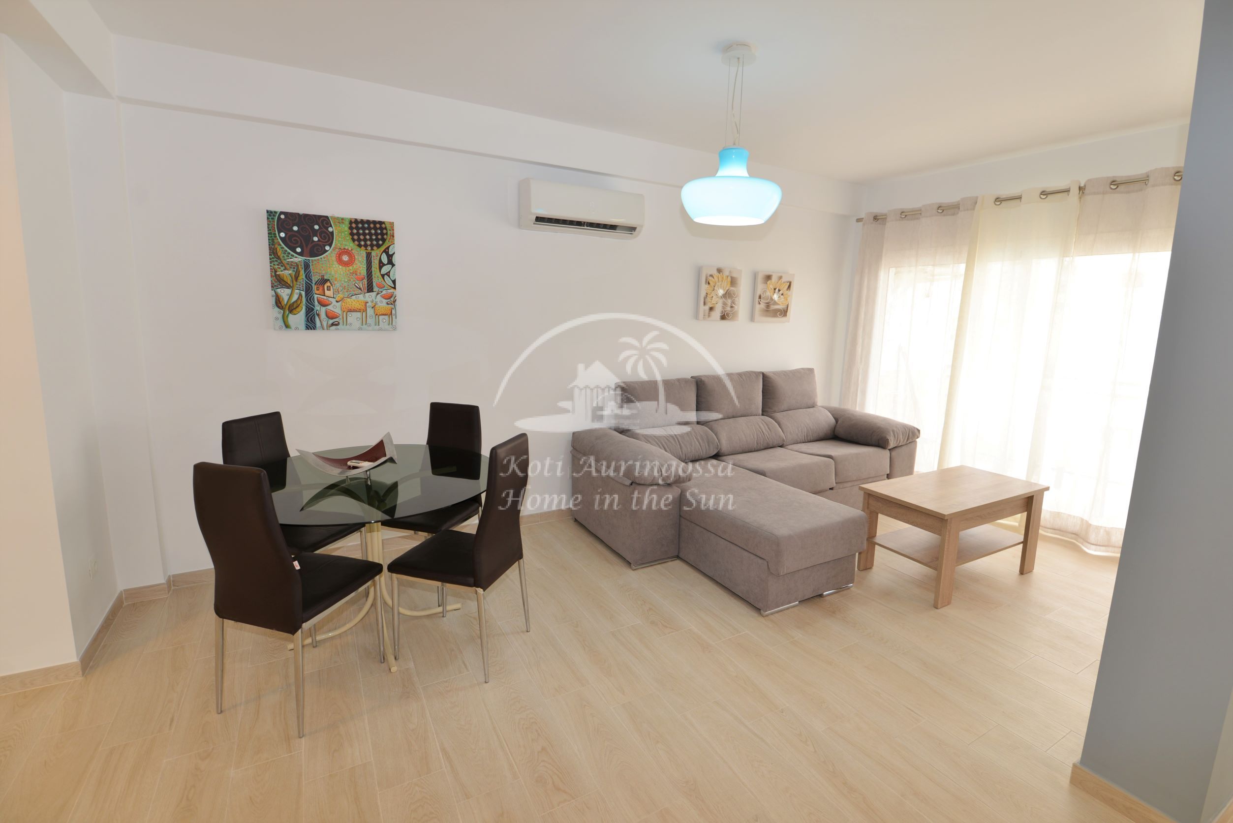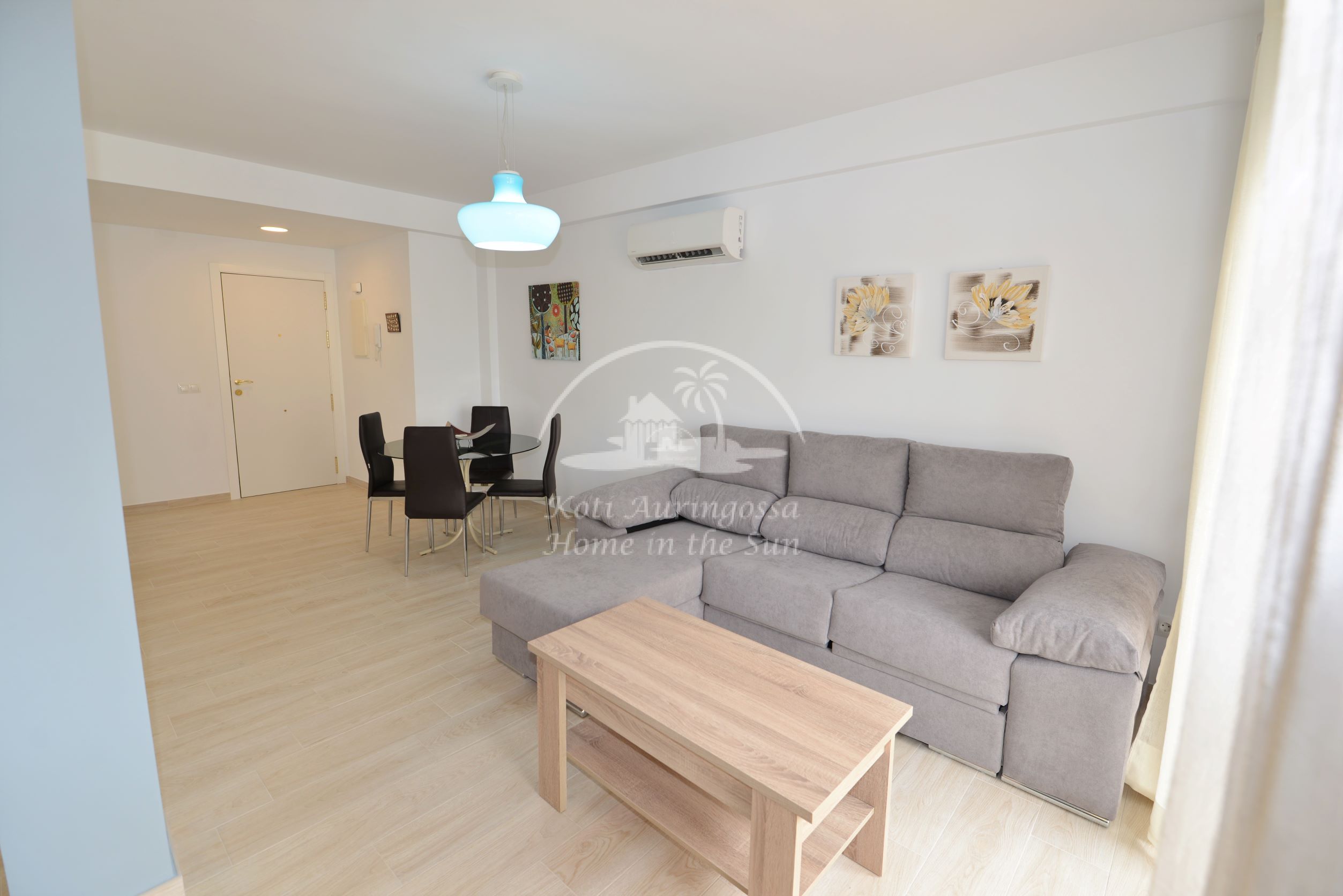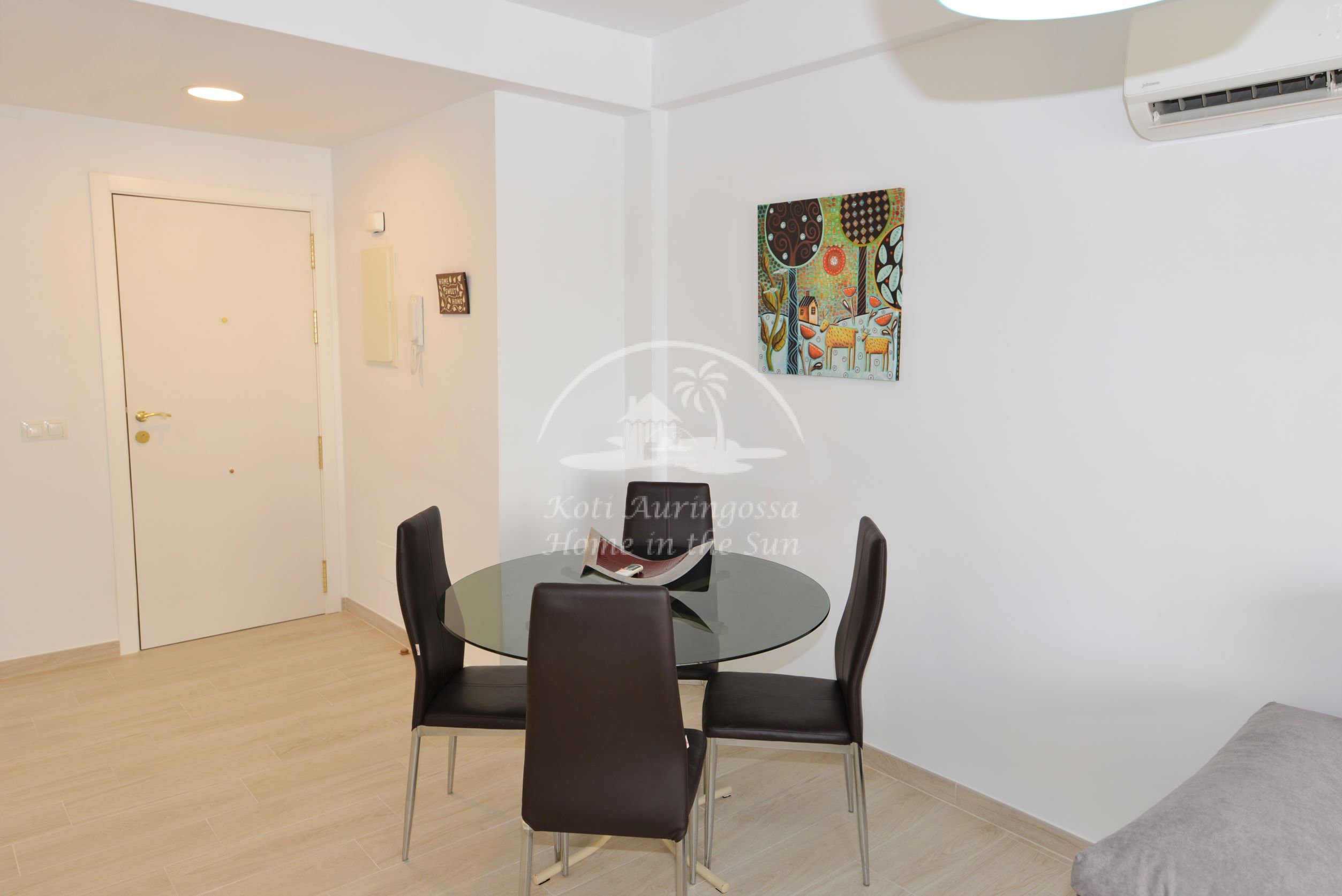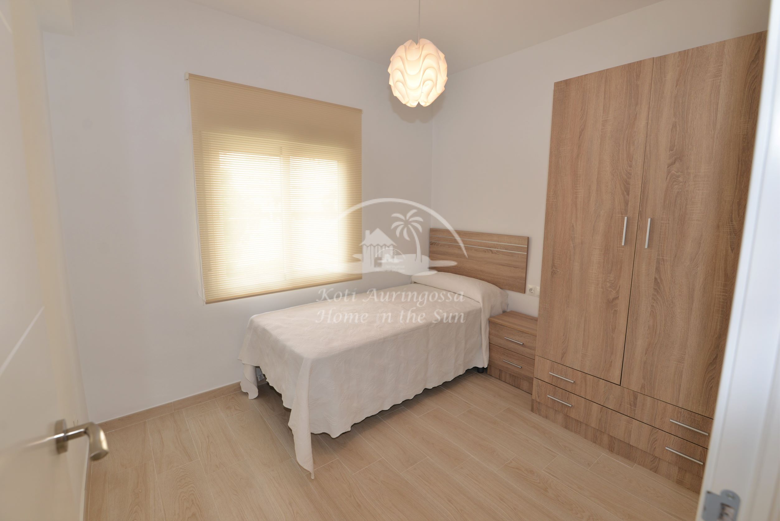 Asunto on uusittu ja remontoitu kauttaaltaan, kaikki asunnossa on uutta. Asunto on tyylikkäästi kevein värein kalustettu ja sisustettu, pohjoismaalaiseen makuun. Valoisa olohuone ja ruokailutila, olohuoneesta käynti aurinkoiselle länteen päin olevalle terassille, josta kivat näkymät lähiympäristöön. Tilava moderni avokeittiö, jossa on kaikki mukavuudet, kuten astianpesukone. 2 makuuhuonetta.