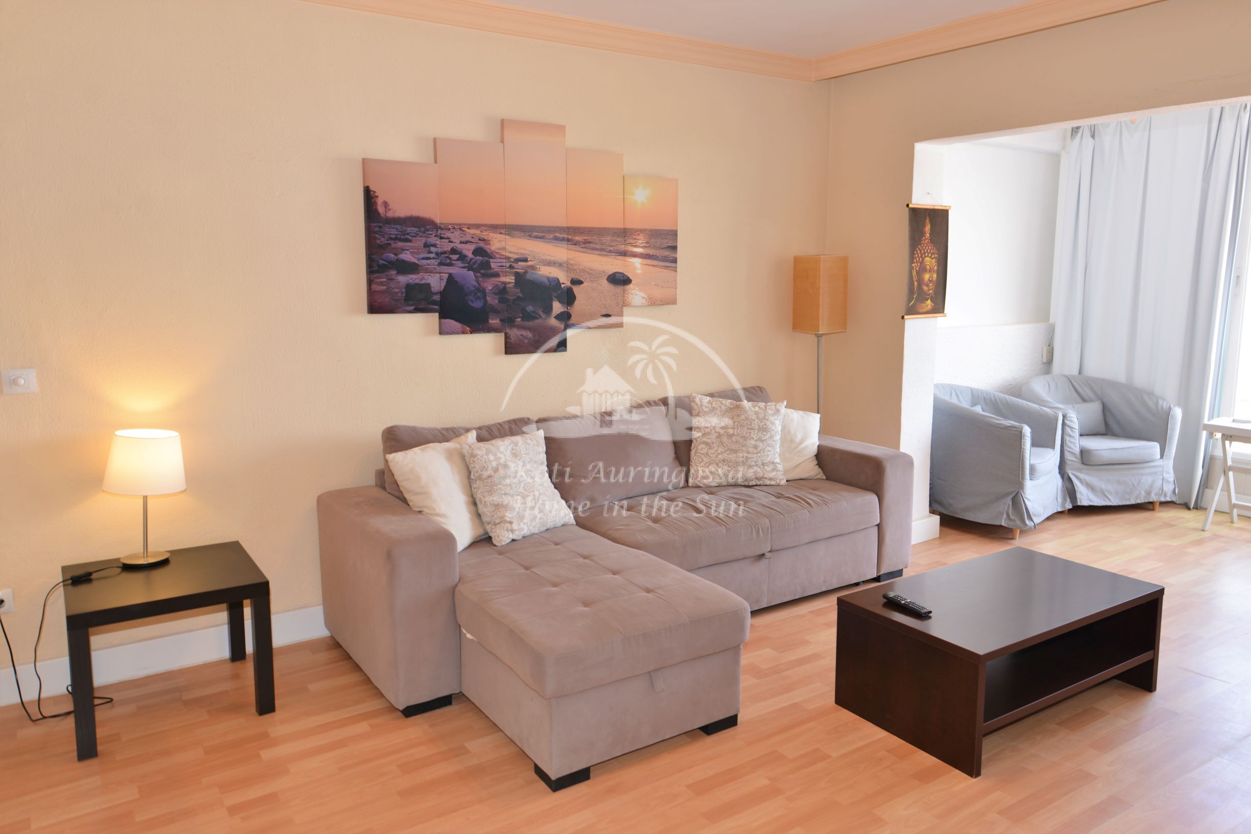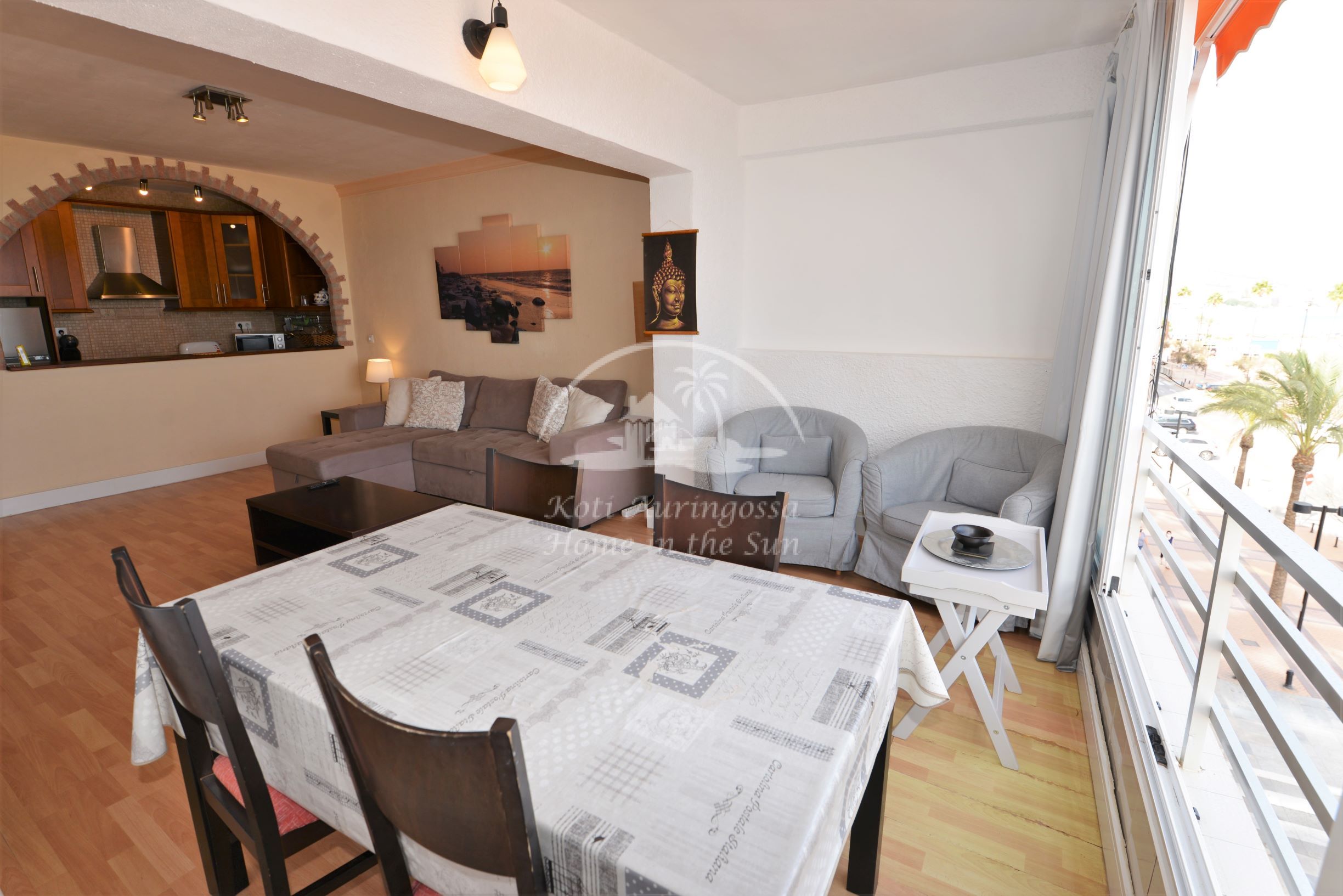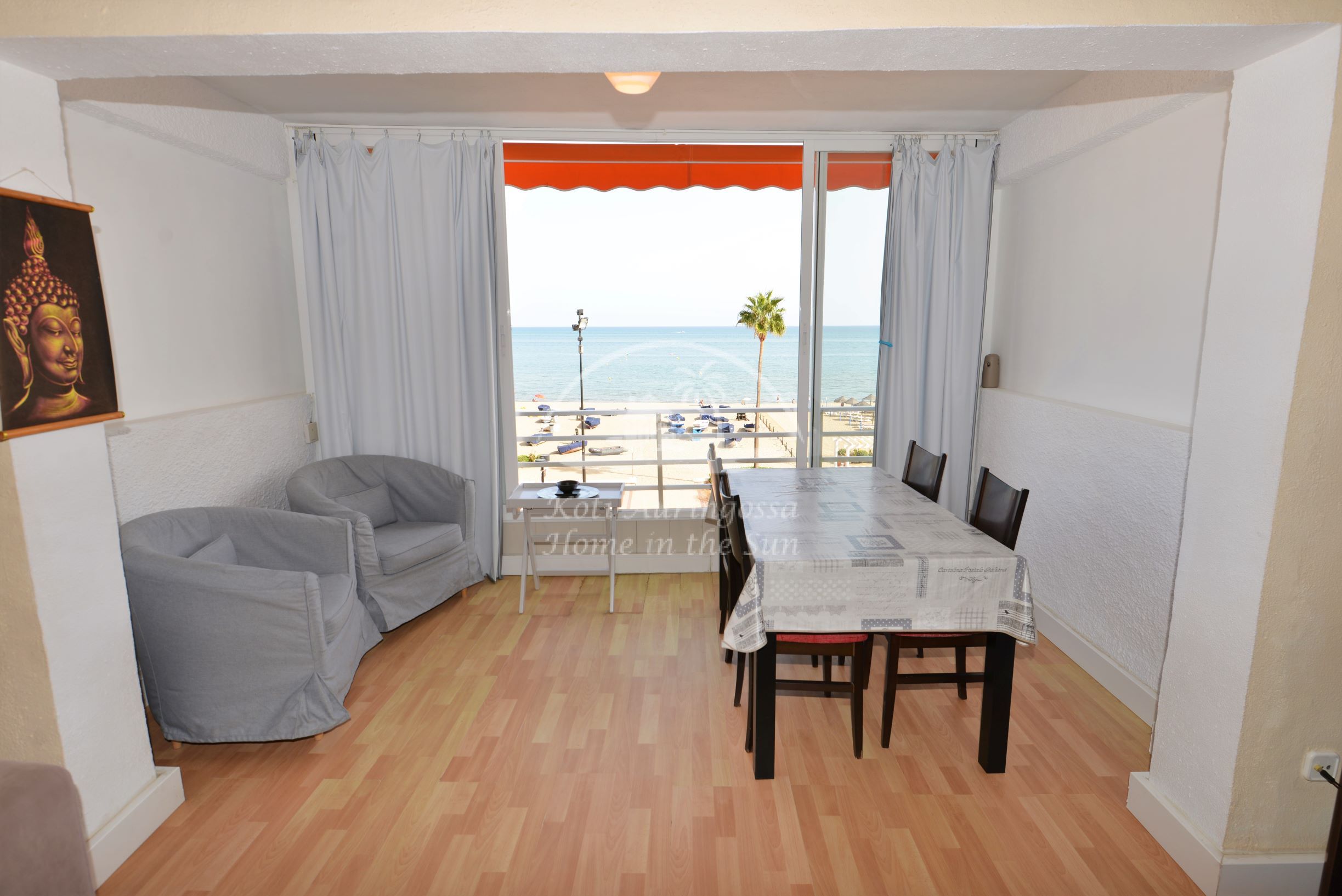 Asunto on kauniisti kalustettu ja sisustettu. Valoisa olohuone ja ruokailutila. Aamu aurinkoisesta ruokailutilasta on hienot näkymät merelle ja rantakadulle. Tässä asunnossa ei ole terassia. Täydellisesti varustettu keittiö jossa on myös astianpesukone. 1 makuuhuone. 1 kylpyhuone. Olohuoneessa on ilmastointi lämpöpumppu. Kaikki keskustan palvelut lähellä. Merenrantaan 50 metriä.