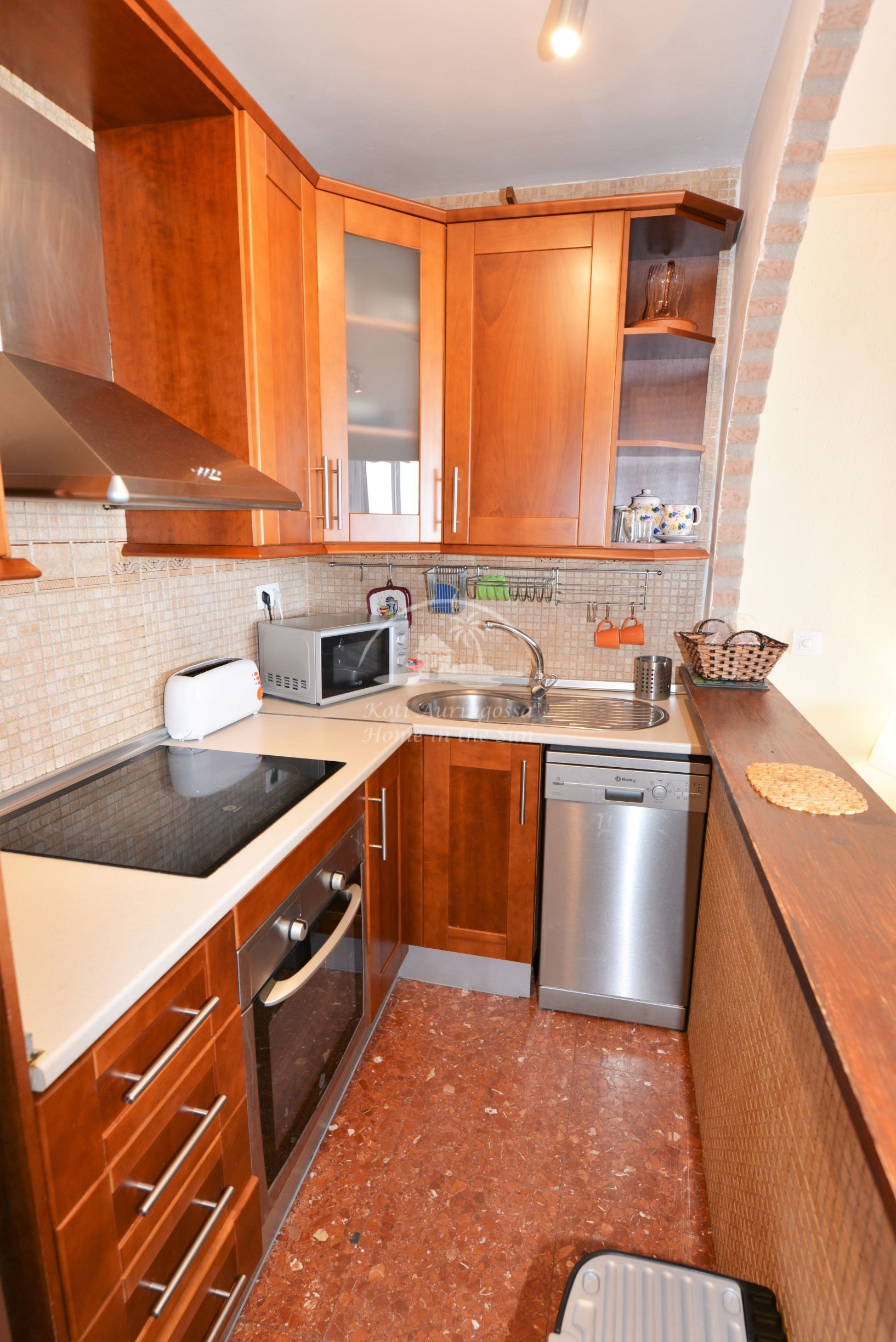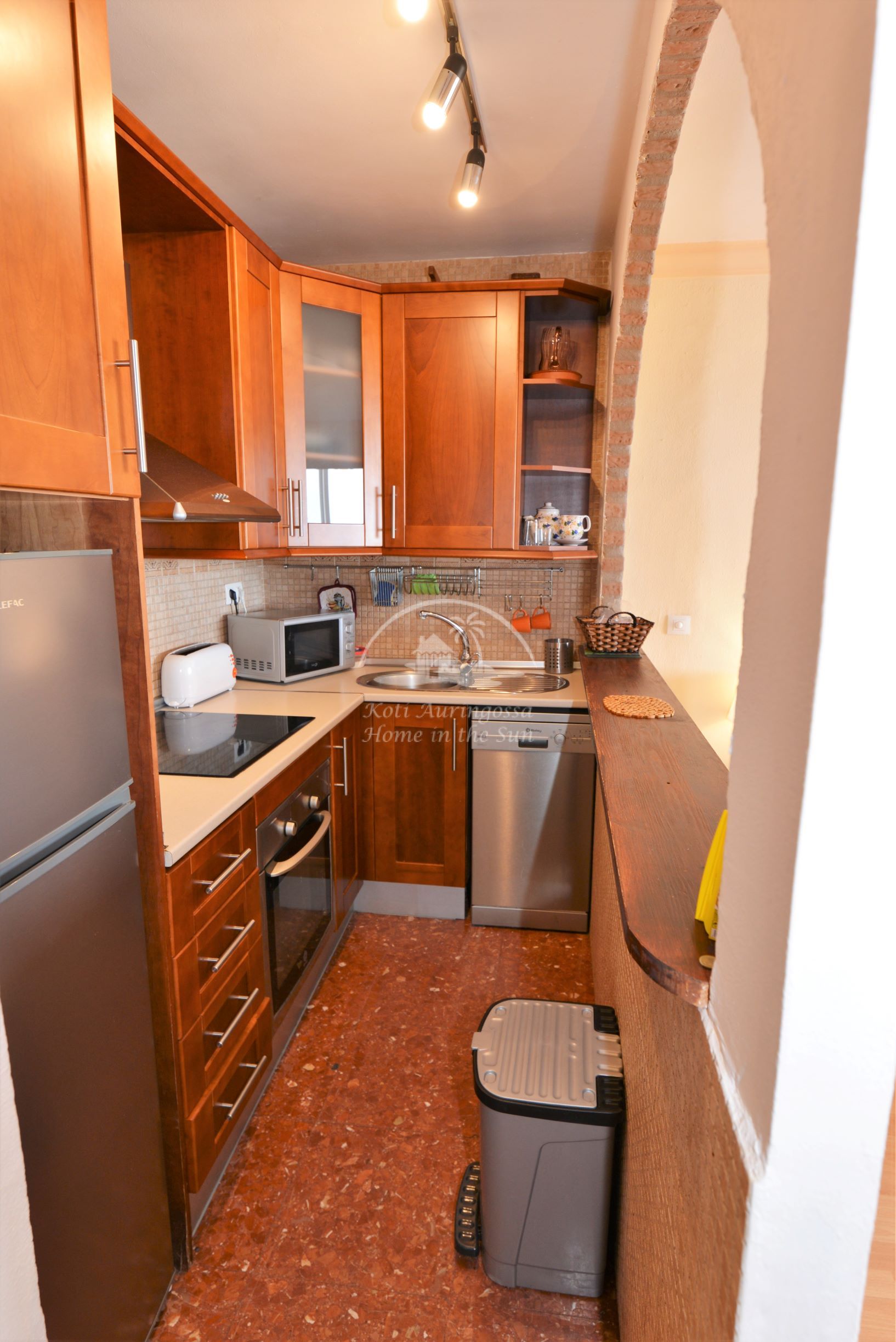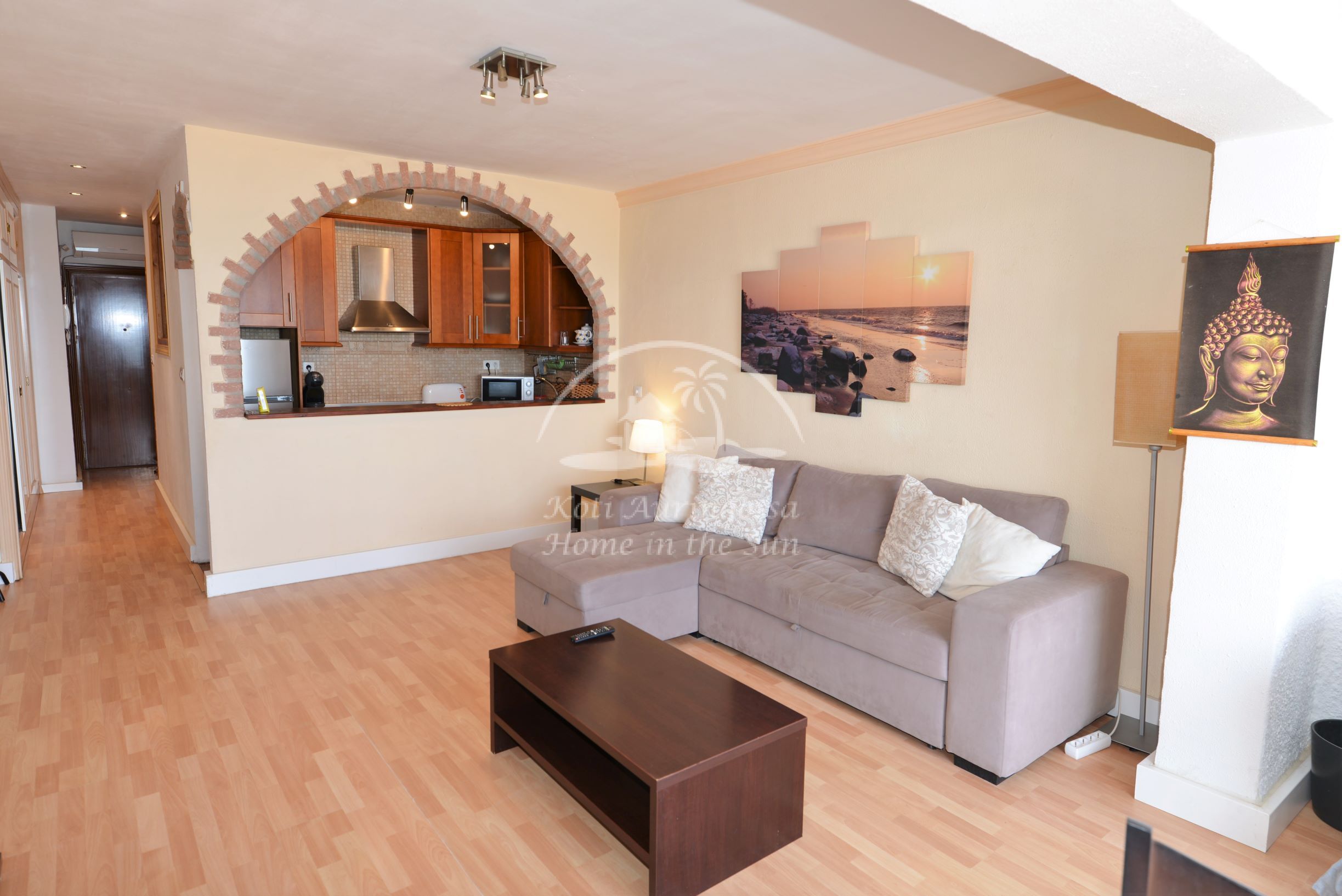 Asunto on kauniisti kalustettu ja sisustettu. Valoisa olohuone ja ruokailutila. Aamu aurinkoisesta ruokailutilasta on hienot näkymät merelle ja rantakadulle. Tässä asunnossa ei ole terassia. Täydellisesti varustettu keittiö jossa on myös astianpesukone. 1 makuuhuone. 1 kylpyhuone. Olohuoneessa on ilmastointi lämpöpumppu. Kaikki keskustan palvelut lähellä. Merenrantaan 50 metriä.