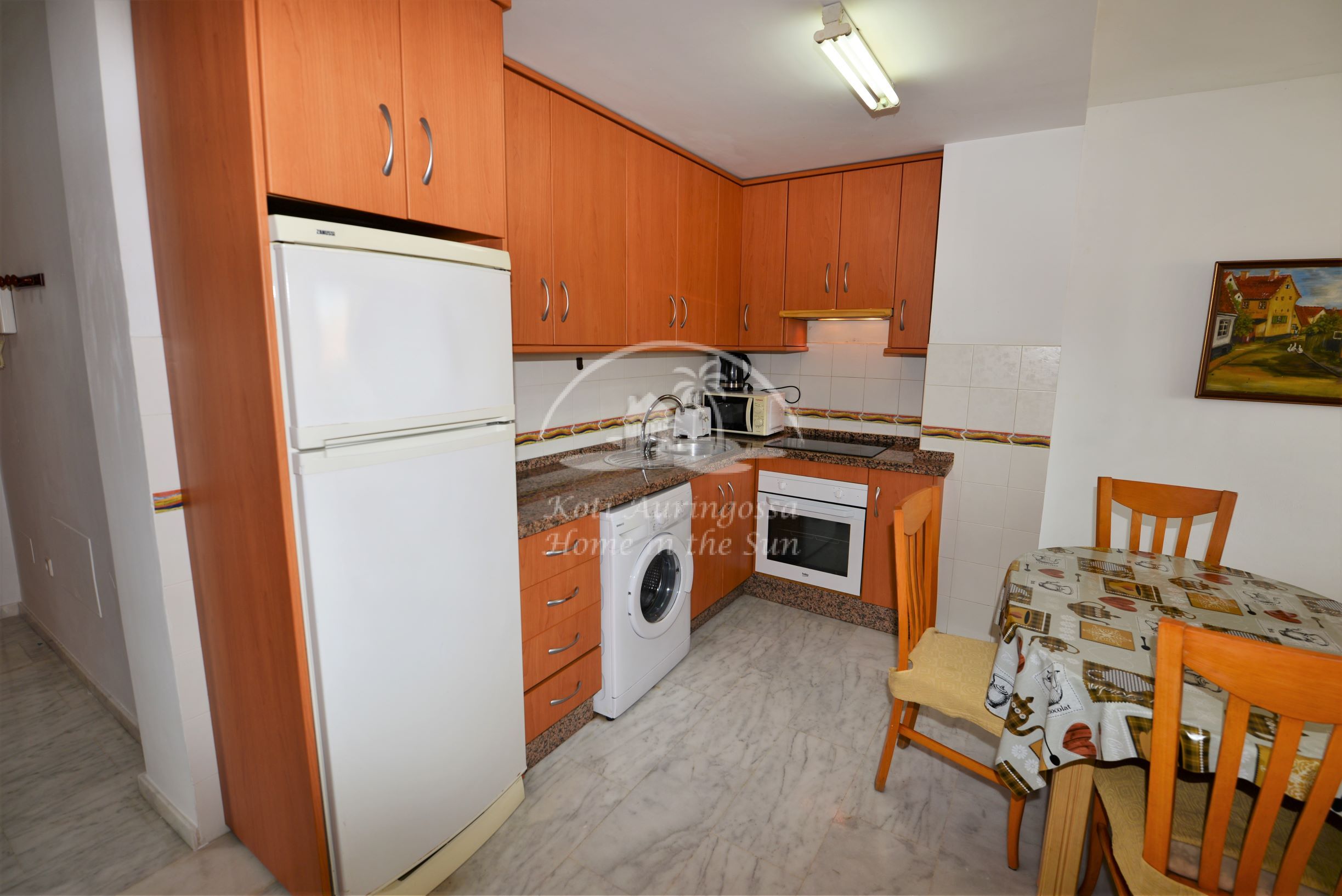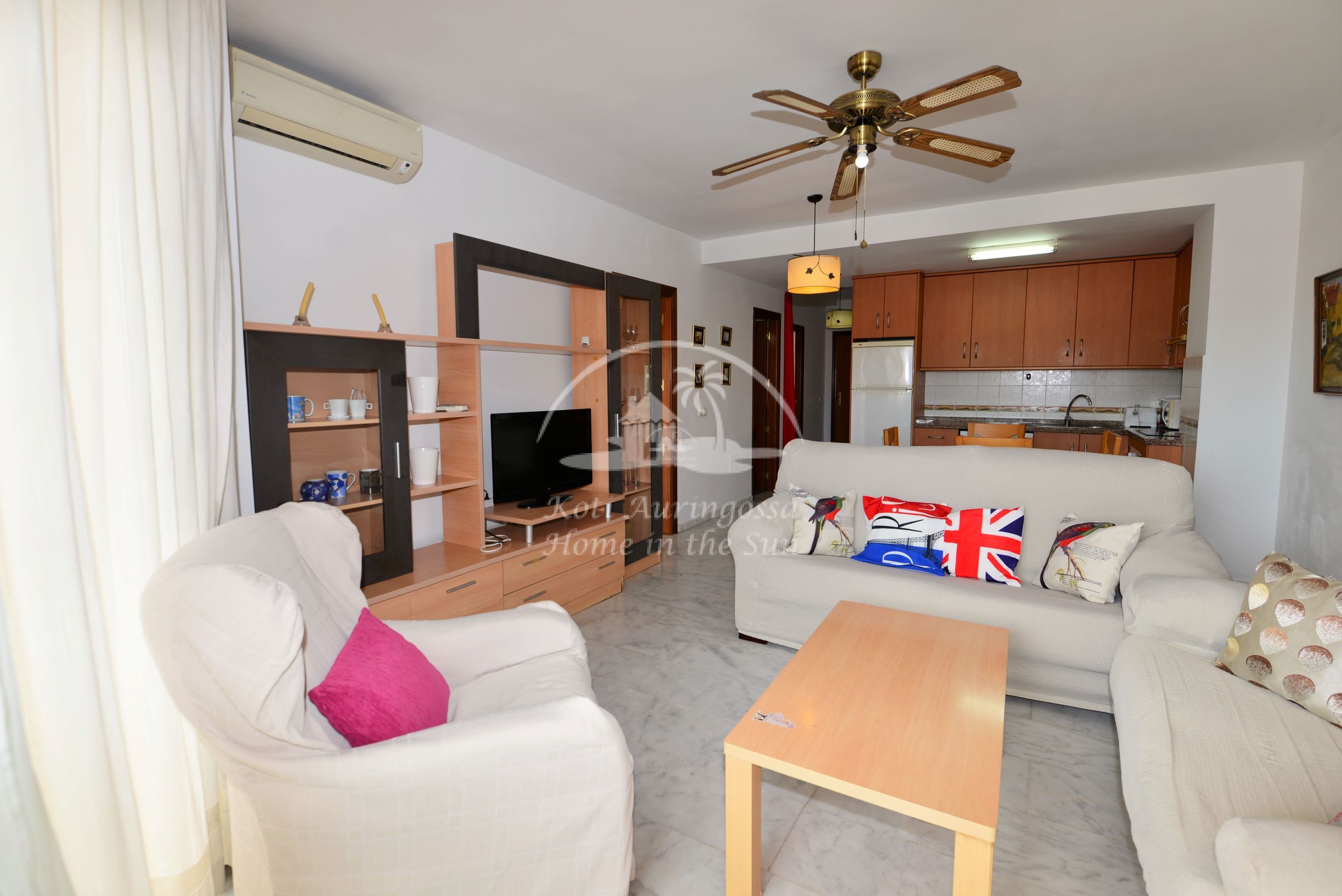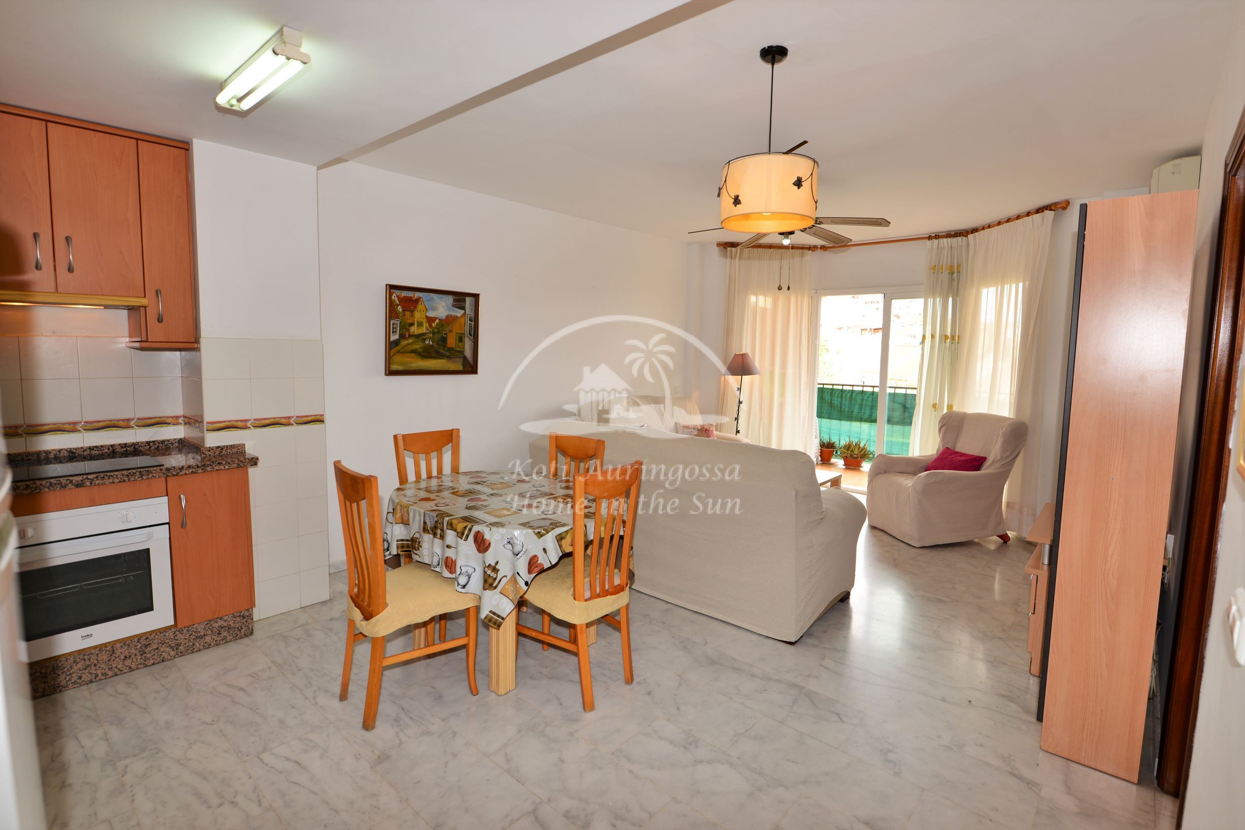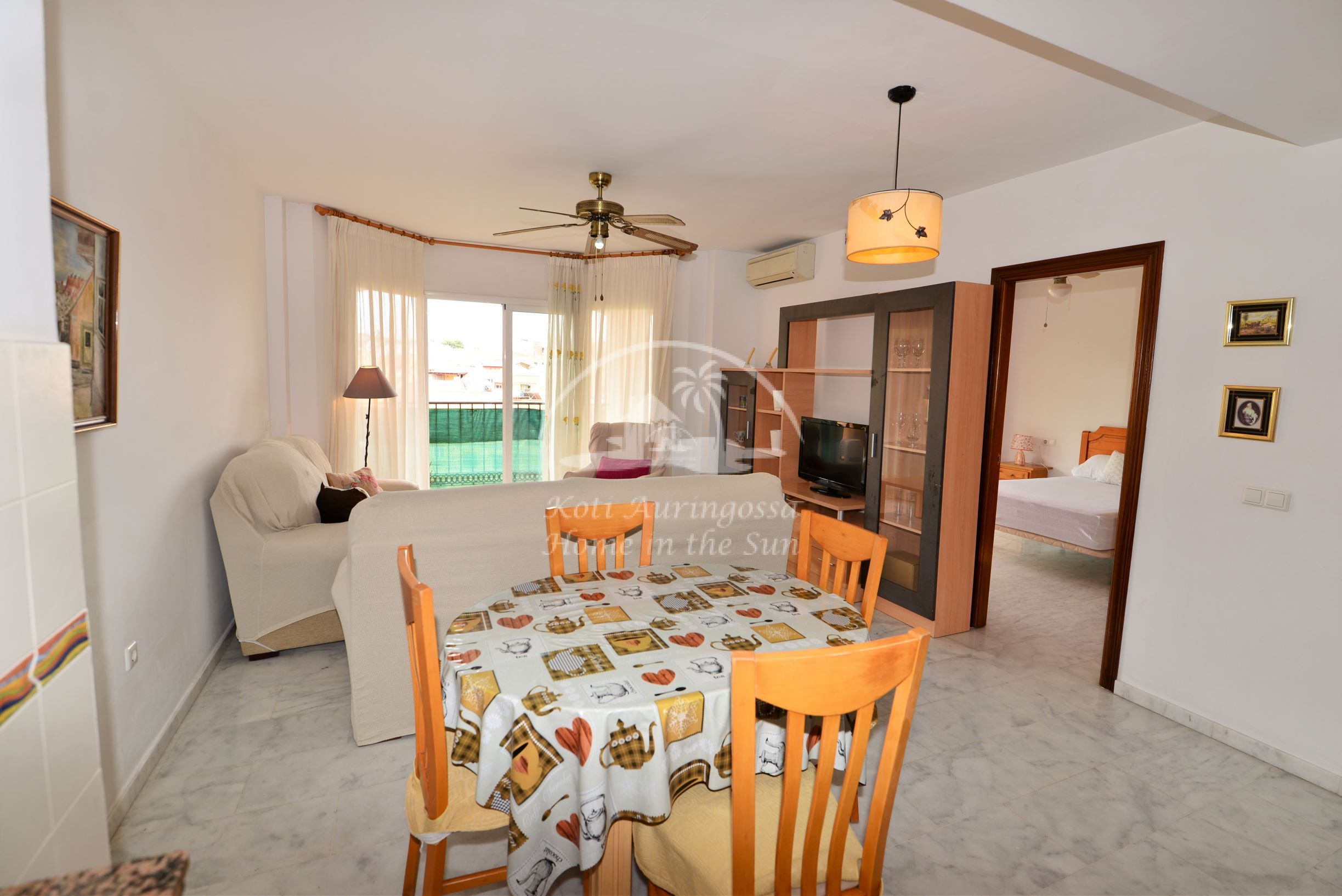 Asunto on kodikkaasti kalustettu ja sisustettu. Avara valoisa olohuone ja ruokailutila. Moderni avokeittiö, jossa kaikki toimii sähköllä. Olohuoneesta ja päämakuuhuoneesta on käynti aamu aurinkoiselle isolle terassille, jots akivat näkymät vehreään lähiympäristöön. 2 makuuhuonetta. 1 kylpyhuone. Olohuoneessa on ilmastointi lämpöpumppu. Taloyhtiössä on uima-allas.