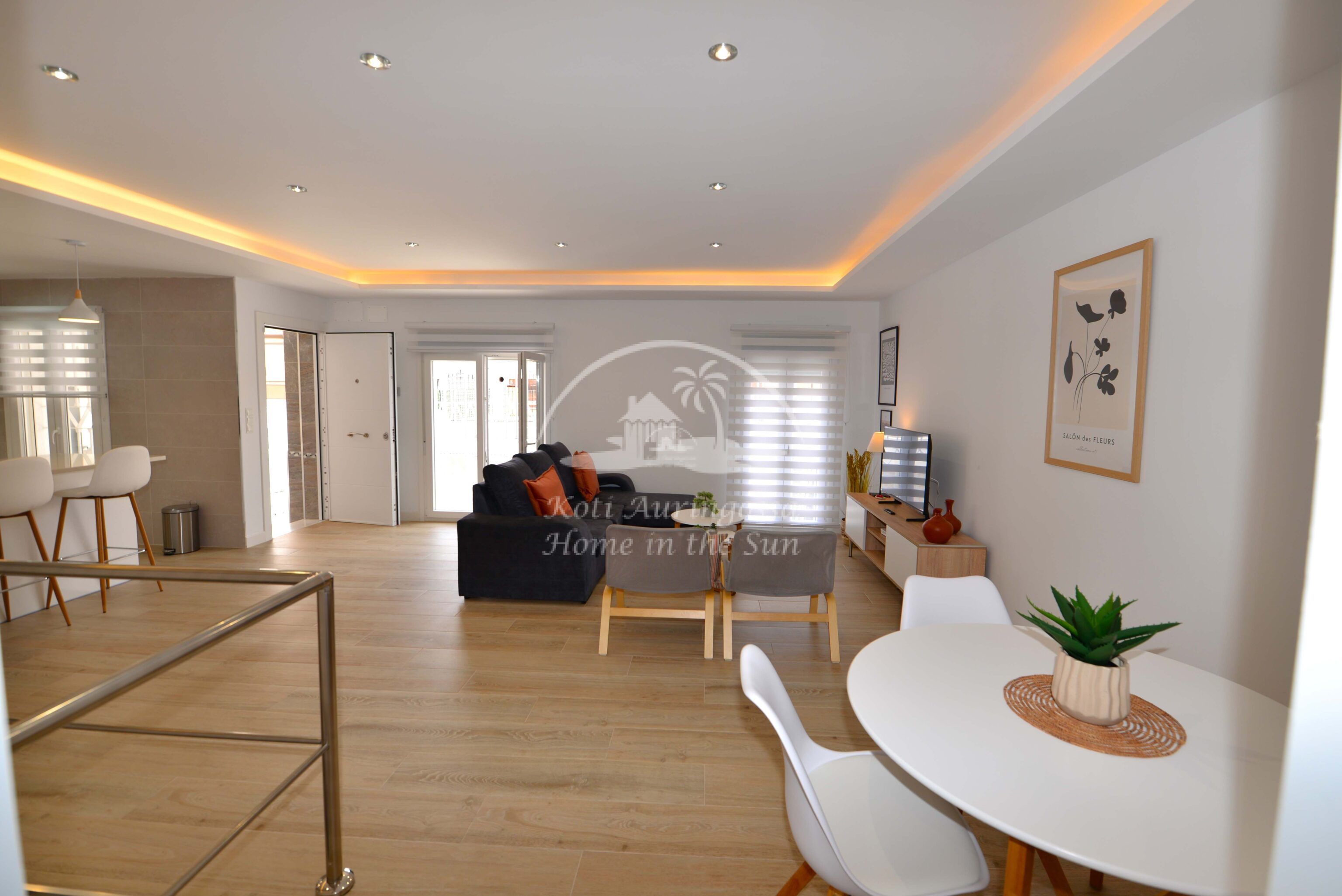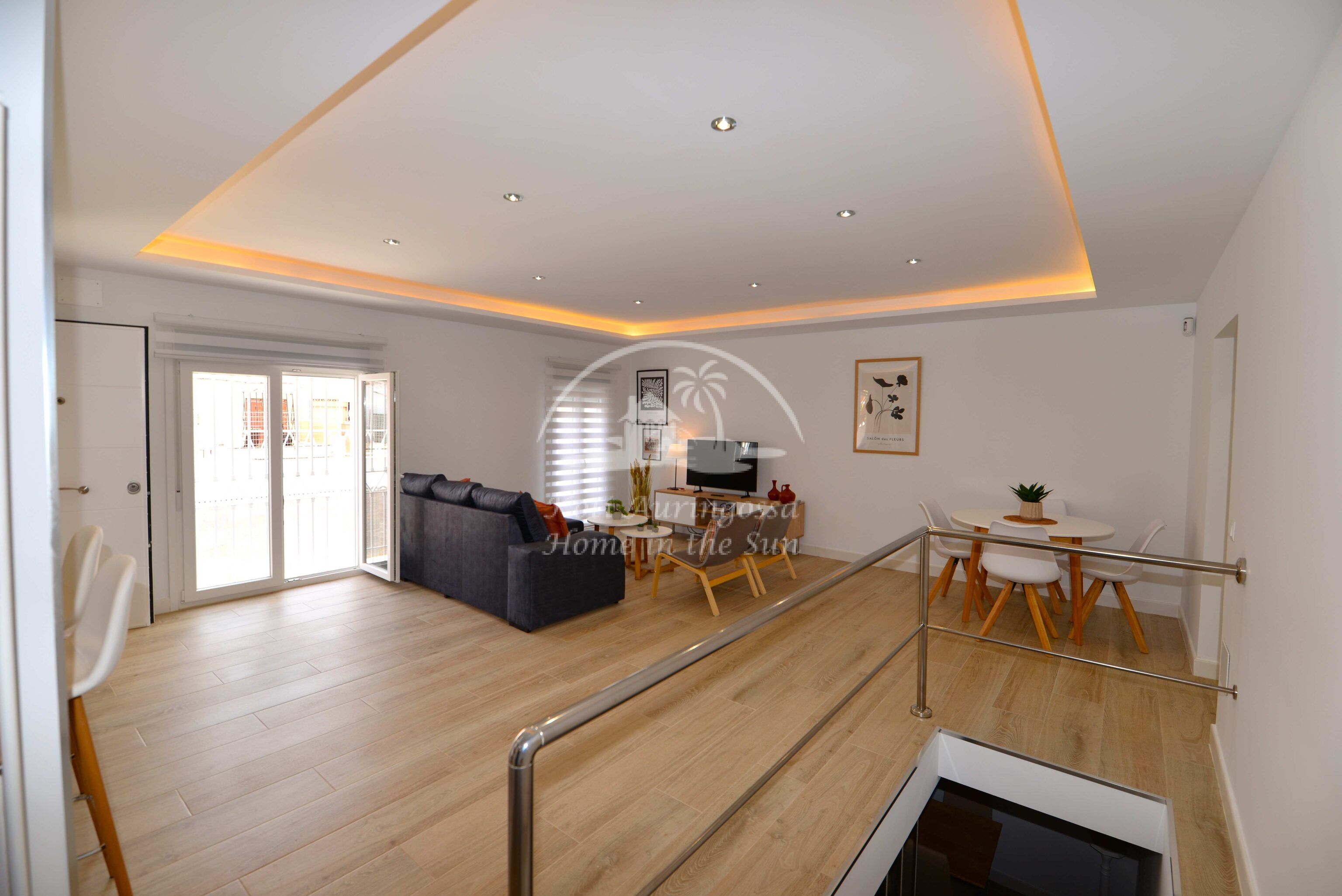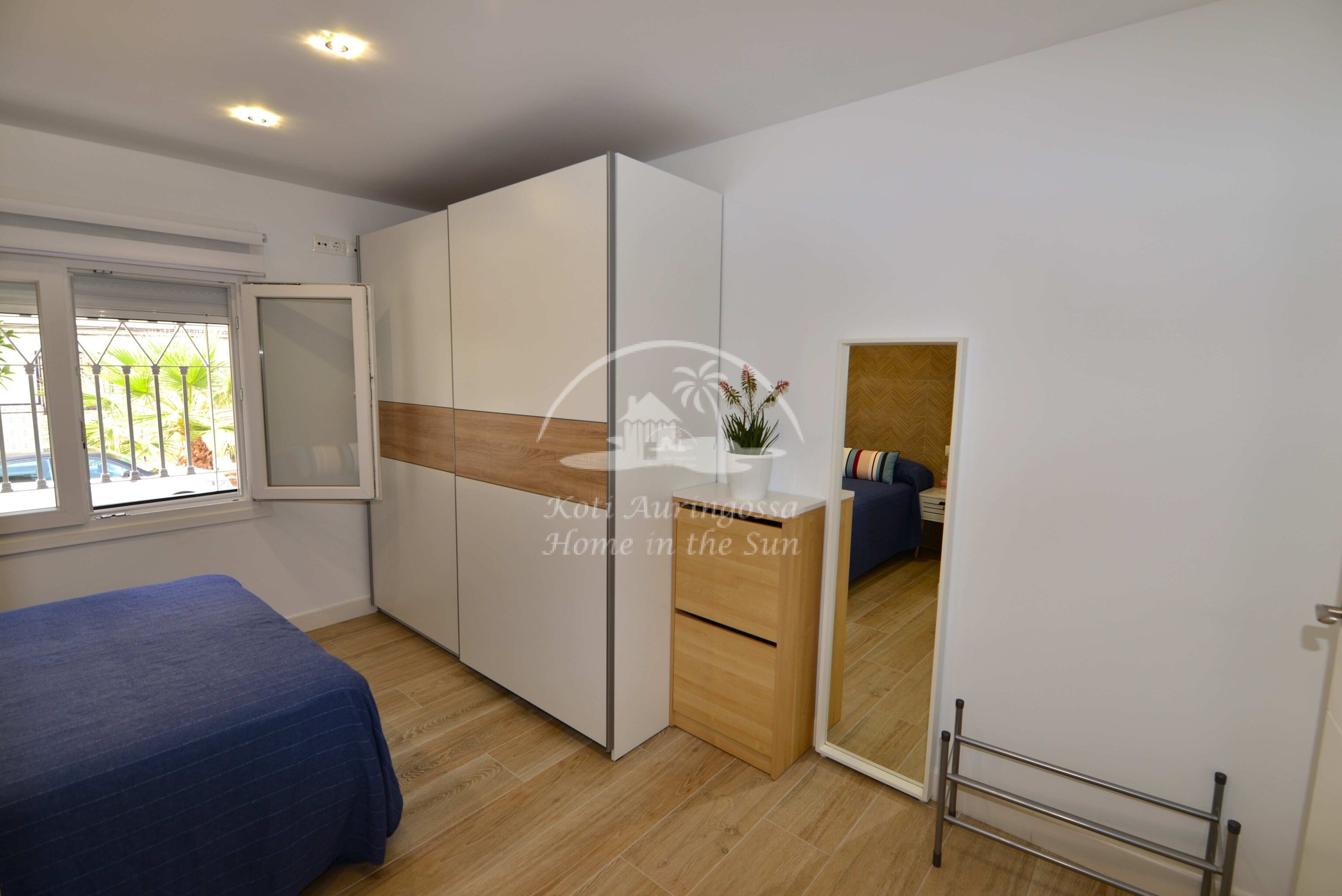 Asunto on kokonaan uusittu ja remontoitu kauttaaltaan. Katutasossa on valoisa olohuone ja ruokailutila. Moderni amerikkalainen keittiö. 2 makuuhuonetta. 2 kylpyhuonetta. Talon sisäänkäynnin yhteydessä on koko paritalon pituinen suuri aurinkoinen terassi. Alakerrassa on toinen olohuone ja ruokailutila, sekä kolmas makuuhuone. Remontointiin on käytetty erittäin korkealaatuisia materiaaleja. Tämä on oikea valinta laatua etsivälle. Ilmastointi lämpöpumppu olohuoneessa. Nopea valokuitu wifi internet yhteys valmiina. Talon edessä ja lähi ympäristössä on runsaasti parkkipaikkoja. Merenrantaan ja rantakadulle on vain 400 metriä, ja siellä on runsaasti hyviä ruokaravintoloita. Tämä kohde on vuokrattavissa vain ympäri vuotisesti. Osoite: Calle Teniente Fernandez Nespral. Málaga.