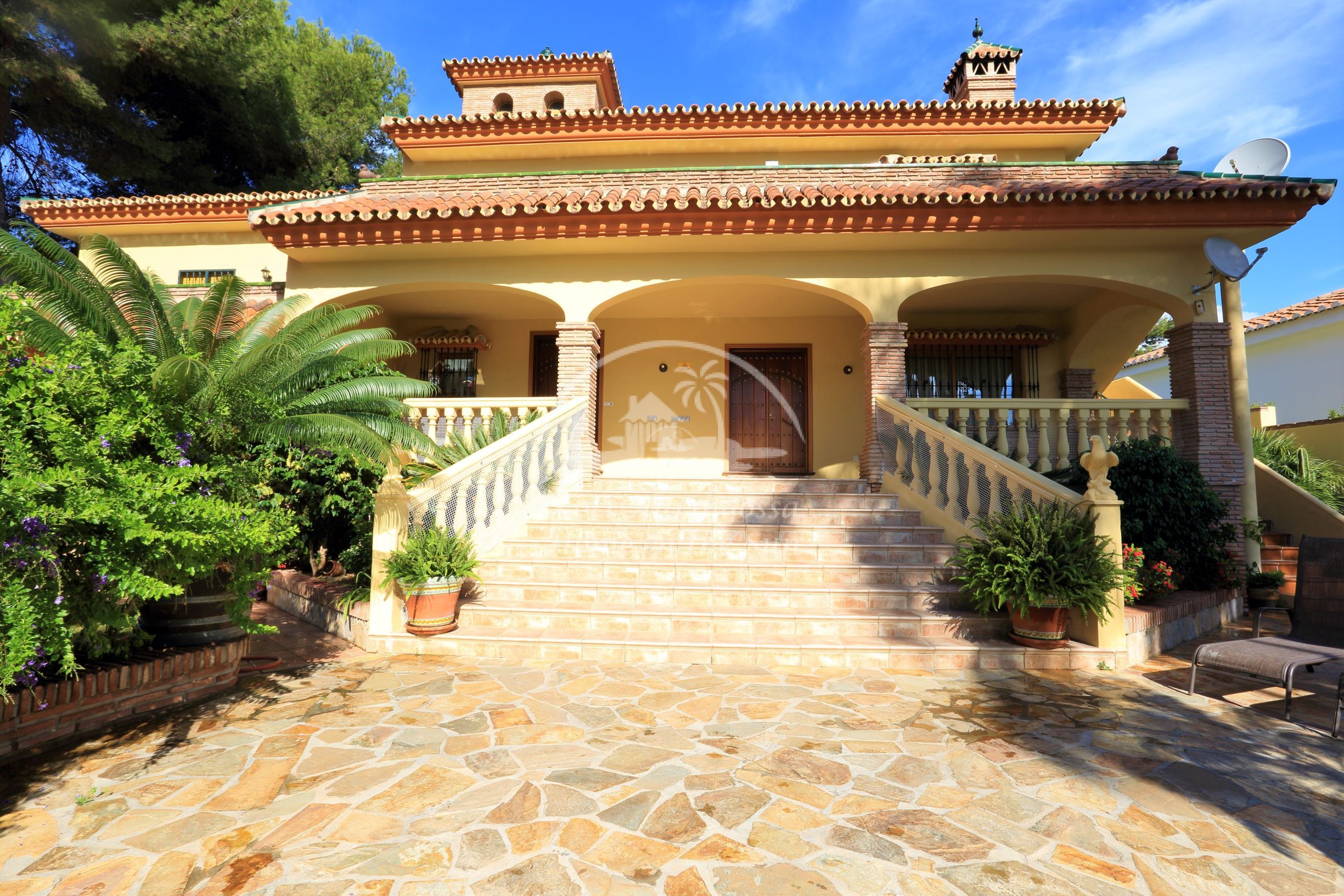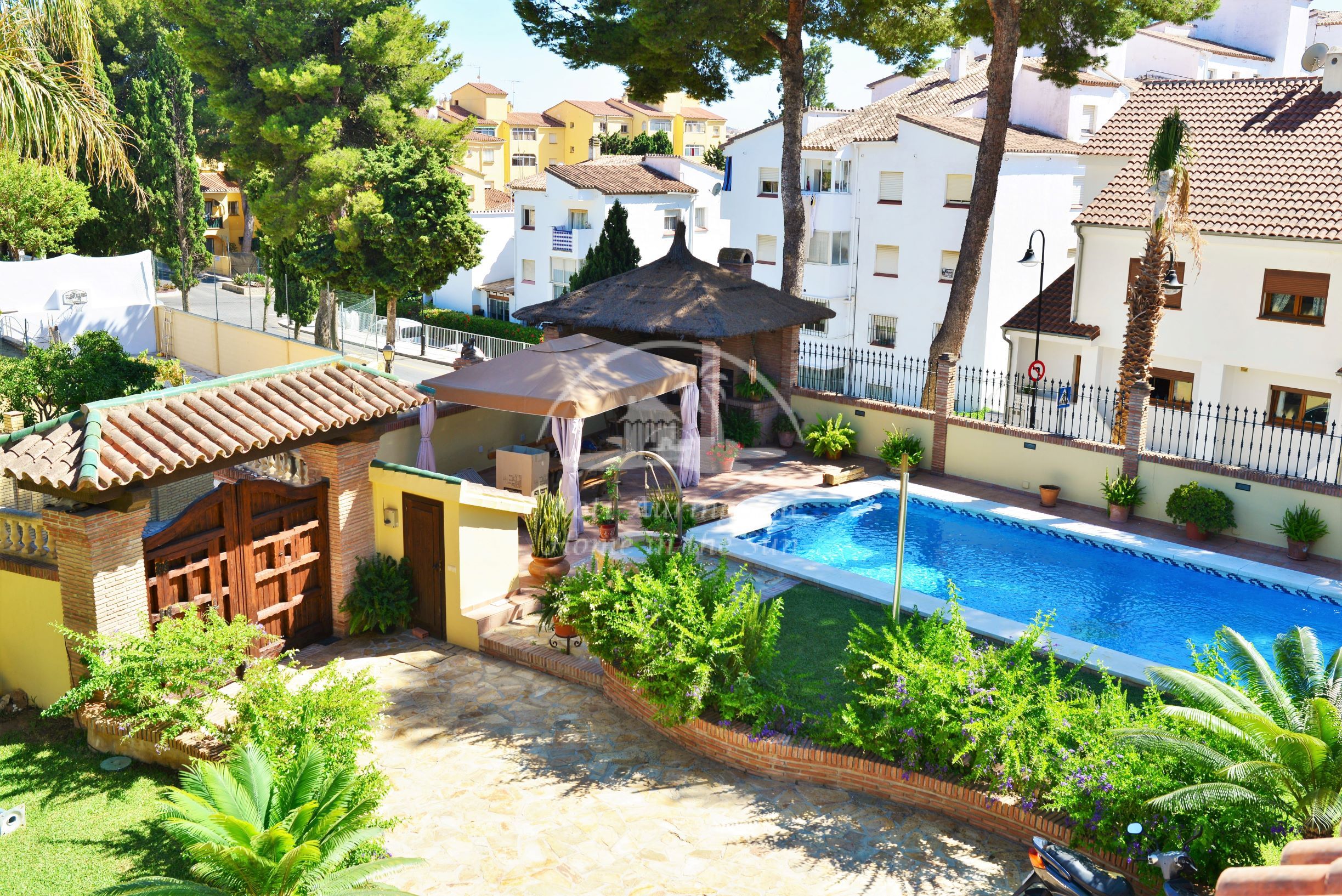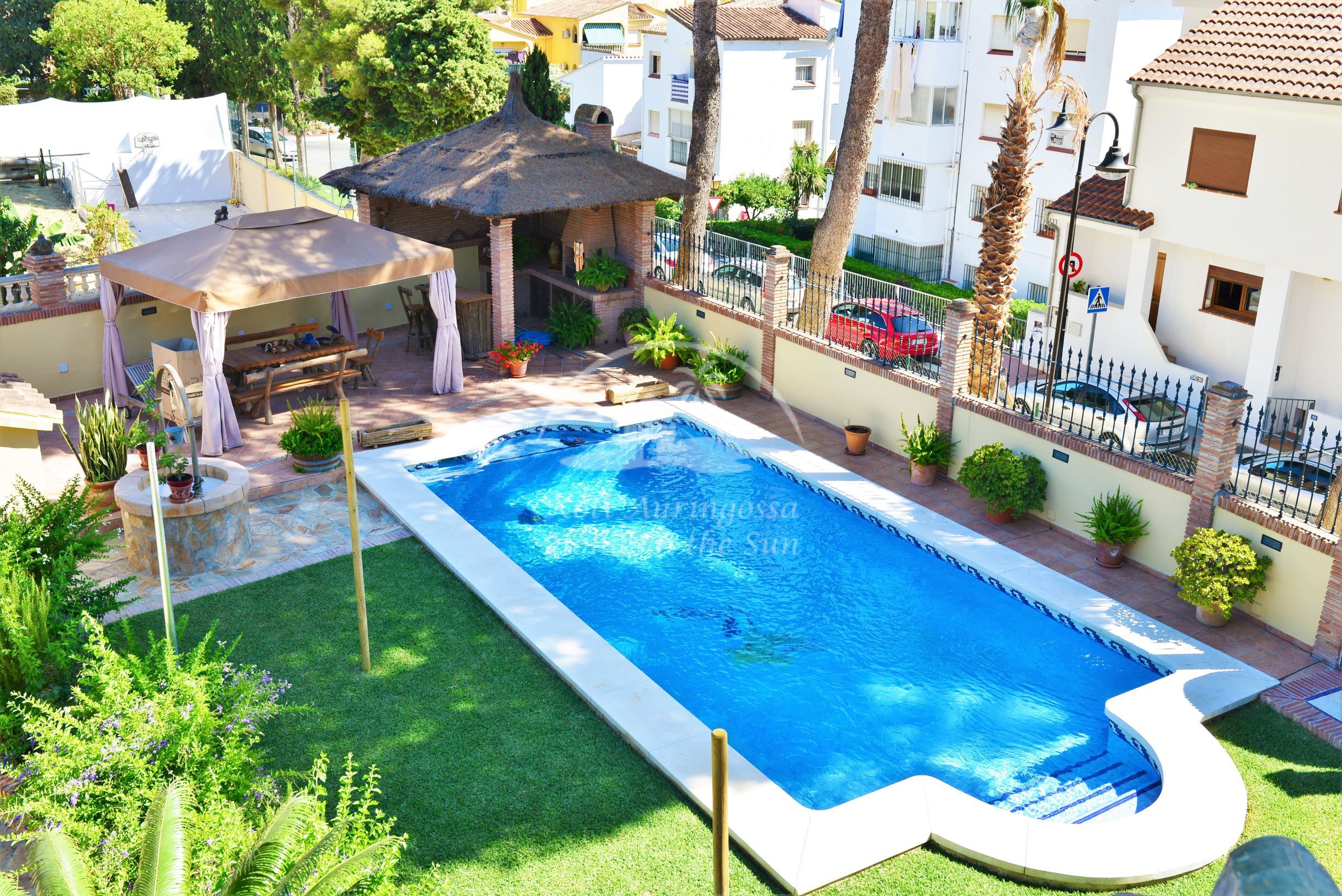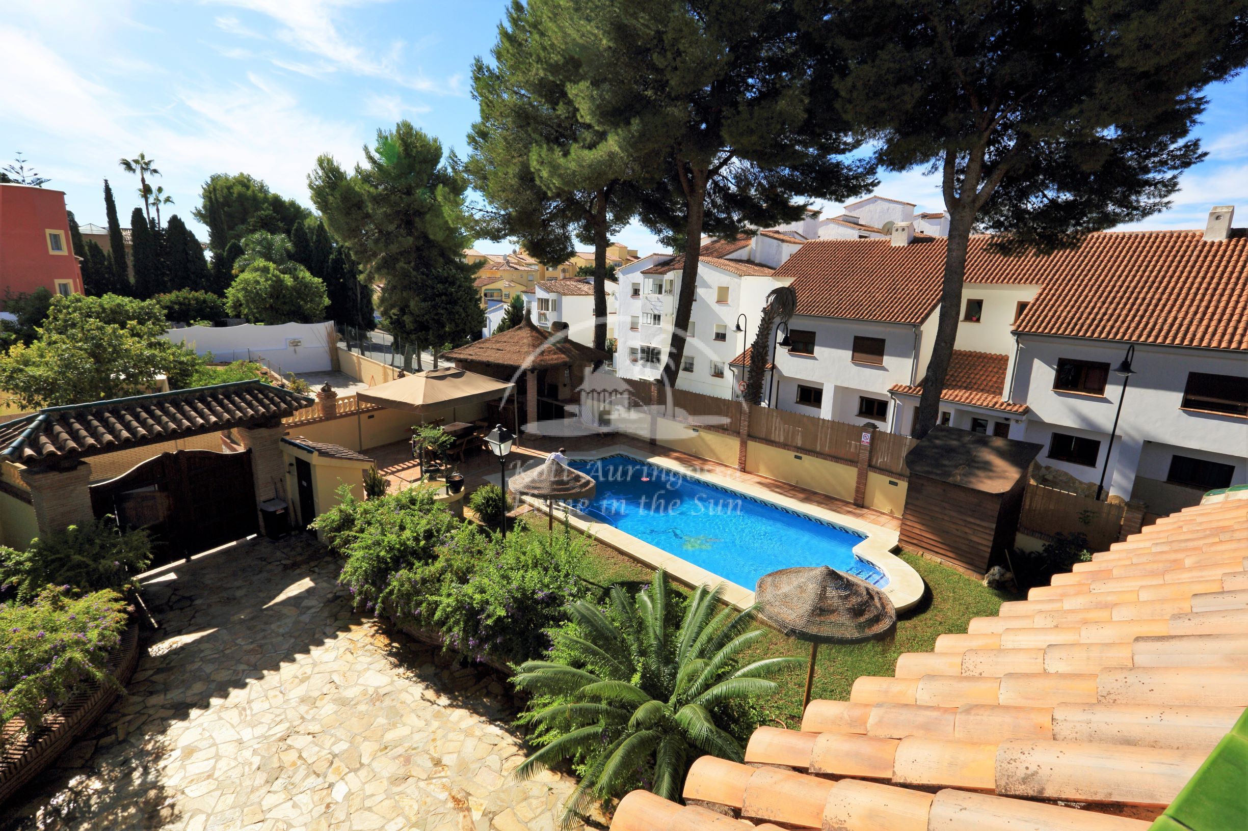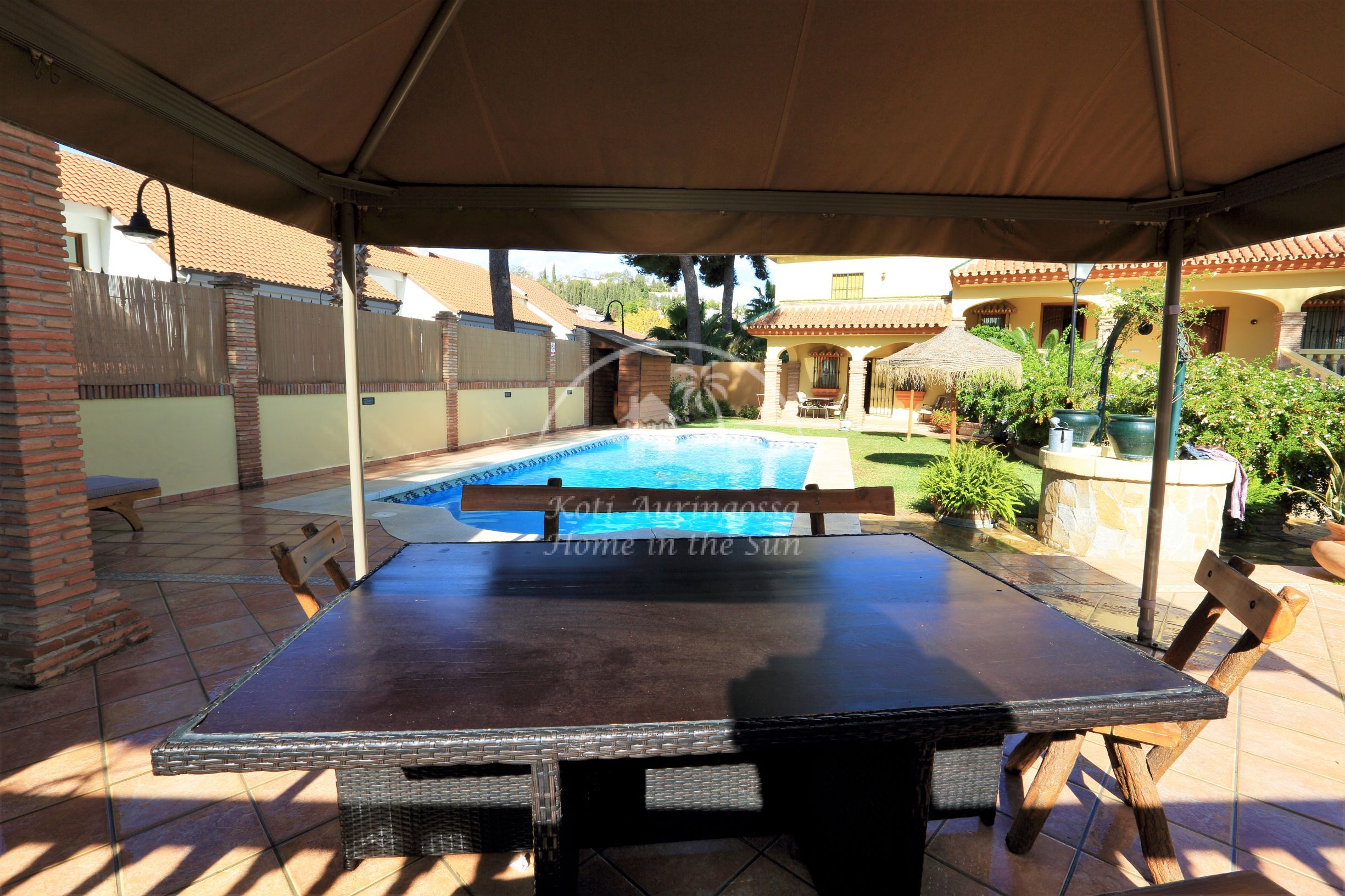 Tässä kauniissa kolmikerroksisessa talossa on 3 erillistä asuntoa, jokaiseen on oma sisäänkäynti. Yläkerrassa on 2 makuuhuoneen asunto. Valoisa olohuone ja erillinen ruokailutila avokeittiön yhteydessä. Olohuoneesta käynti suurelle etelään päin olevalle aurinkoiselle terassille, josta hienot näkymät talon puutarhaan ja uima-altaalle. Ilmastointi / lämpöpumppu olohuoneessa ja päämakuuhuoneessa. Erittäin avara päämakuuhuone ja kylpyhuone jossa on iso poreamme ja suihkukaappi. Tilava vaatehuone toinen pienempi makuuhuone ja kylpyhuone suihkukaapilla. Keskikerroksessa on hieno sisäänkäyntiaula. Avara olohuone ja ruokailutila takalla. Suuri täydellisesti varustettu keittiö jossa on myös astianpesukone, ja toinen iso ruokapöytä. 3 makuuhuonetta. 2 kylpyhuonetta. Tilava katettu etelään päin oleva terassi sisäänkäynnin yhteydessä. Alakerrassa on kiva 1 makuuhuoneen asunto. 1 kylpyhuone. Valoisa olohuone ja ruokailutila. Moderni avokeittiö. Olohuoneesta on käynti omalle terassille ja talon kauniiseen vehreään puutarhaan ja uima-altaalle. Talon edessä on autolle pysäköintipaikka. Reilun kokoinen uima-allas kauniin puutarhan ympäröimänä. Uima-altaan vieressä on hieno ulkokeittiö / grillikatos. Fuengirolan keskustaan noin 4 km.