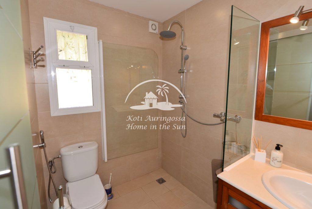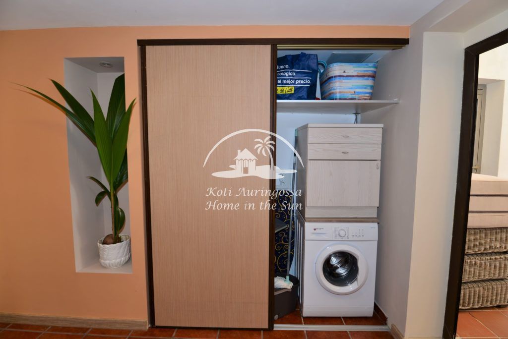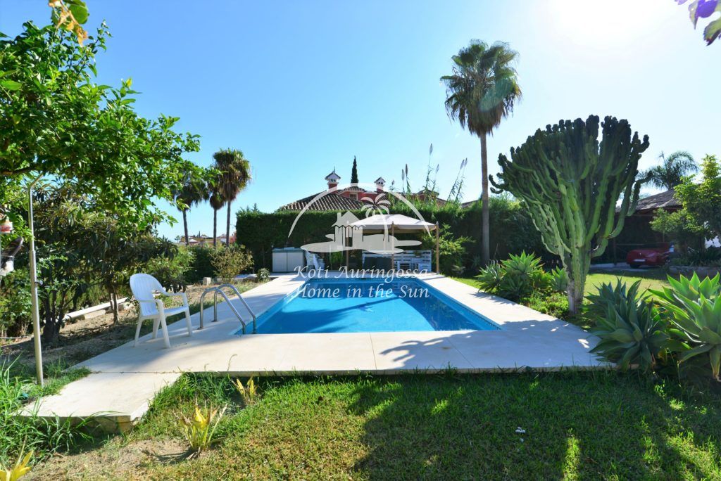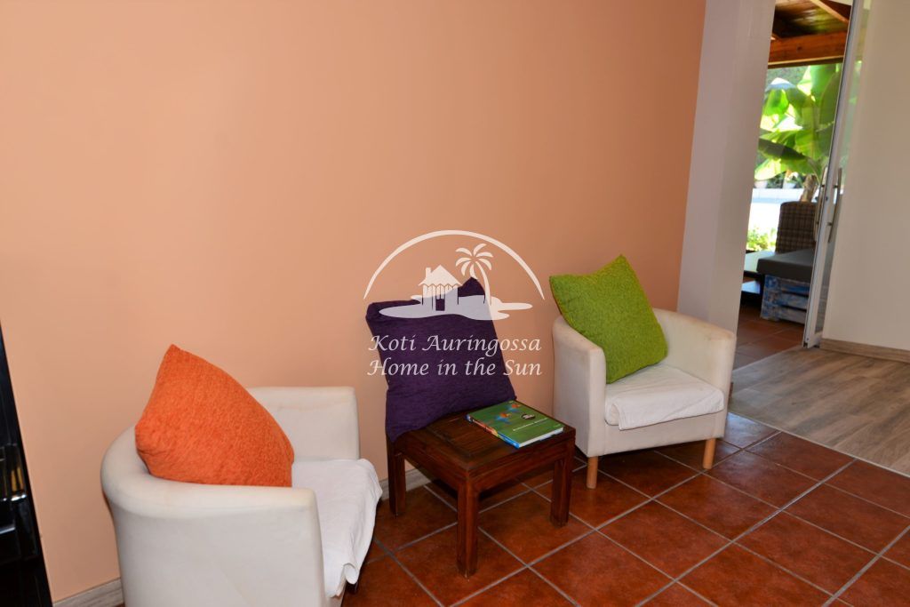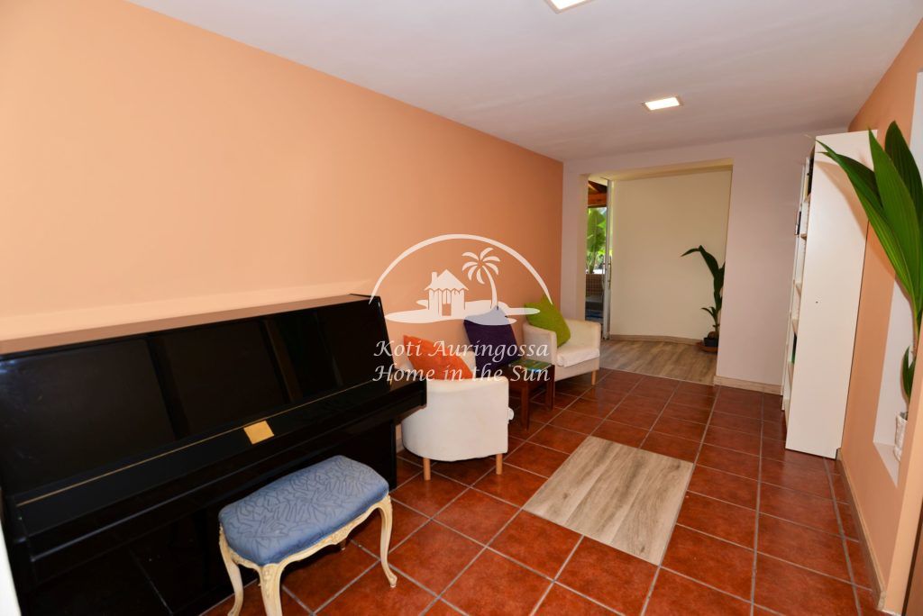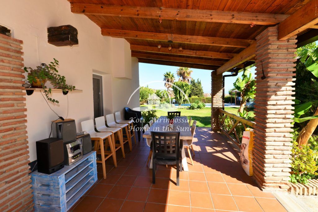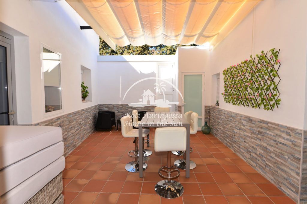 Sisään käynnin yhteydessä on kiva katettu sisäpatio ja oleskelutila. Täysin aidattu tontti.