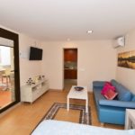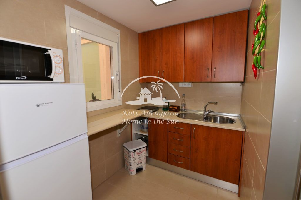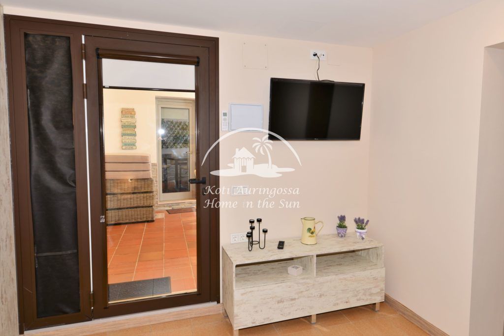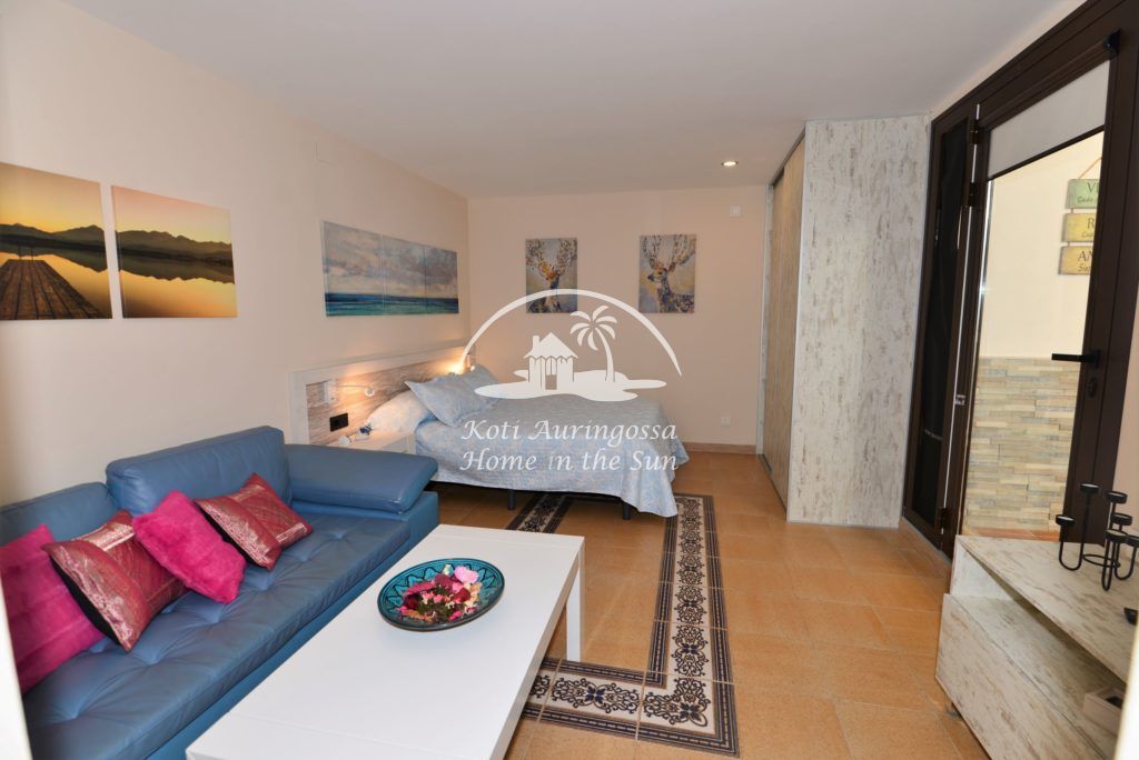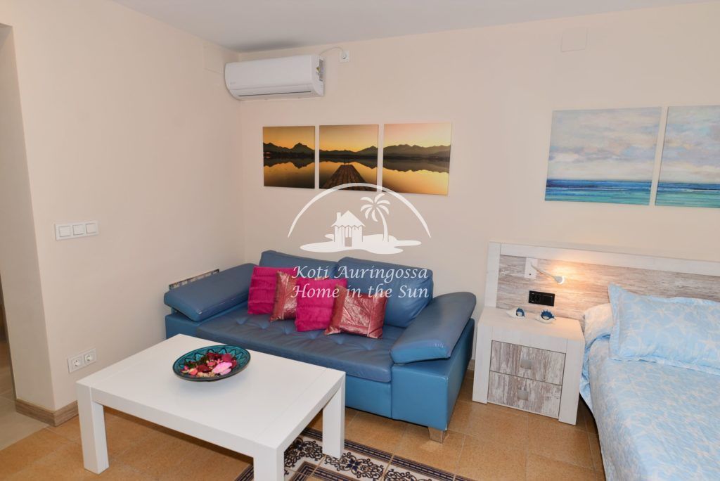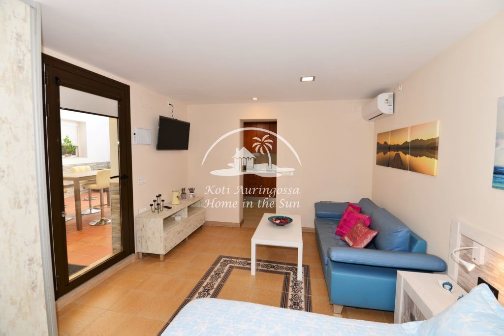 Valoisa olohuone / makuuhuone. Ilmastointi lämpöpumppu. Erillinen keittiö jossa kaikki toimii sähköllä.
