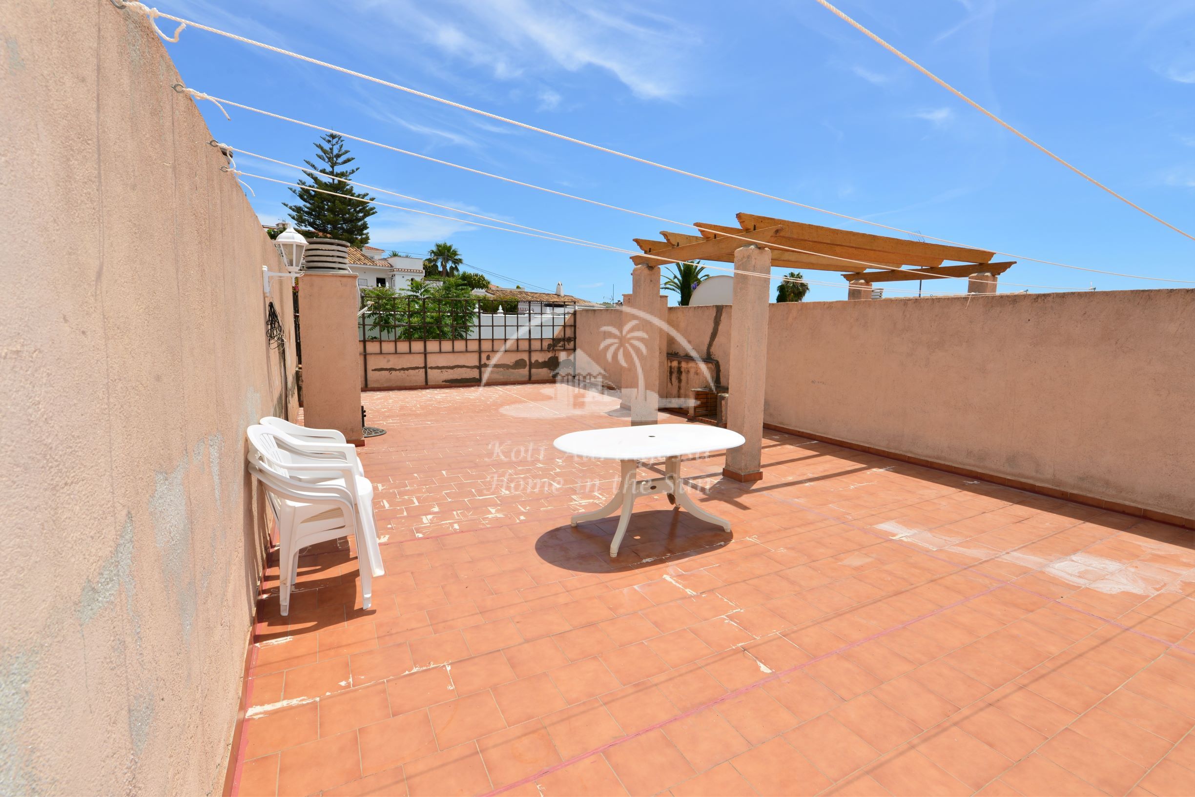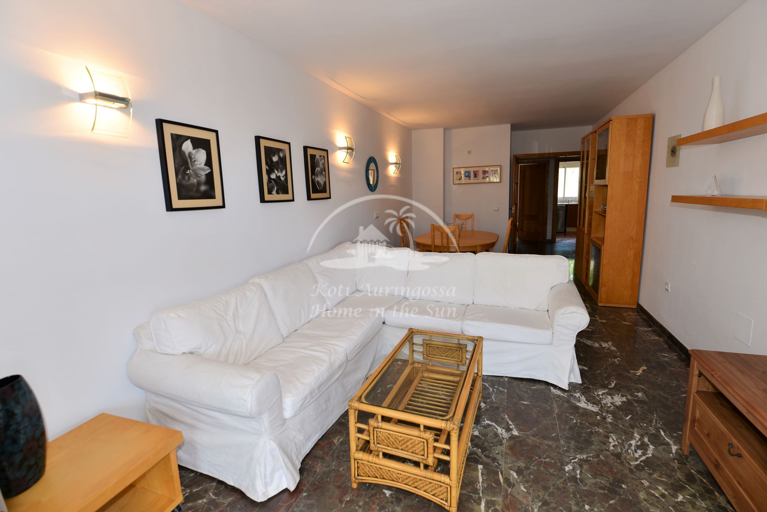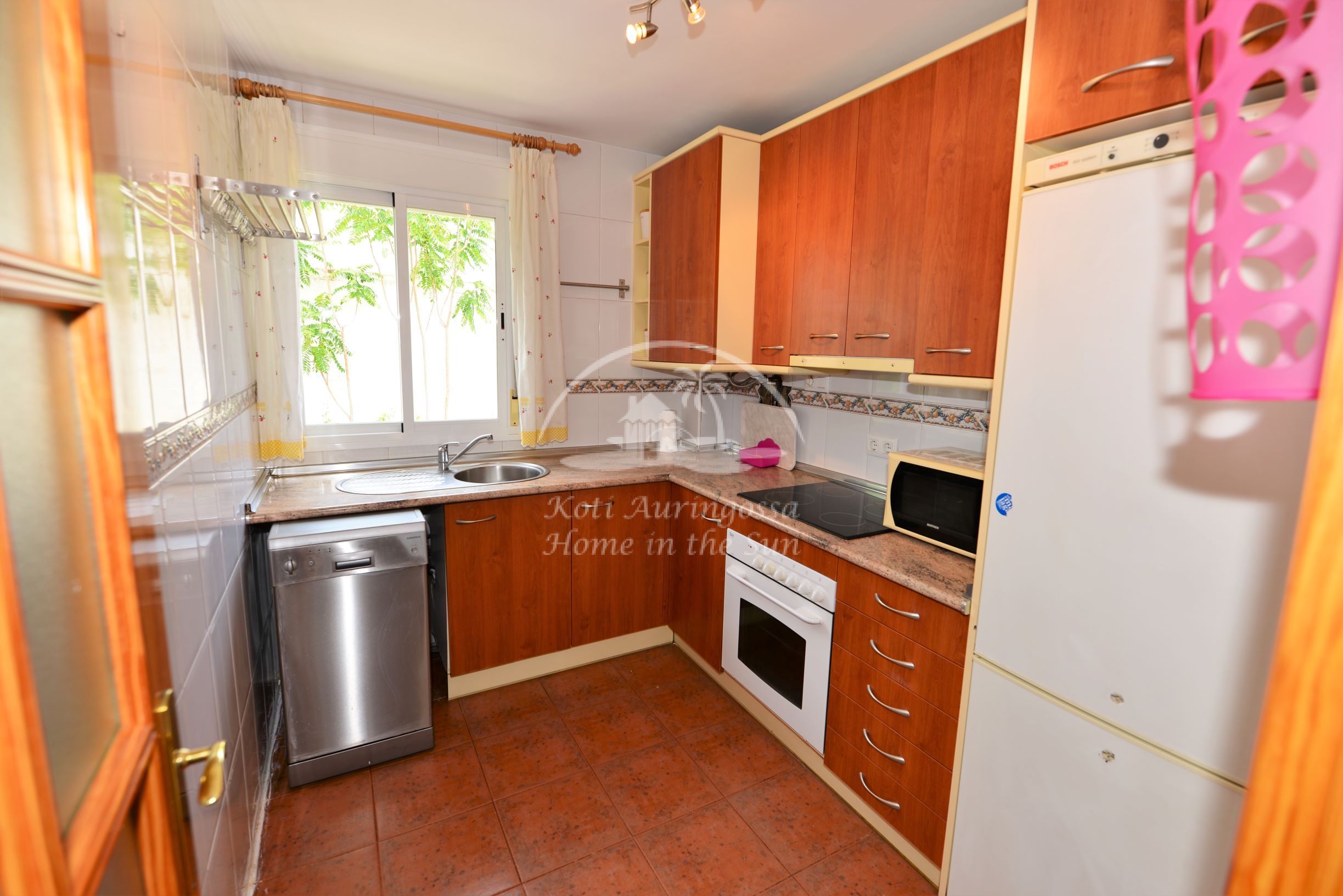 Asunto on kodikkaasti kalustettu ja sisustettu. Avara valoisa olohuone ja ruokailutila. Olohuoneesta käynti aamu aurinkoiselle itään päin olevalle terassille, josta on kivat näkymät taloyhtiön suurelle uima-altaalle, tennis kentälle ja merelle. Terassilta on portaat yläkerran suurelle katto terassille, jossa voi grillata ja nauttia auringosta koko päivän. Täydellisesti varustettu keittiö, jossa on myös astianpesukone. 2 makuuhuonetta. 2 kylpyhuonetta, yksi kylpyammeella ja toinen suihkulla. Olohuoneessa ja molemmissa makuuhuoneissa on ilmastointi lämpöpumppu. Taloyhtiössä on suuri uima-allas kauniin vehreän nurmikko puutarhan ympäröimänä, sekä 2 tenniskenttää. Parkkipaikka taloyhtiön autotallissa. Erittäin rauhallinen asuinalue ja hyvin hoidettu taloyhtiö.