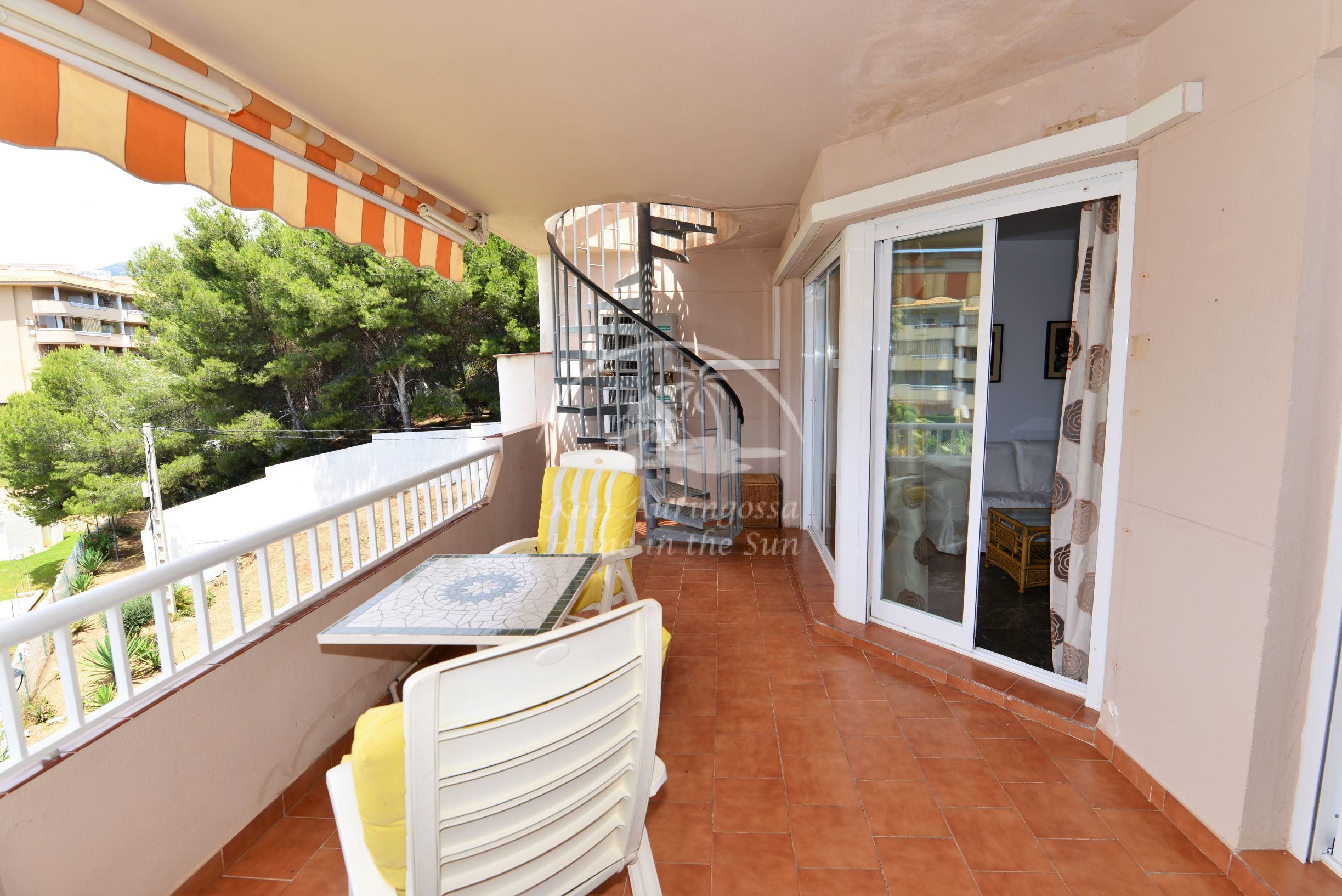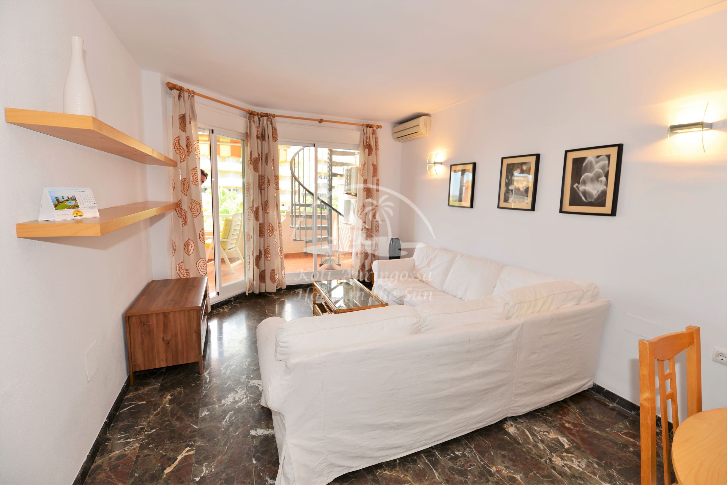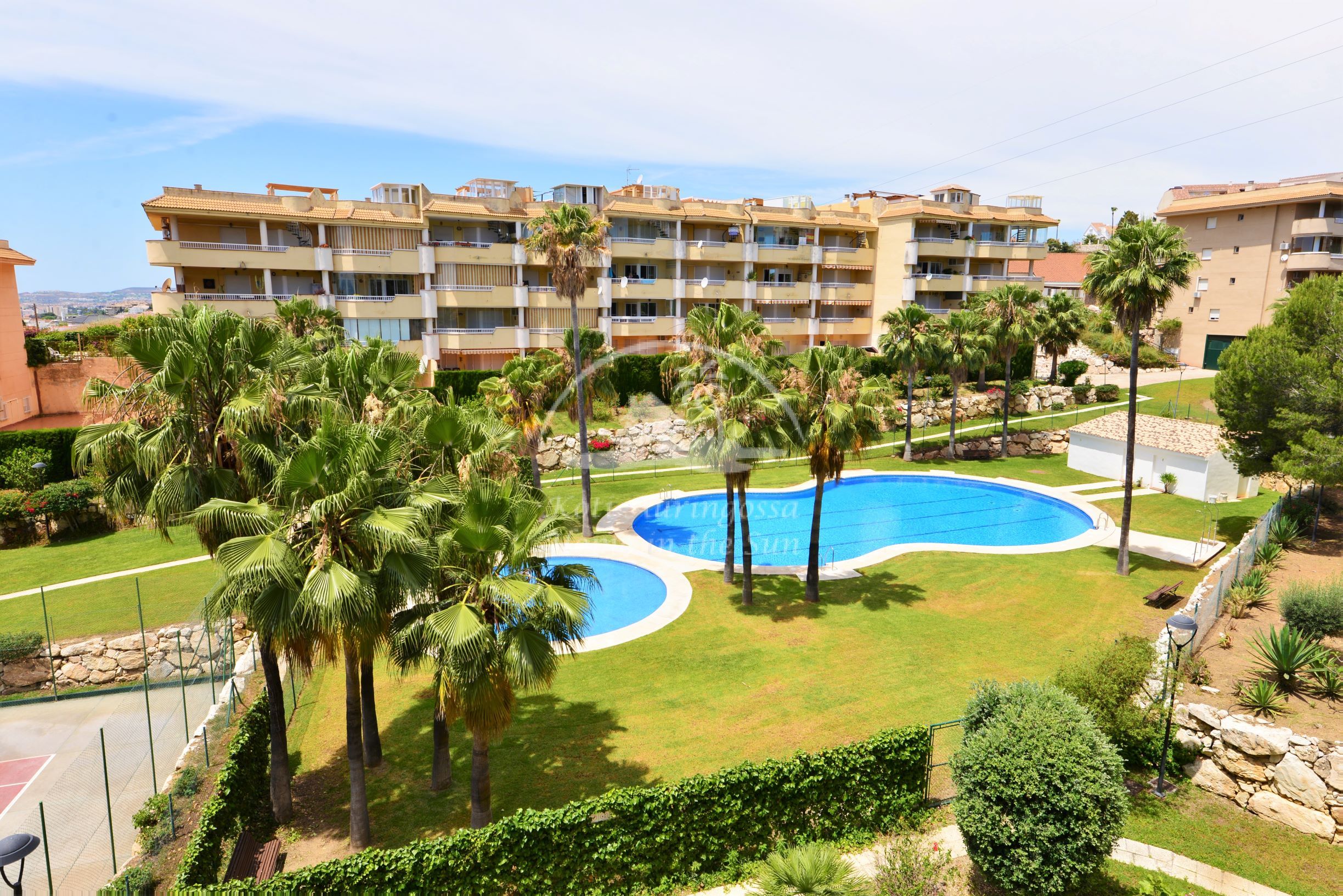Asunto on kodikkaasti kalustettu ja sisustettu. Avara valoisa olohuone ja ruokailutila. Olohuoneesta käynti aamu aurinkoiselle itään päin olevalle terassille, josta on kivat näkymät taloyhtiön suurelle uima-altaalle, tennis kentälle ja merelle. Terassilta on portaat yläkerran suurelle katto terassille, jossa voi grillata ja nauttia auringosta koko päivän. Täydellisesti varustettu keittiö, jossa on myös astianpesukone. 2 makuuhuonetta. 2 kylpyhuonetta, yksi kylpyammeella ja toinen suihkulla. Olohuoneessa ja molemmissa makuuhuoneissa on ilmastointi lämpöpumppu. Taloyhtiössä on suuri uima-allas kauniin vehreän nurmikko puutarhan ympäröimänä, sekä 2 tenniskenttää. Parkkipaikka taloyhtiön autotallissa. Erittäin rauhallinen asuinalue ja hyvin hoidettu taloyhtiö.