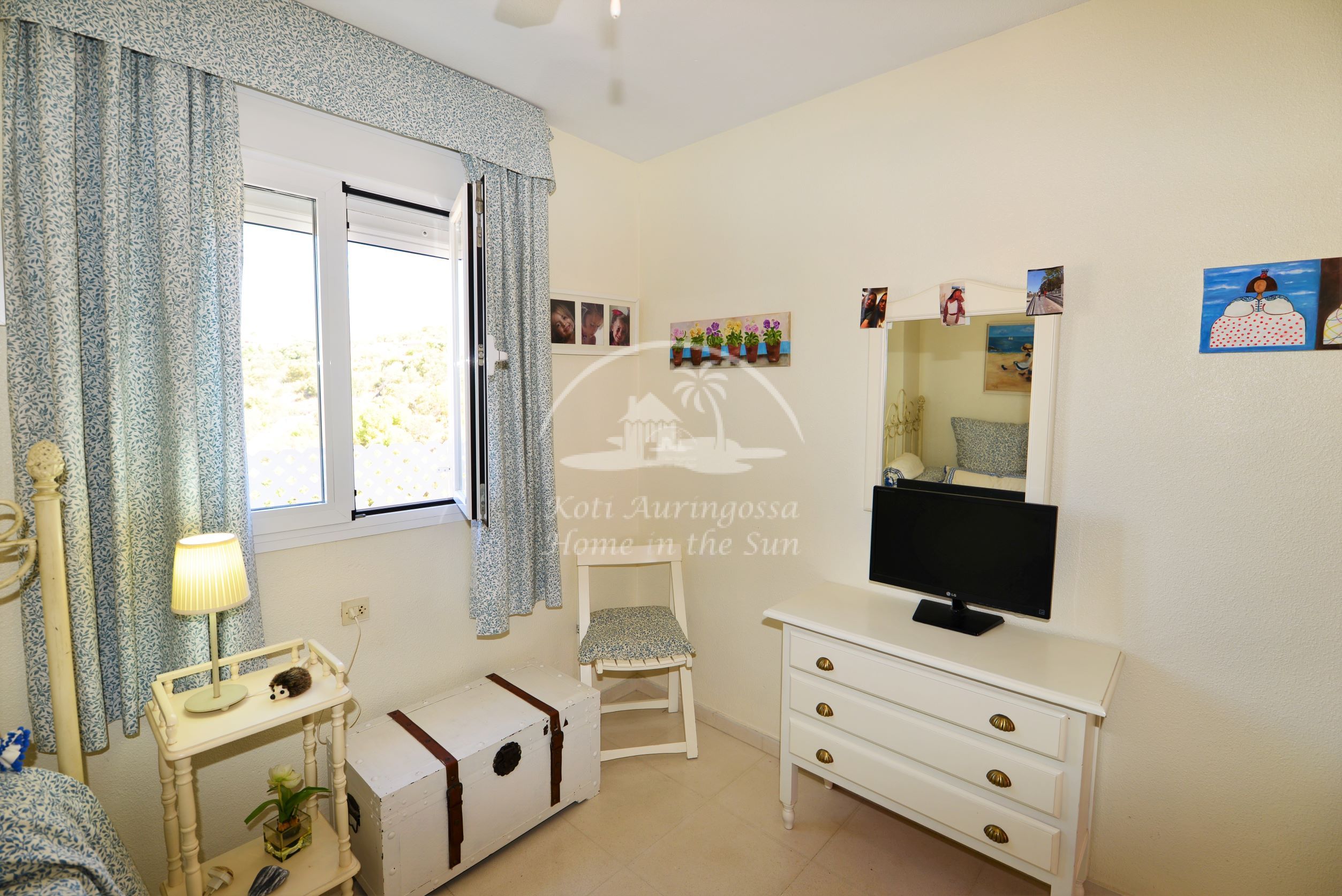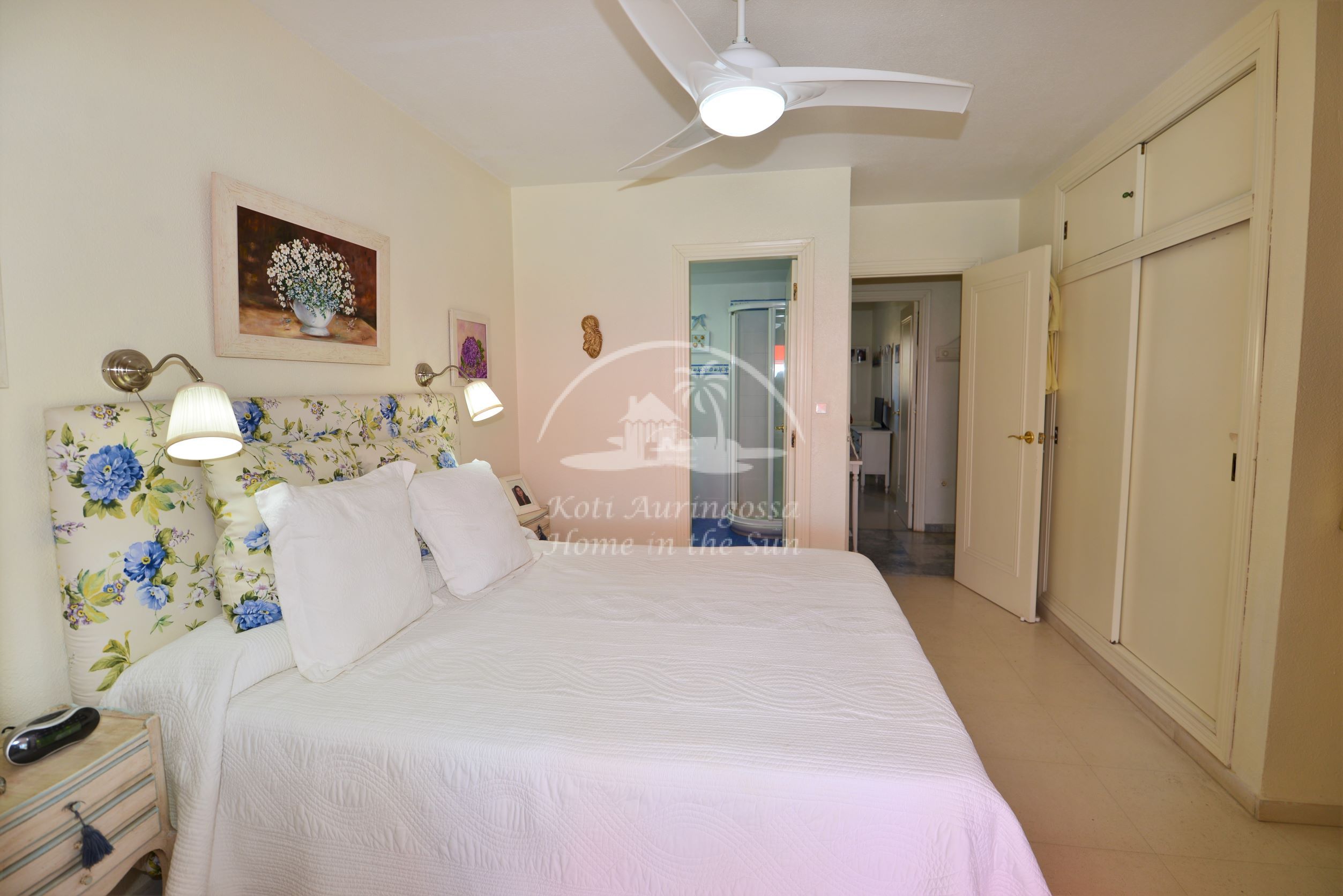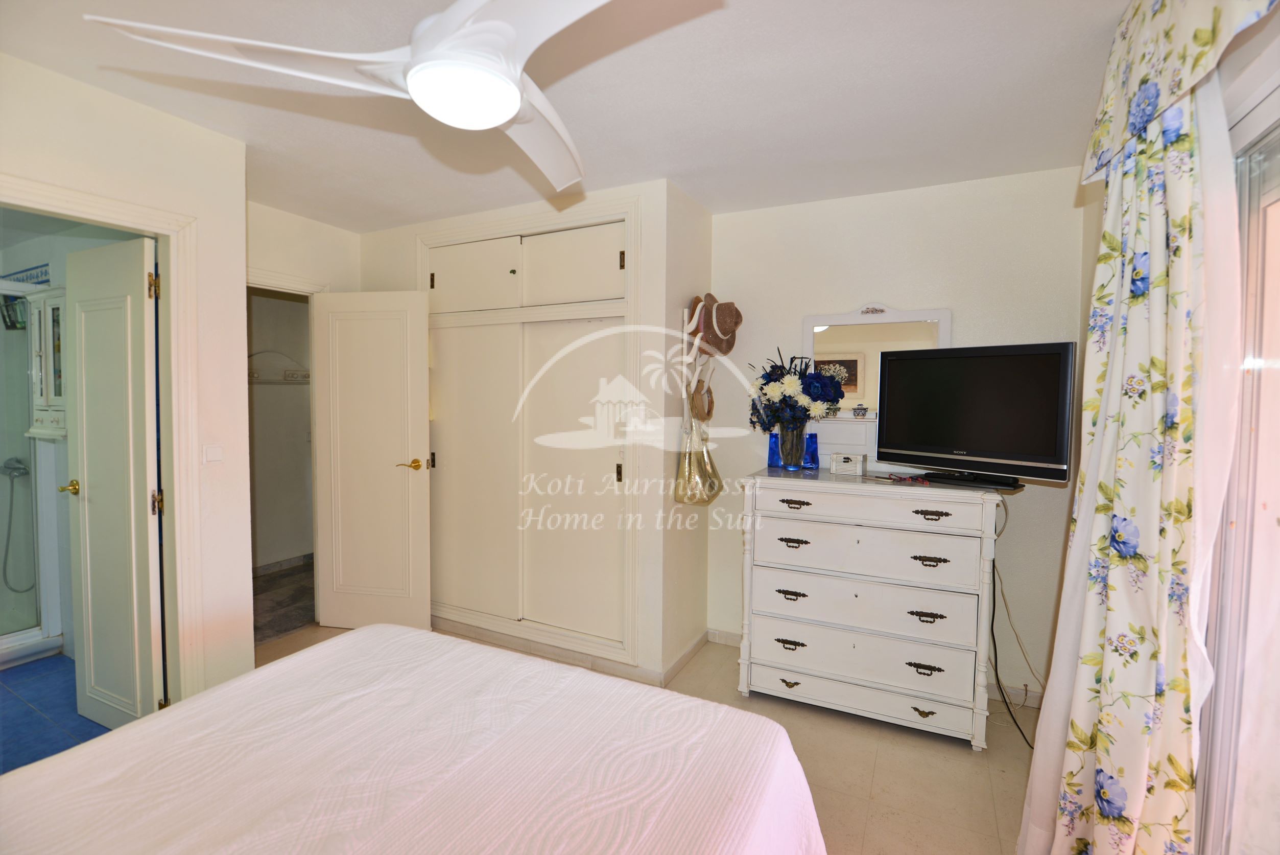 Tämä asunto on harvinaisen kauniisti ja kodikkaasti kalustettu ja sisustettu, siinä on kodin tuntua heti ensi näkemällä. Omistaja rouva harrastaa öljyväri maalausta, ja asunnon seinillä on runsaasti hänen kauniita maalauksia, jotka tuovat mukavasti kodikasta tunnelmaa. Avara kaksi osainen valoisa olohuone ja ruokailutila, olohuoneesta ja päämakuuhuoneesta on käynti etelään päin olevalle aamu aurinkoiselle terassille. Terassilta on kauniit näkymät merelle ja taloyhtiön vehreään puutarhaan ja uima-altaalle. Täydellisesti varustettu moderni keittiö, jossa on myös astianpesukone. 2 makuuhuonetta. 2 kylpyhuonetta. Ilmastointi lämpöpumppu olohuoneessa ja päämakuuhuoneessa. Nopea valokuitu wifi internet yhteys valmiina, joka ei sisälly vuokraan. Taloyhtiössä on uima-allas kauniin vehreän puutarhan ympäröimänä. Parkkipaikka taloyhtiön paikoitusalueella. Merenrantaan 200 metriä.