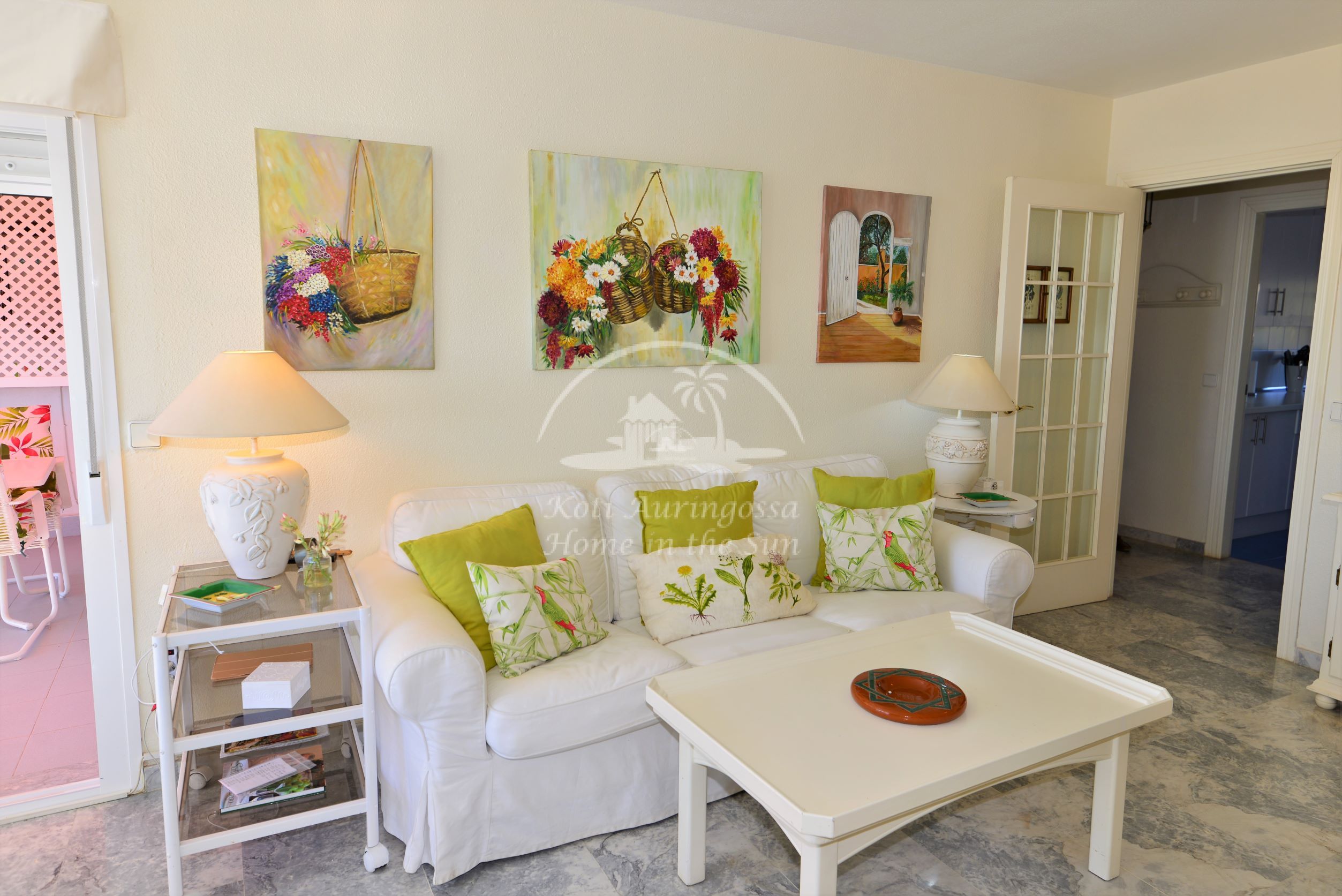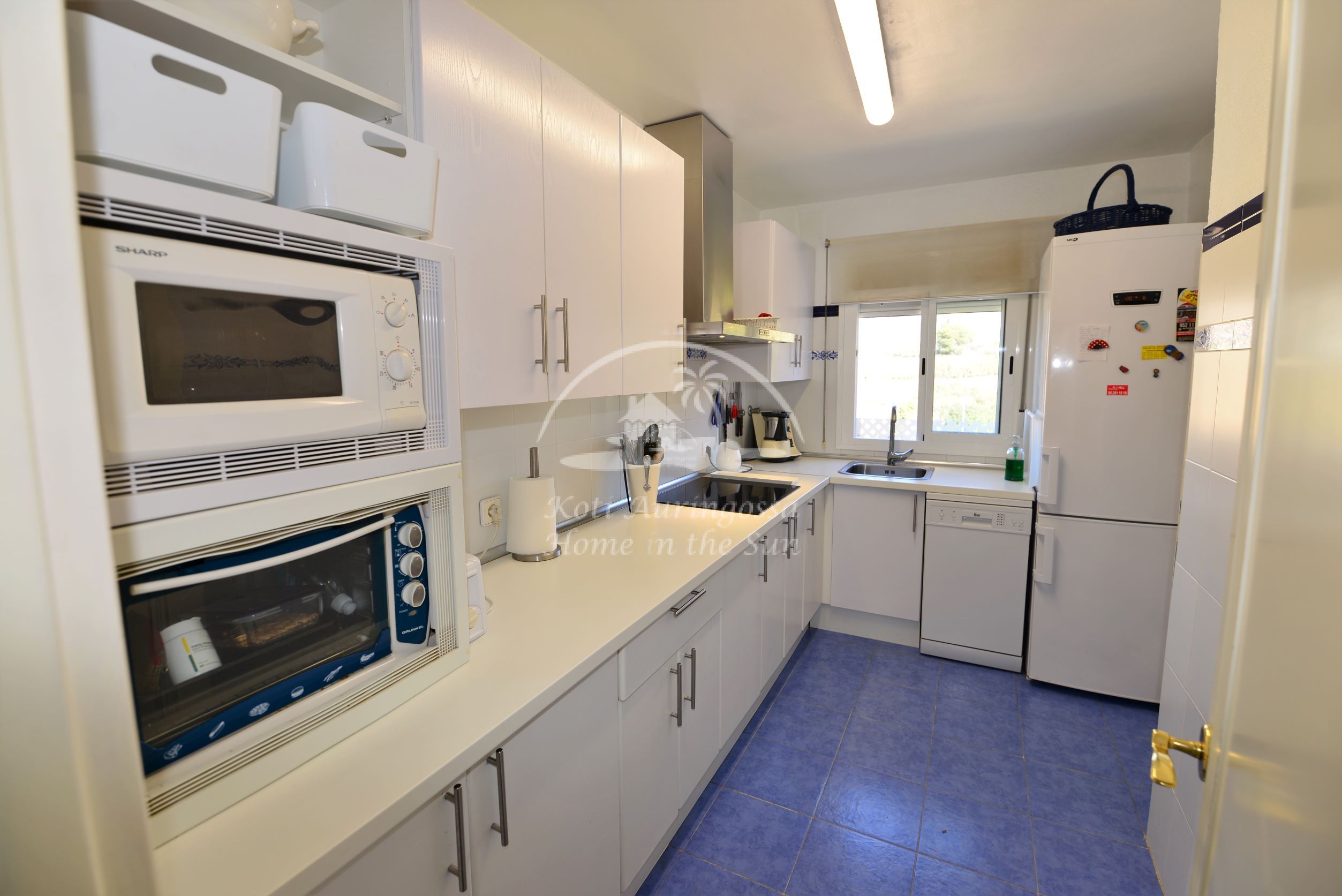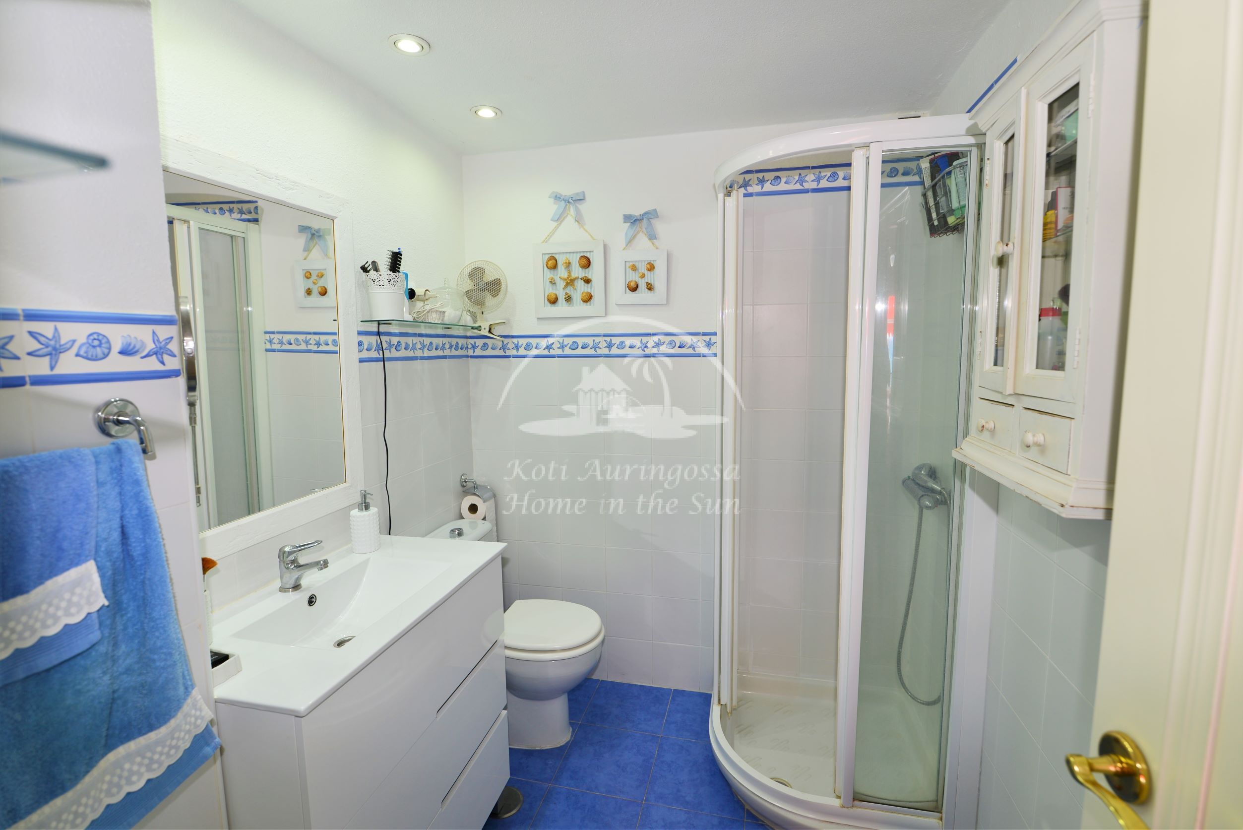 Tämä asunto on harvinaisen kauniisti ja kodikkaasti kalustettu ja sisustettu, siinä on kodin tuntua heti ensi näkemällä. Omistaja rouva harrastaa öljyväri maalausta, ja asunnon seinillä on runsaasti hänen kauniita maalauksia, jotka tuovat mukavasti kodikasta tunnelmaa. Avara kaksi osainen valoisa olohuone ja ruokailutila, olohuoneesta ja päämakuuhuoneesta on käynti etelään päin olevalle aamu aurinkoiselle terassille. Terassilta on kauniit näkymät merelle ja taloyhtiön vehreään puutarhaan ja uima-altaalle. Täydellisesti varustettu moderni keittiö, jossa on myös astianpesukone. 2 makuuhuonetta. 2 kylpyhuonetta. Ilmastointi lämpöpumppu olohuoneessa ja päämakuuhuoneessa. Nopea valokuitu wifi internet yhteys valmiina, joka ei sisälly vuokraan. Taloyhtiössä on uima-allas kauniin vehreän puutarhan ympäröimänä. Parkkipaikka taloyhtiön paikoitusalueella. Merenrantaan 200 metriä.