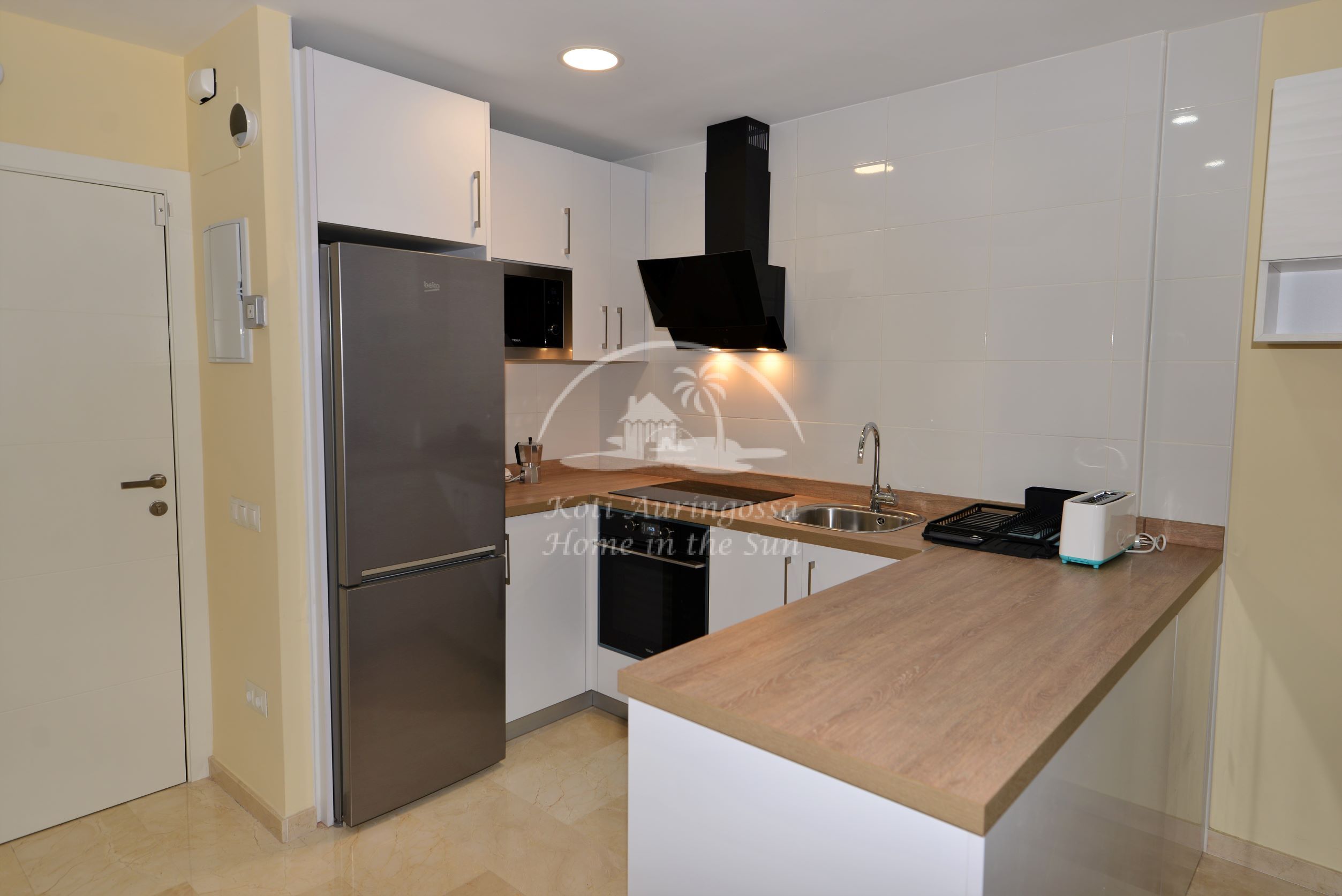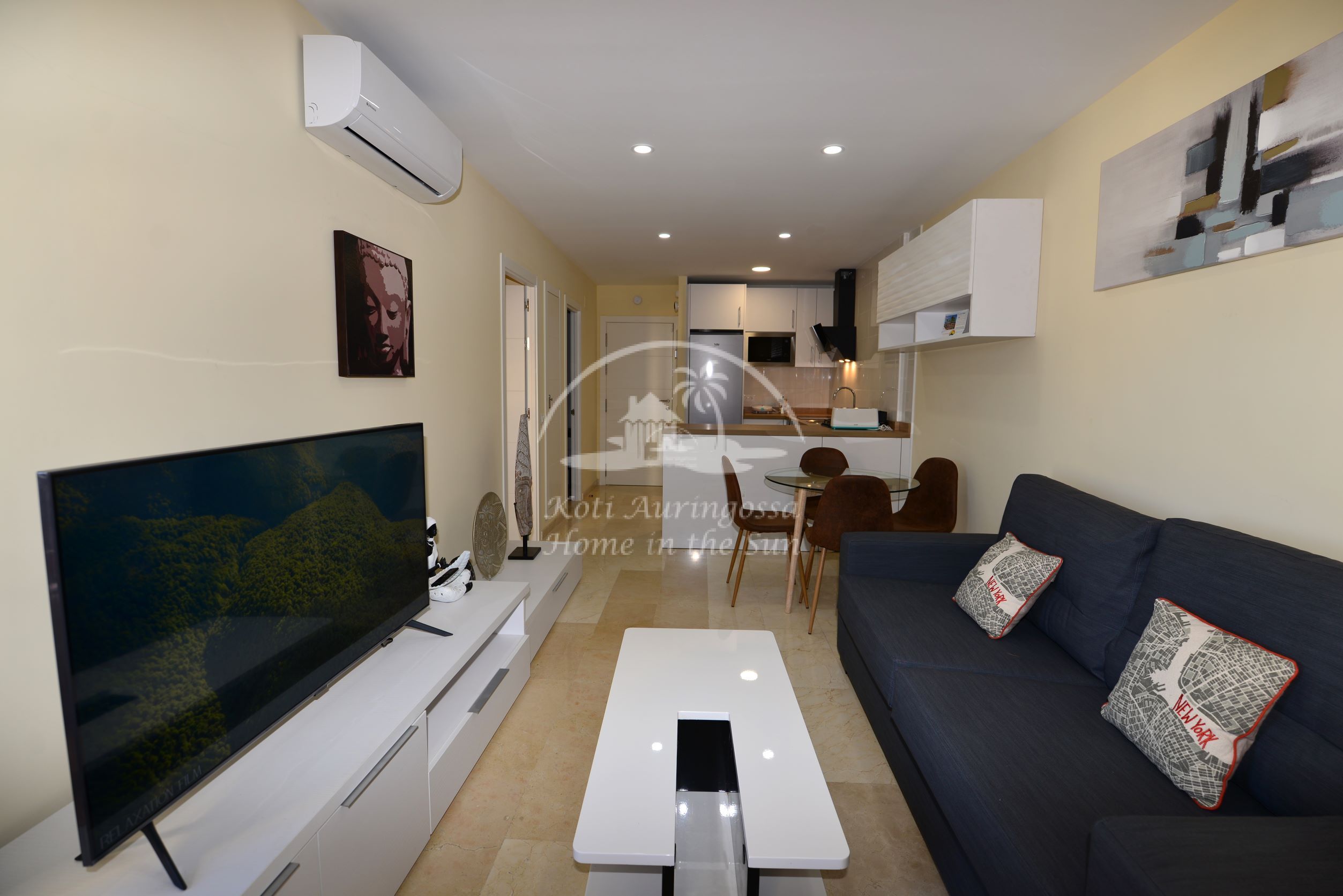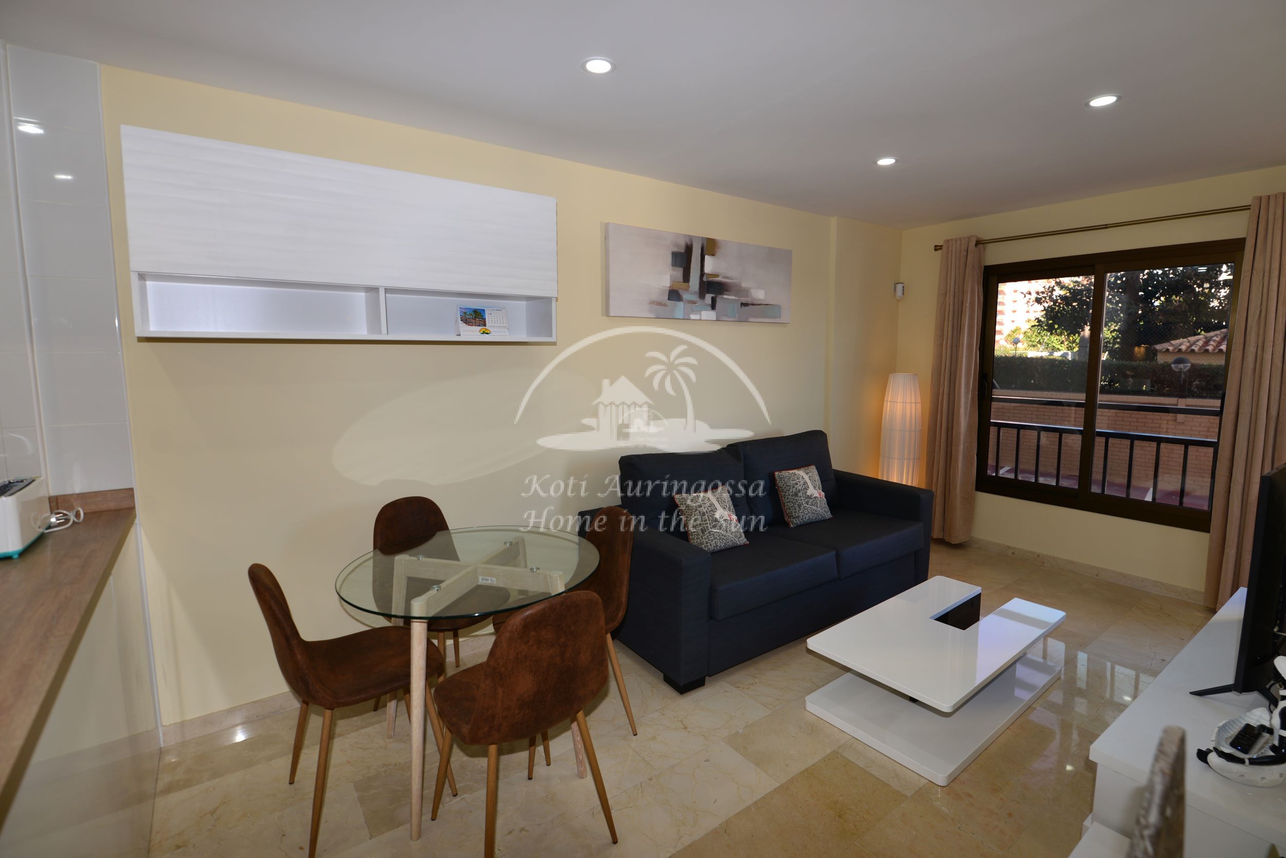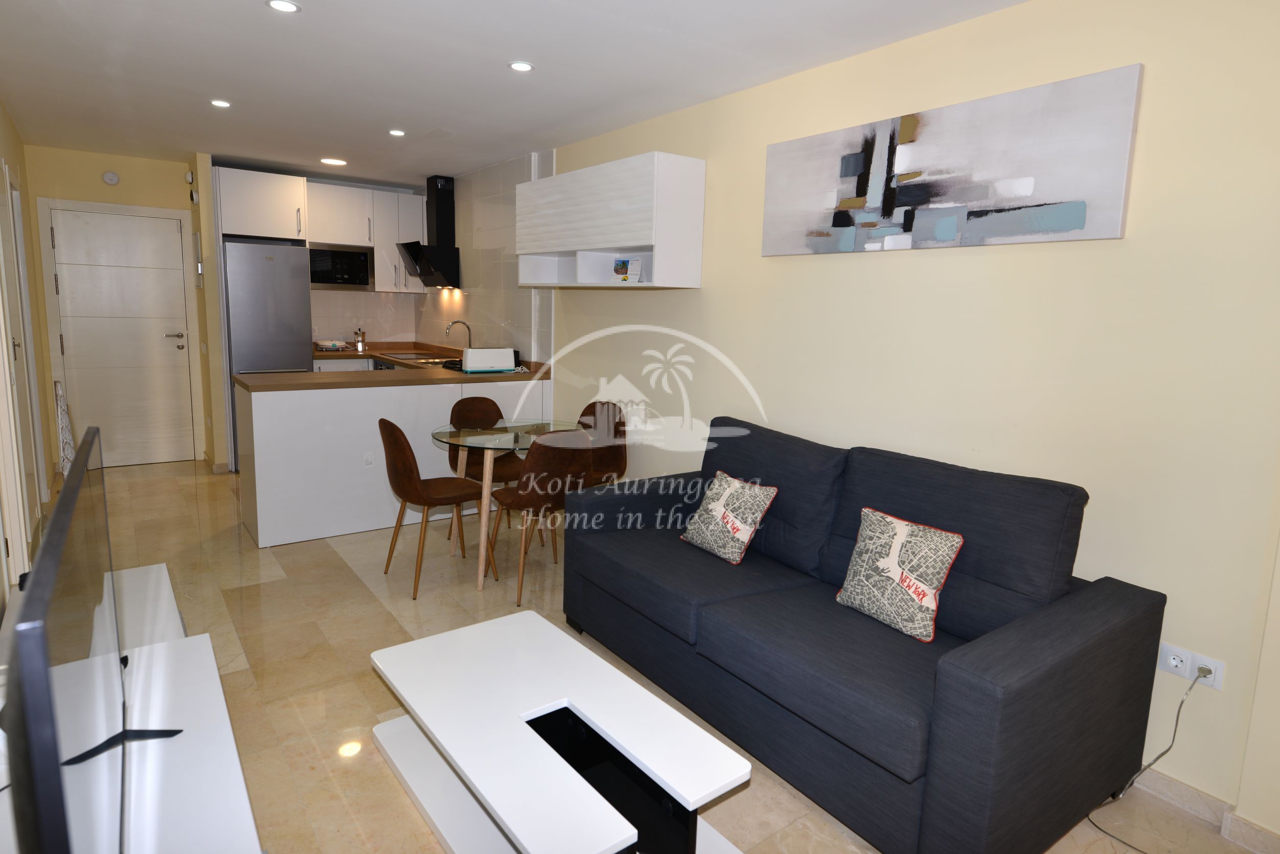 Asunto on kauttaaltaan remontoitu ja uusittu. Valoisa olohuone ja ruokailutila. Olohuoneesta on käynti aamu aurinkoiselle itään päin olevalle terassille. Terassilta kauniit näkymät merelle ja rantakadulle. Amerikkalainen moderni keittiö, jossa on myös astianpesukone. 1 makuuhuone parivuoteella.