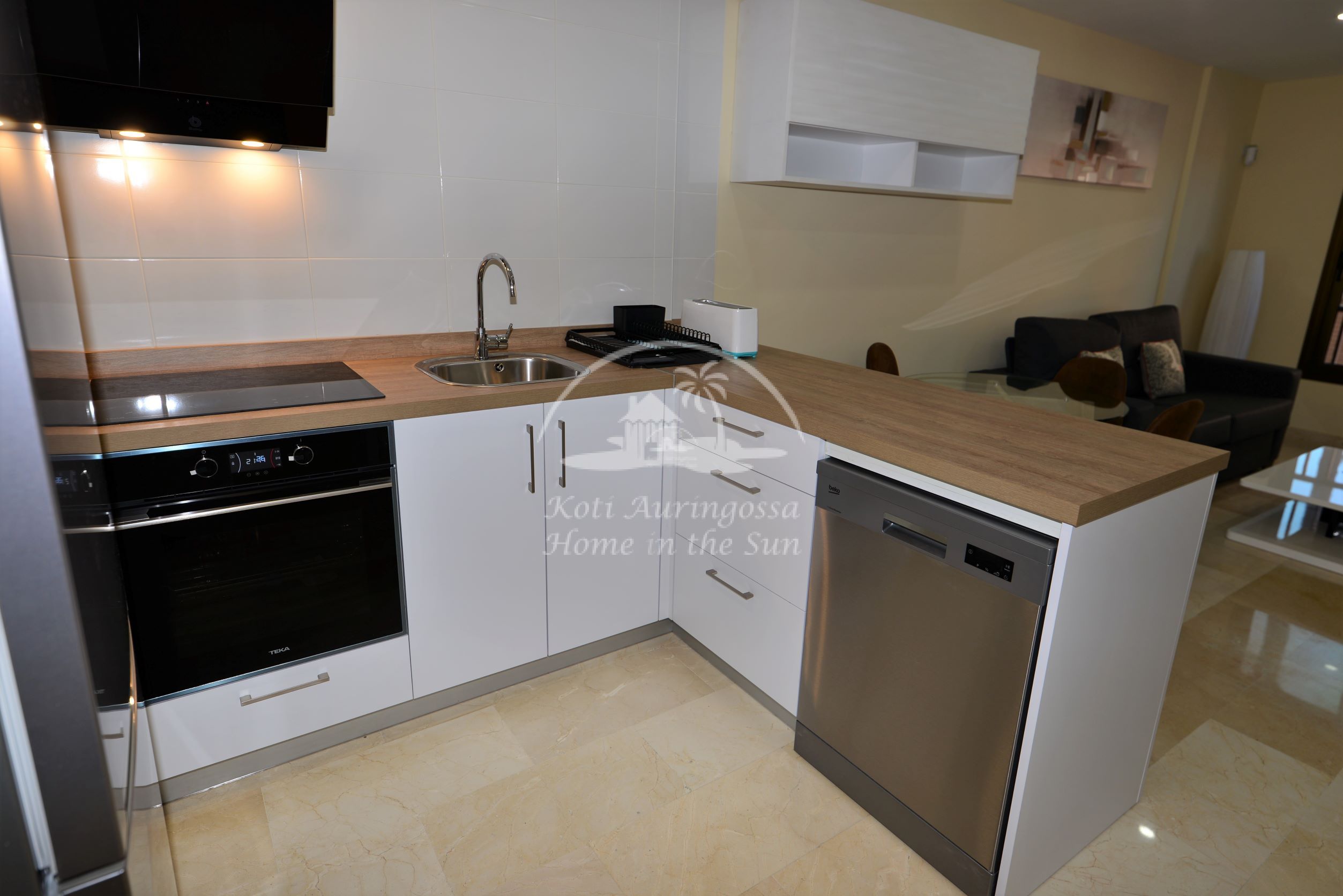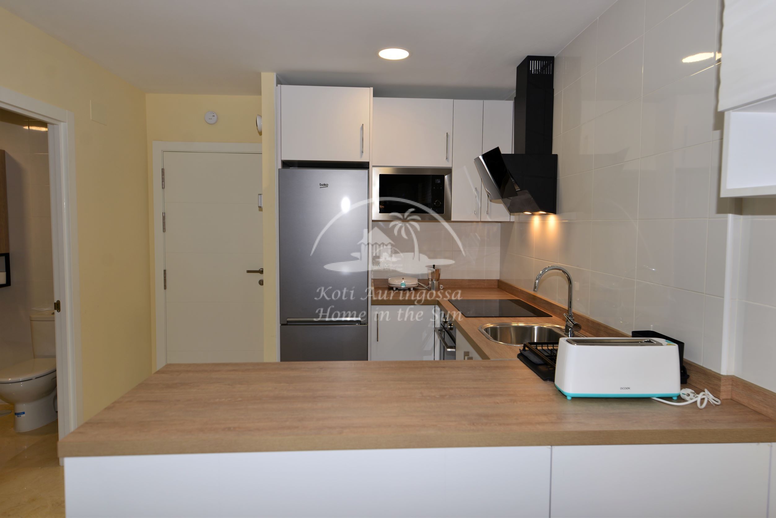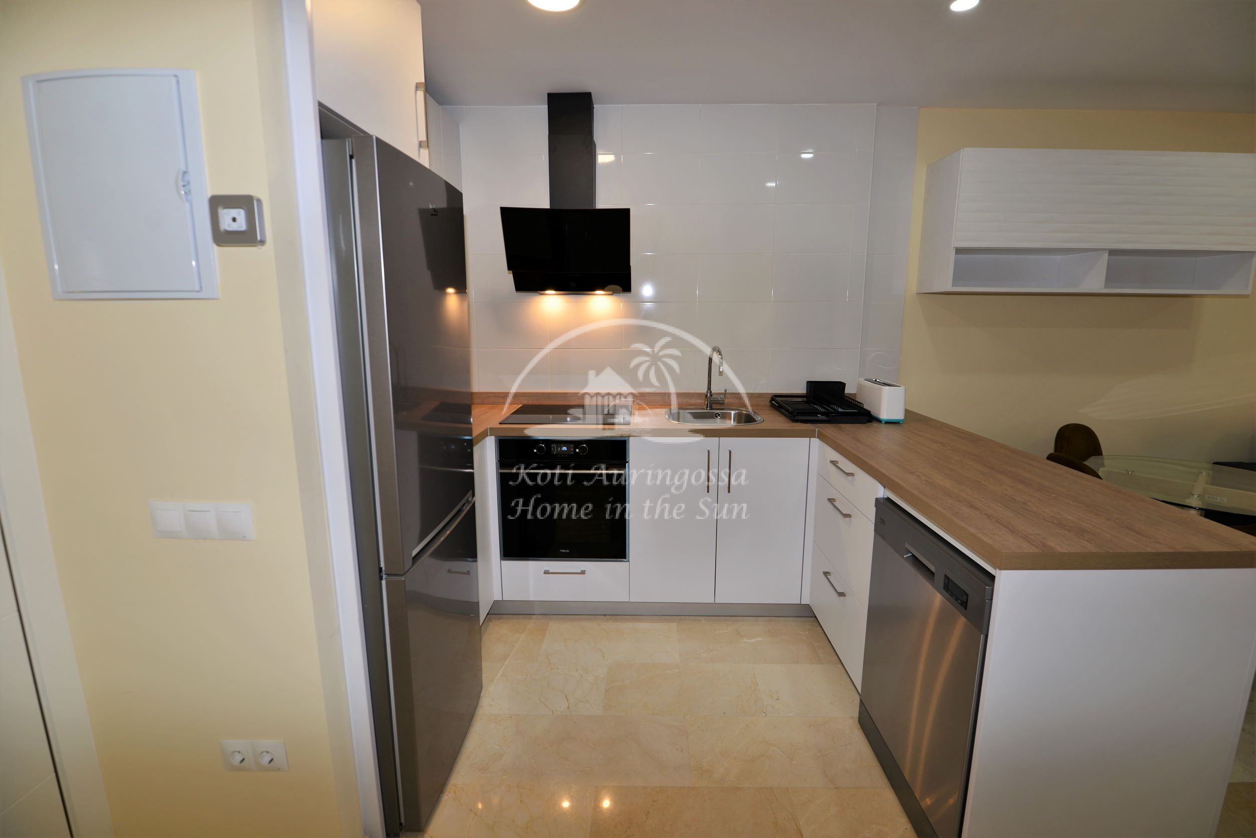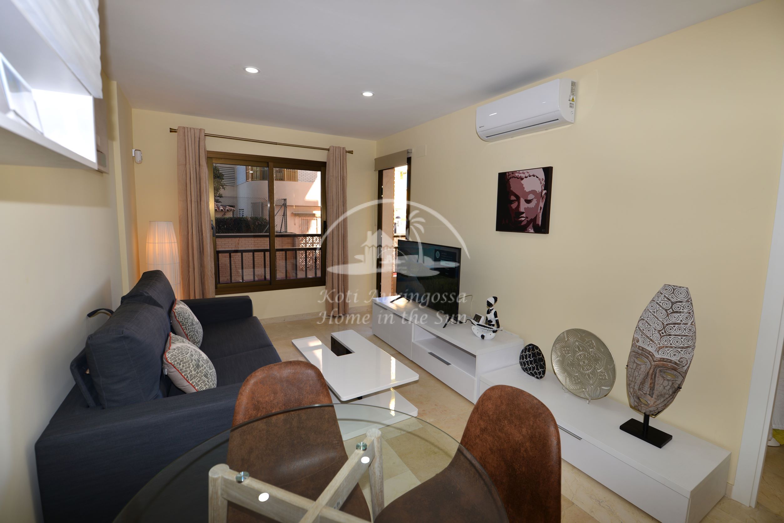 Asunto on kauttaaltaan remontoitu ja uusittu. Valoisa olohuone ja ruokailutila. Olohuoneesta on käynti aamu aurinkoiselle itään päin olevalle terassille. Terassilta kauniit näkymät merelle ja rantakadulle. Amerikkalainen moderni keittiö, jossa on myös astianpesukone. 1 makuuhuone parivuoteella.