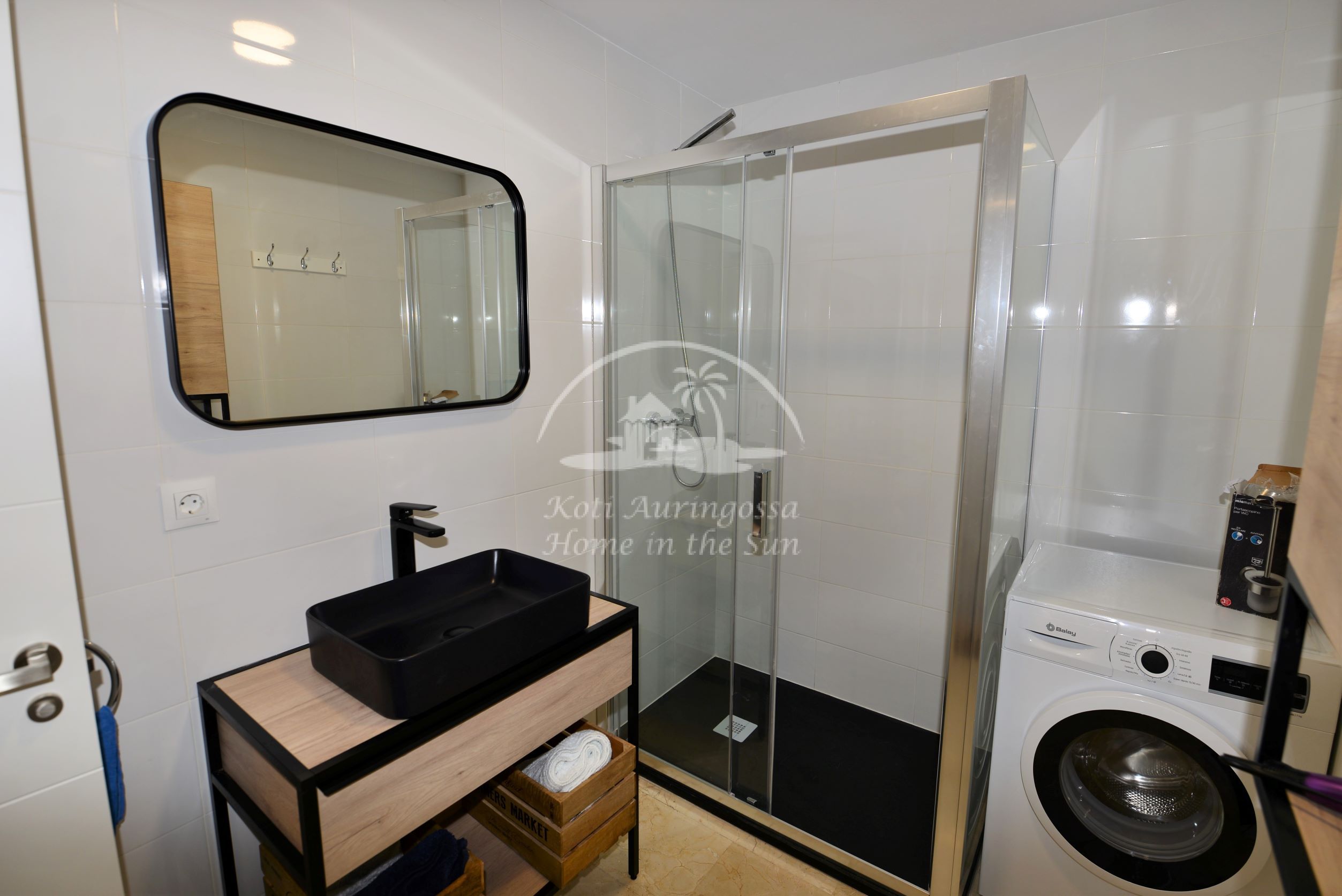 1 kylpyhuone reilun kokoisella suihkulla. Ilmastointi lämpöpumppu olohuoneessa ja makuuhuoneessa. Asunnossa on valmiina nopea valokuitu wifi internet yhteys. Taloyhtiössä on uima-allas, joka on auki Toukokuusta Syyskuun loppuun. Kaikki palvelut lähellä. Merenrantaan 50 metriä.