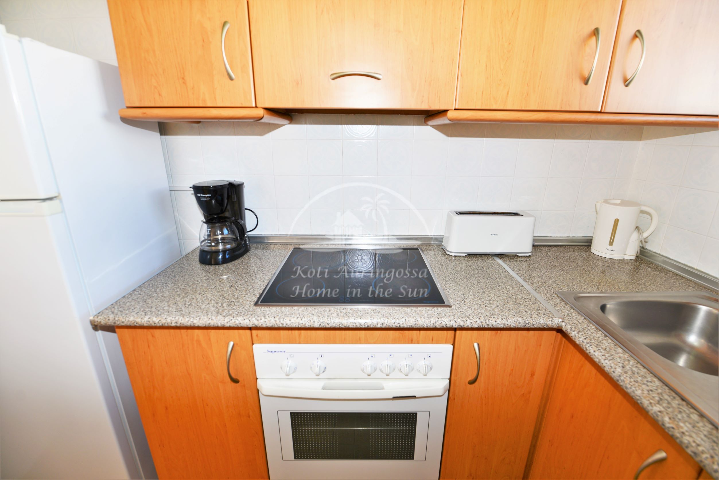Asunto on kauniisti kalustettu ja sisustettu. Valoisa olohuone ja ruokailutila, olohuoneesta ja makuuhuoneesta käynti aurinkoiselle länteen päin olevalle terassille. Terassilta kauniit näkymät merelle.