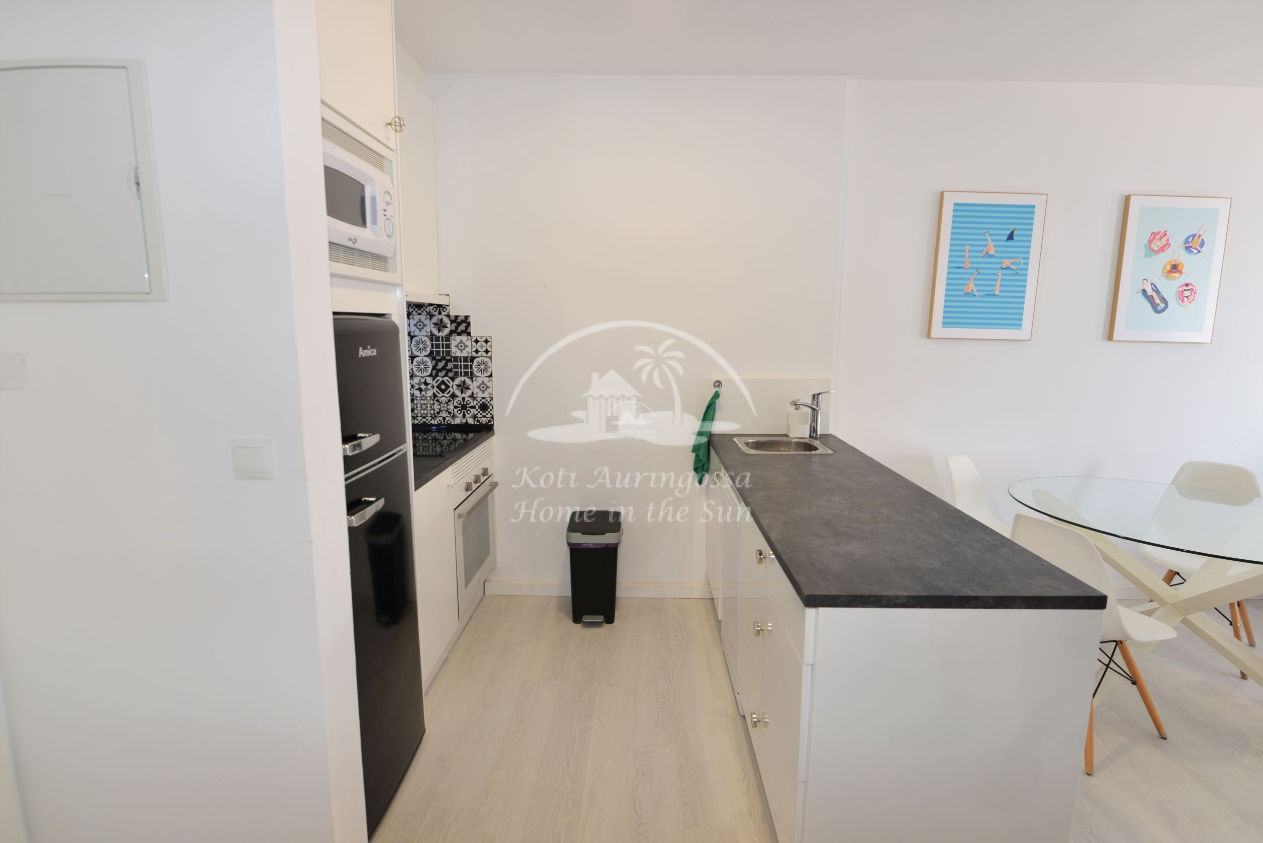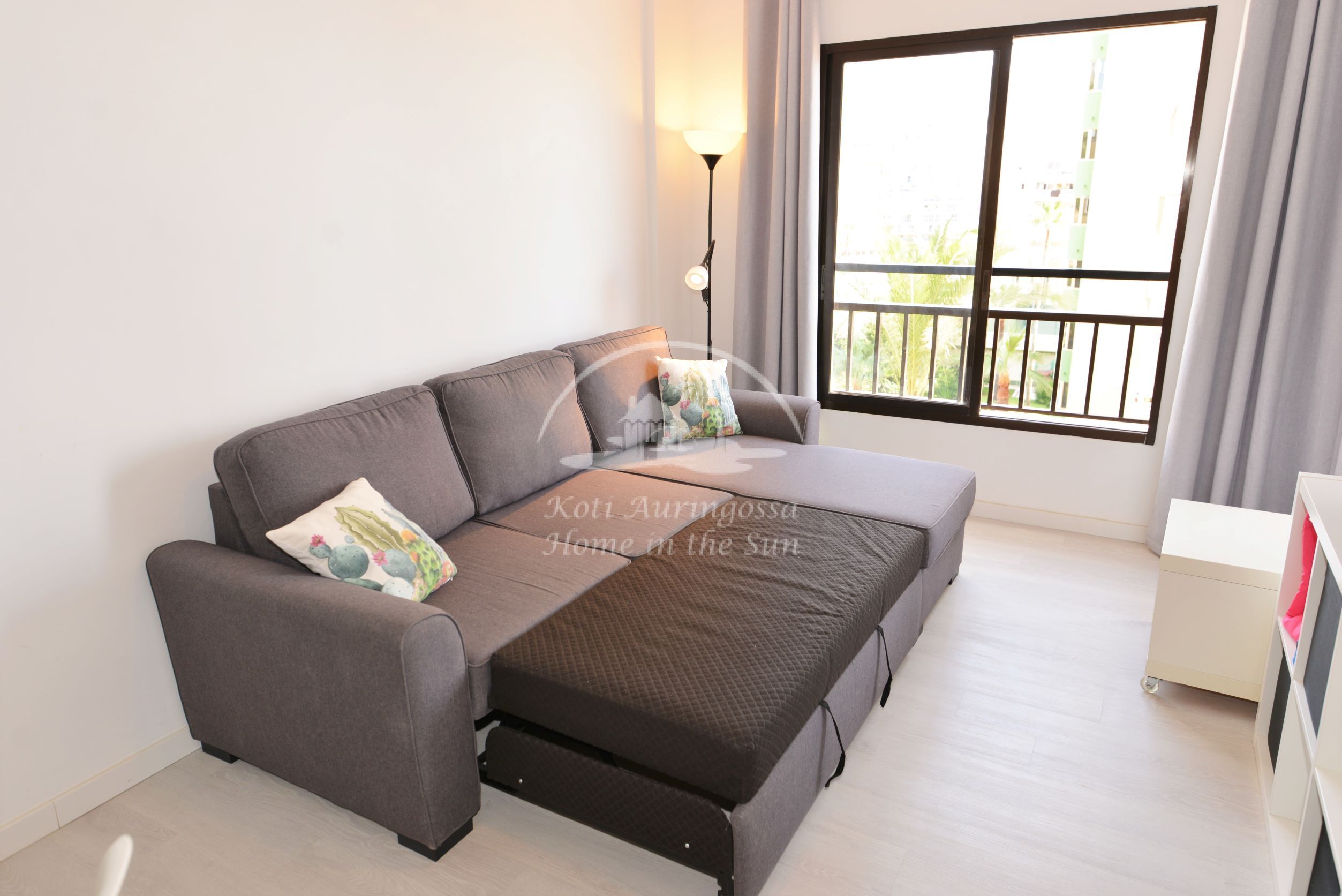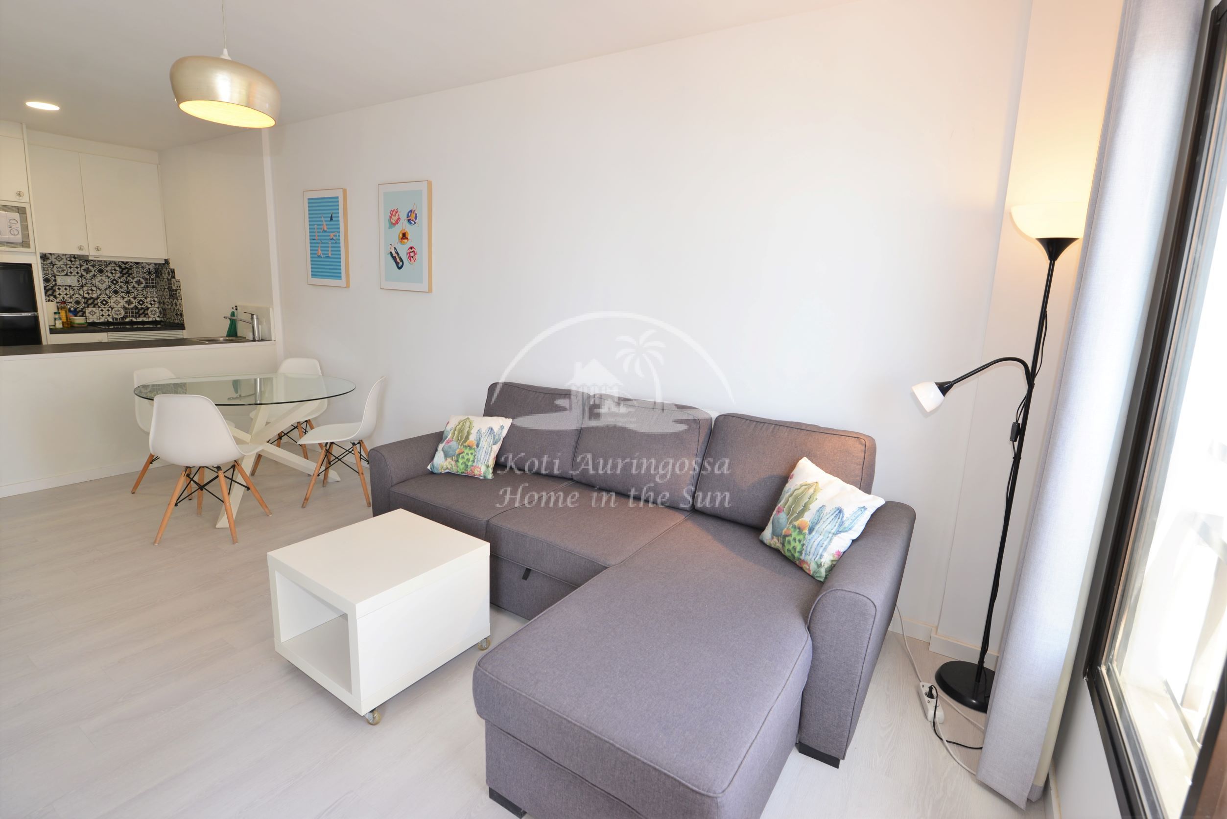 Asunto on kauttaaltaan uusittu ja remontoitu. Se on kauniisti sisustettu ja kalustettu vaalein värein pohjoismaalaiseen makuun. Valoisa olohuone ja ruokailutila. Olohuoneesta on käynti itään päin olevalle terassille. Olohuoneen sohva aukeaa leväksi parivuoteeksi. Moderni amerikkalainen keittiö, jossa on myös astianpesukone. 1 makuuhuone. 1 kylpyhuone. Ilmastointi lämpöpumppu olohuoneessa ja makuuhuoneessa. Taloyhtiössä on wifi internet automaatti, josta voi ostaa internet aikaa asuntoon. Taloyhtiössä on suuri uima-allas. Kaikki palvelut lähellä. Merenrantaan 50 metriä.