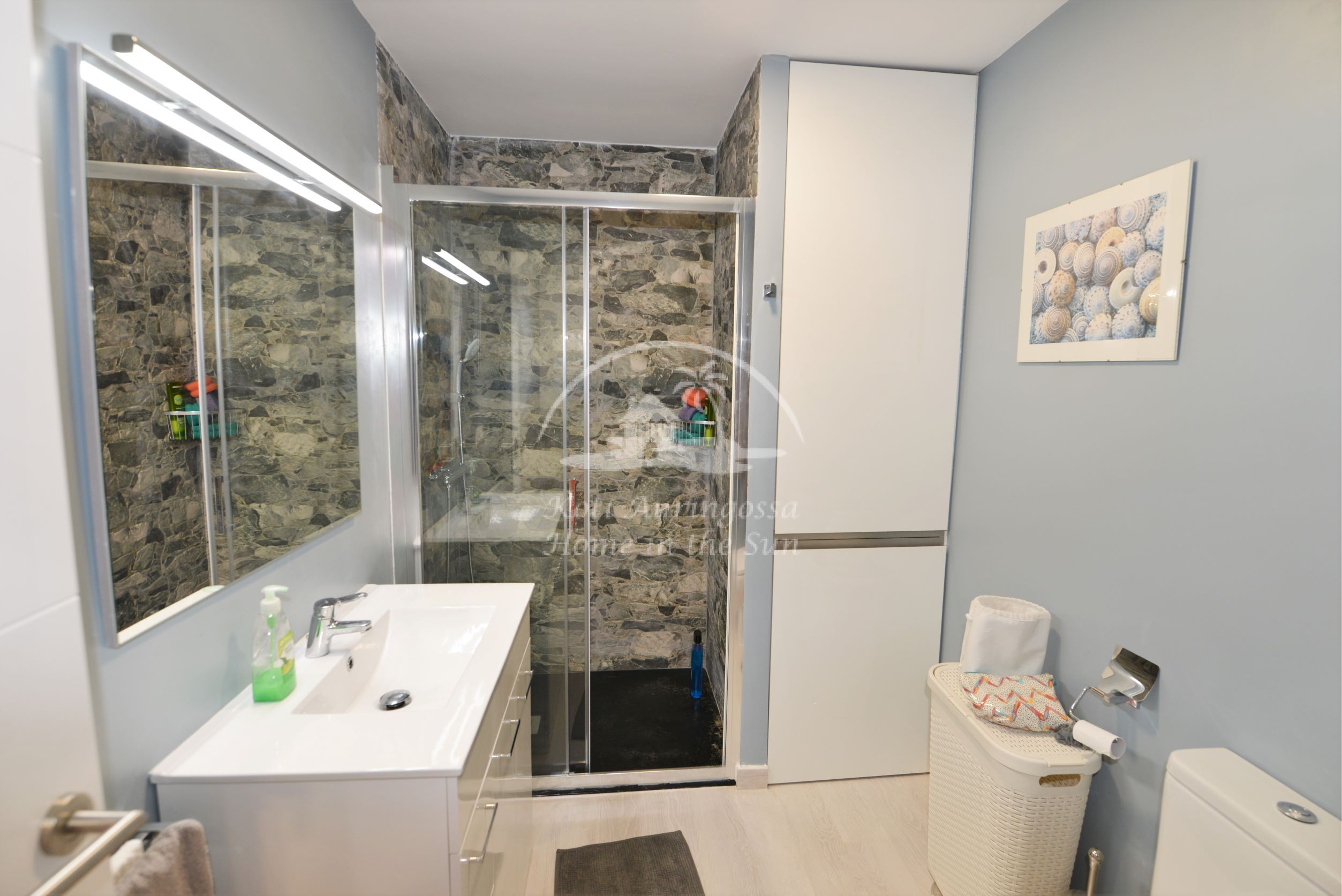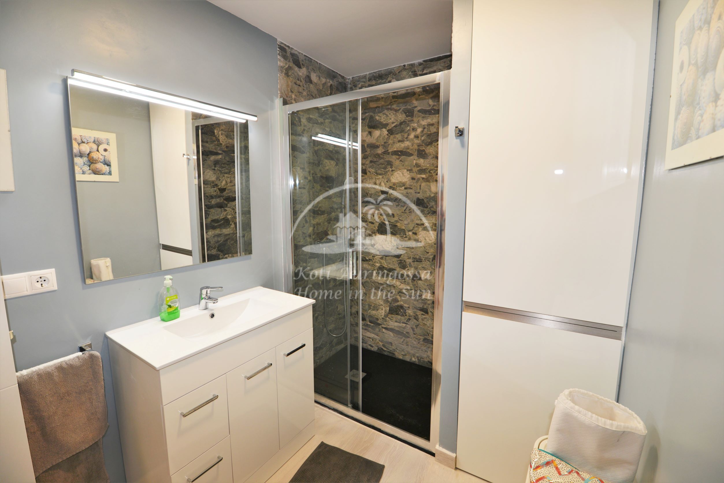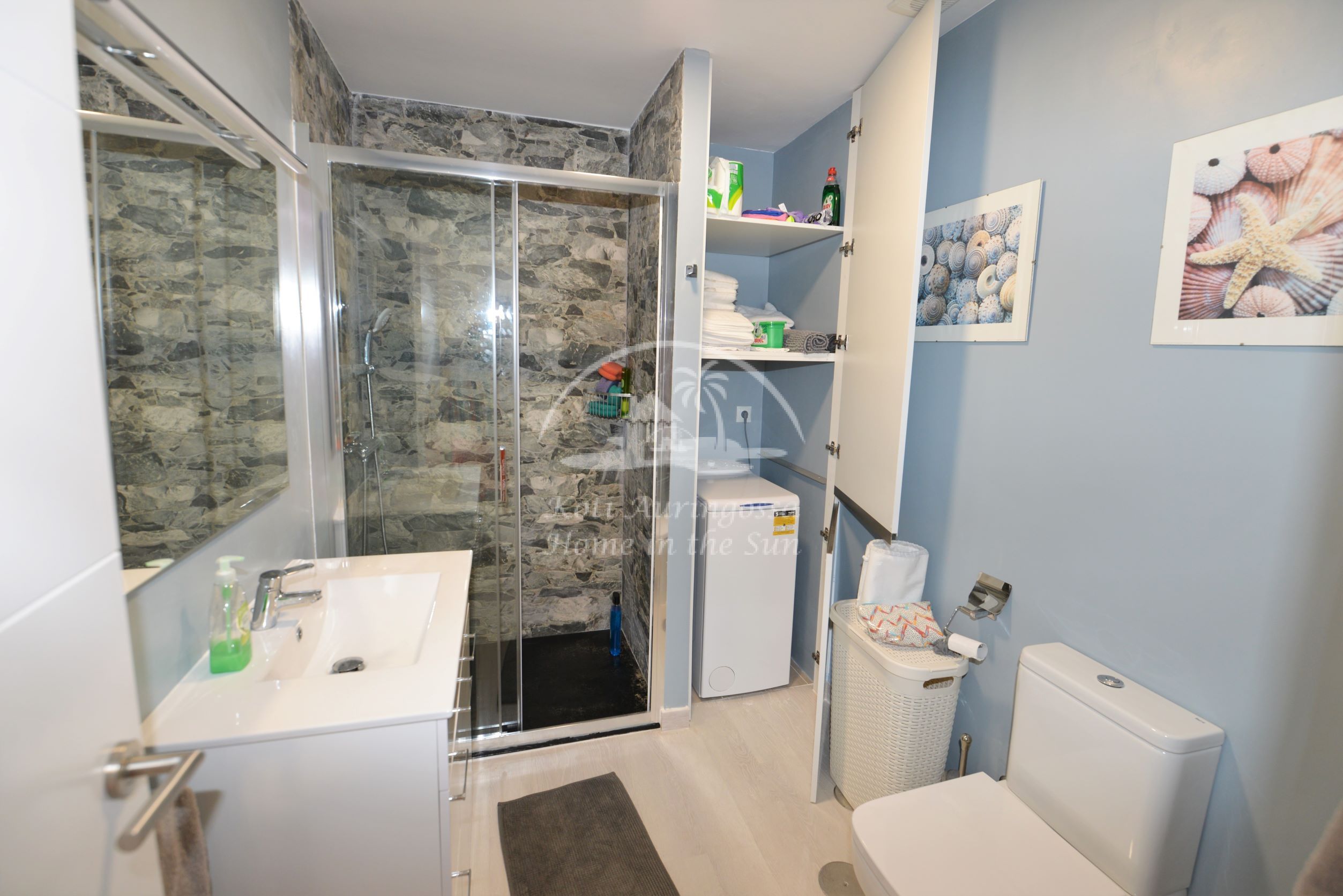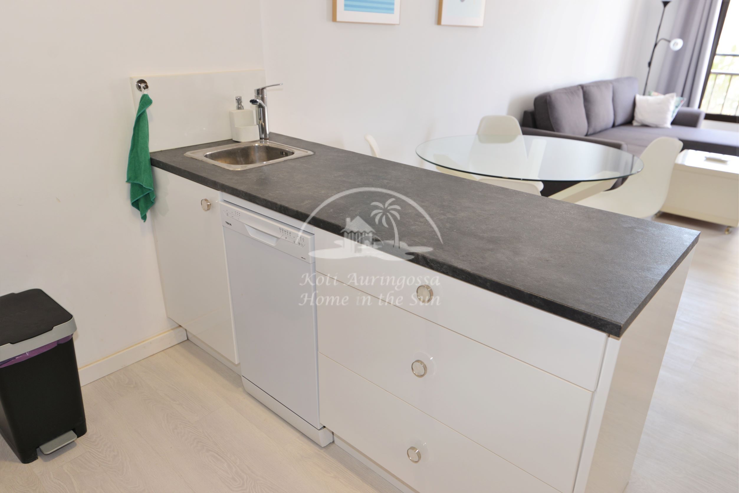 Asunto on kauttaaltaan uusittu ja remontoitu. Se on kauniisti sisustettu ja kalustettu vaalein värein pohjoismaalaiseen makuun. Valoisa olohuone ja ruokailutila. Olohuoneesta on käynti itään päin olevalle terassille. Olohuoneen sohva aukeaa leväksi parivuoteeksi. Moderni amerikkalainen keittiö, jossa on myös astianpesukone. 1 makuuhuone. 1 kylpyhuone. Ilmastointi lämpöpumppu olohuoneessa ja makuuhuoneessa. Taloyhtiössä on wifi internet automaatti, josta voi ostaa internet aikaa asuntoon. Taloyhtiössä on suuri uima-allas. Kaikki palvelut lähellä. Merenrantaan 50 metriä.