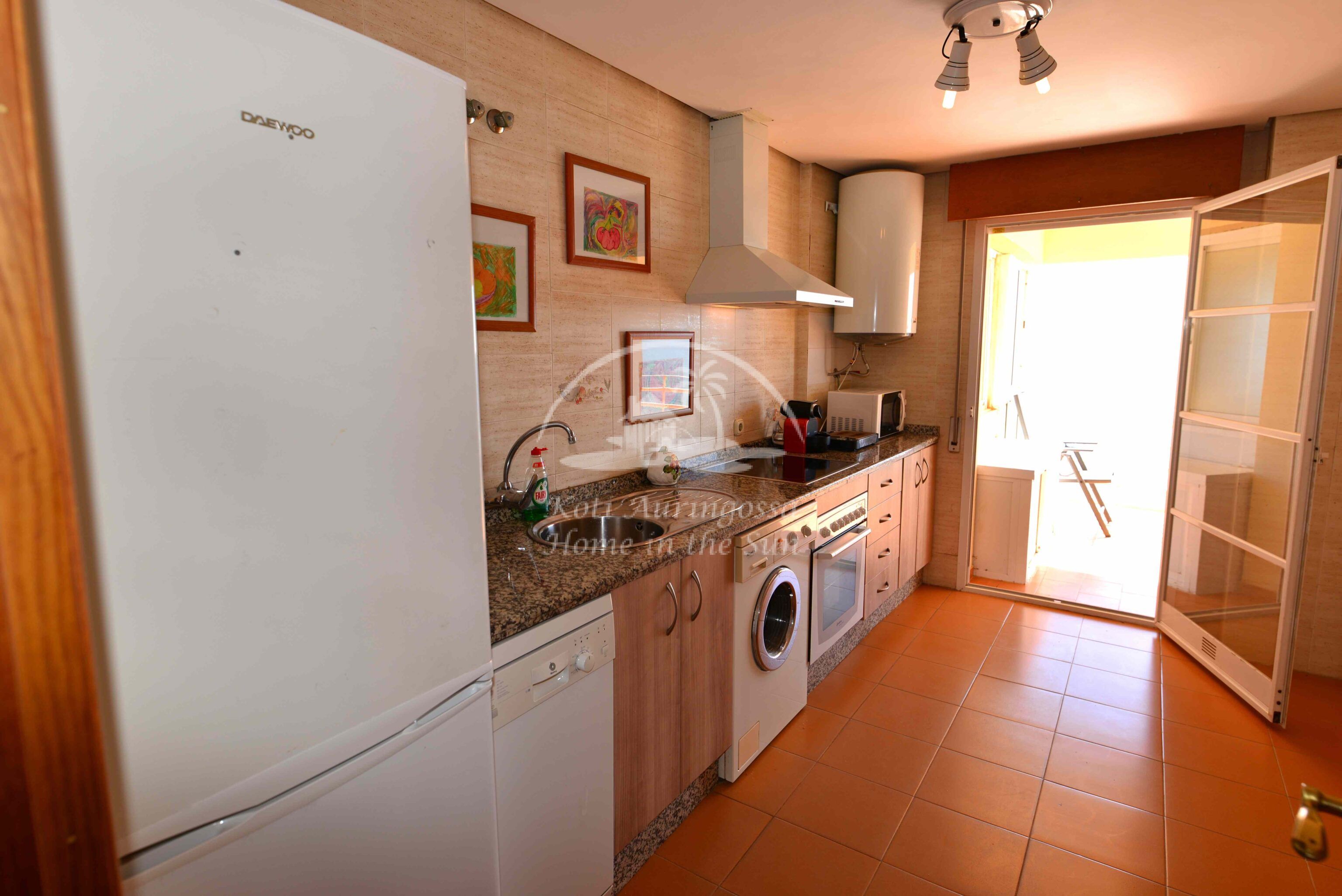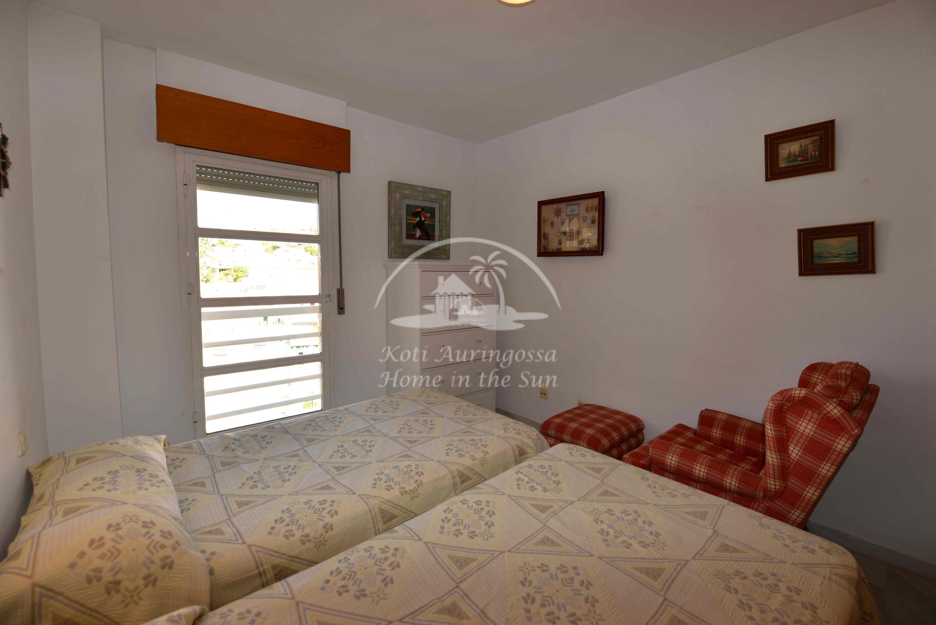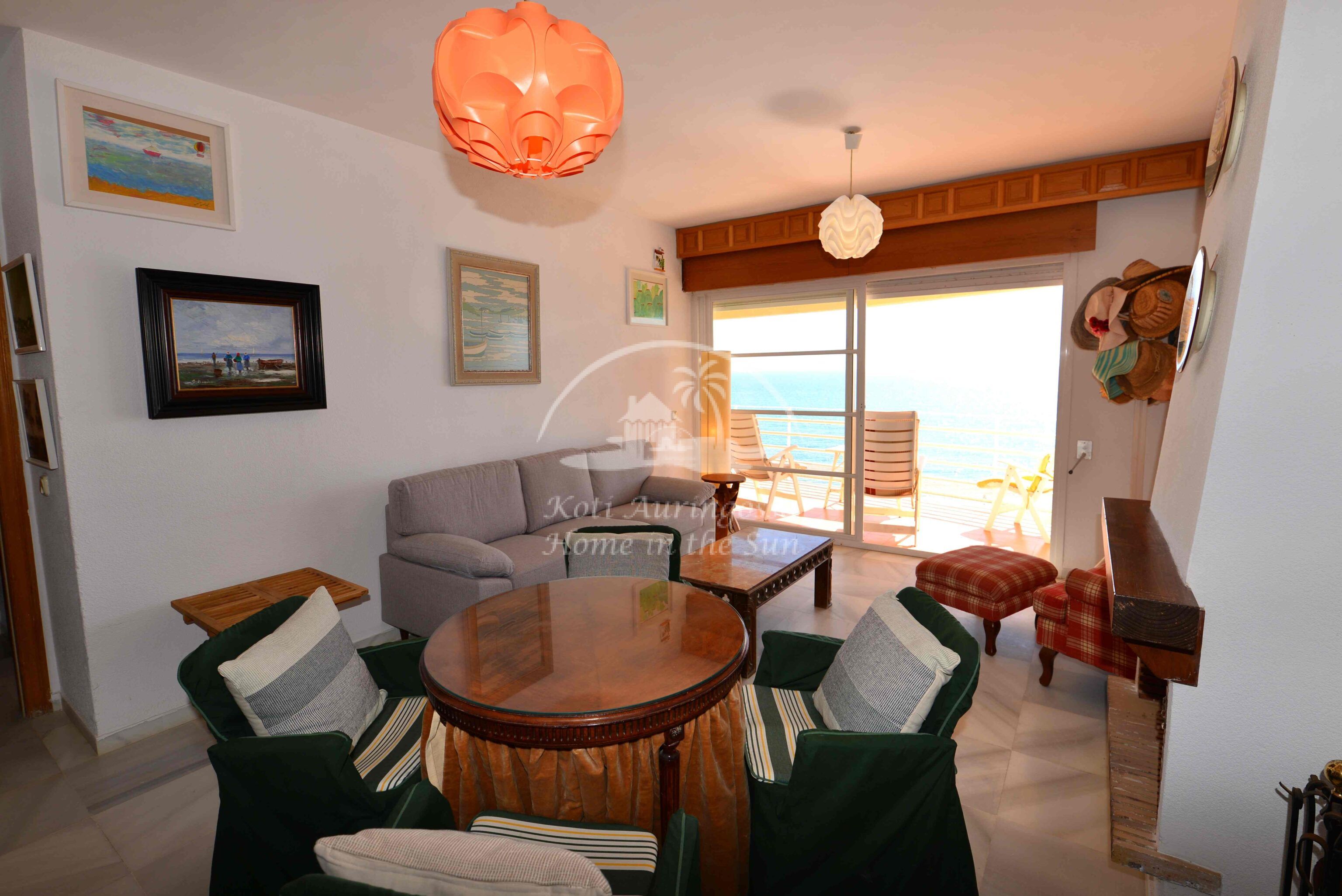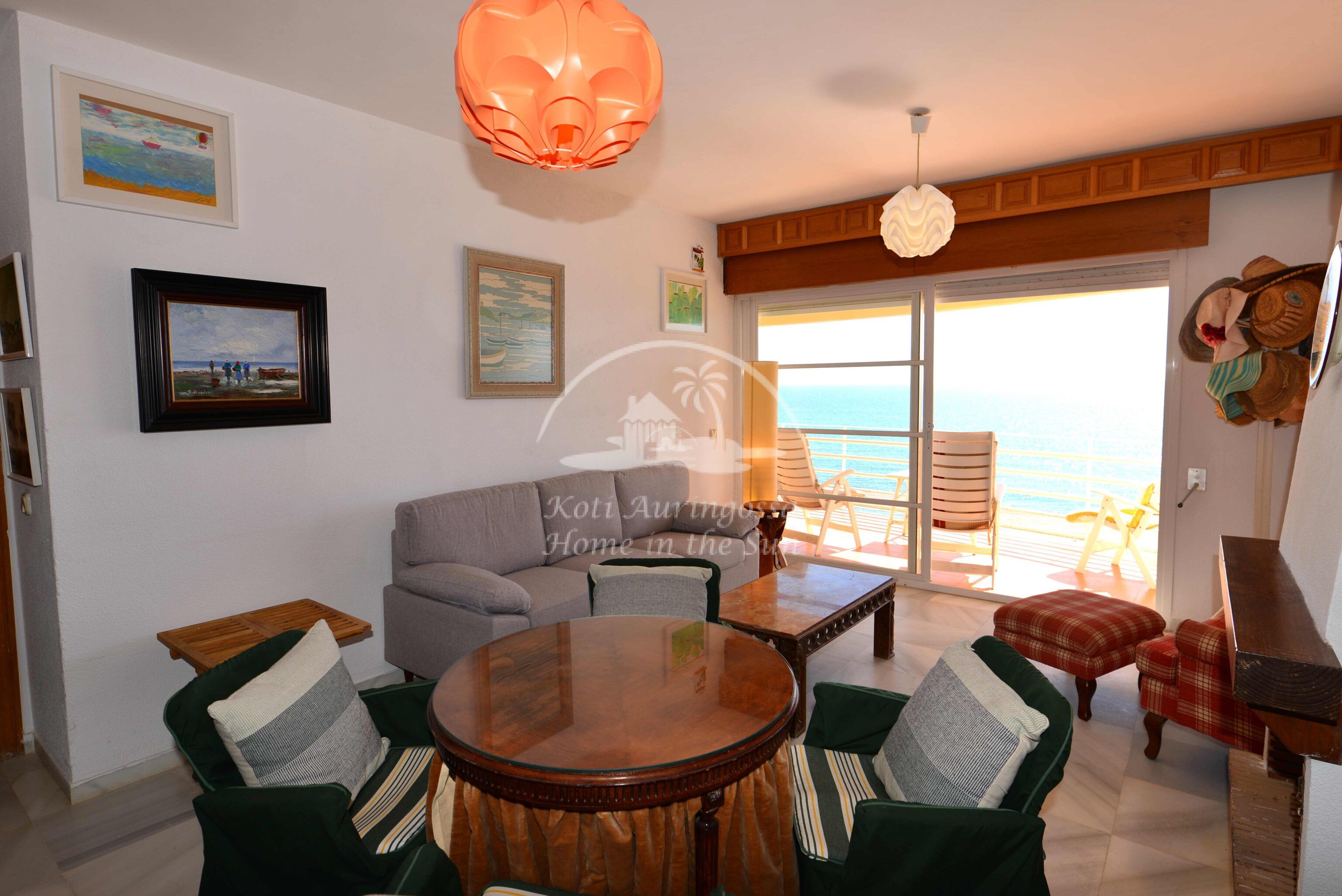 Asunto on kodikkaasti kalustettu ja sisustettu. Valoisa olohuone ja ruokailutila takalla. Olohuoneesta ja keittiöstä, on käynti etelä -länteen päin olevalle aurinkoiselle terassille, terassilta on kauniit näkymät merelle ja koko rannikolle. Erillinen tilava keittiö, jossa on myös astianpesukone. 2 makuuhuonetta.