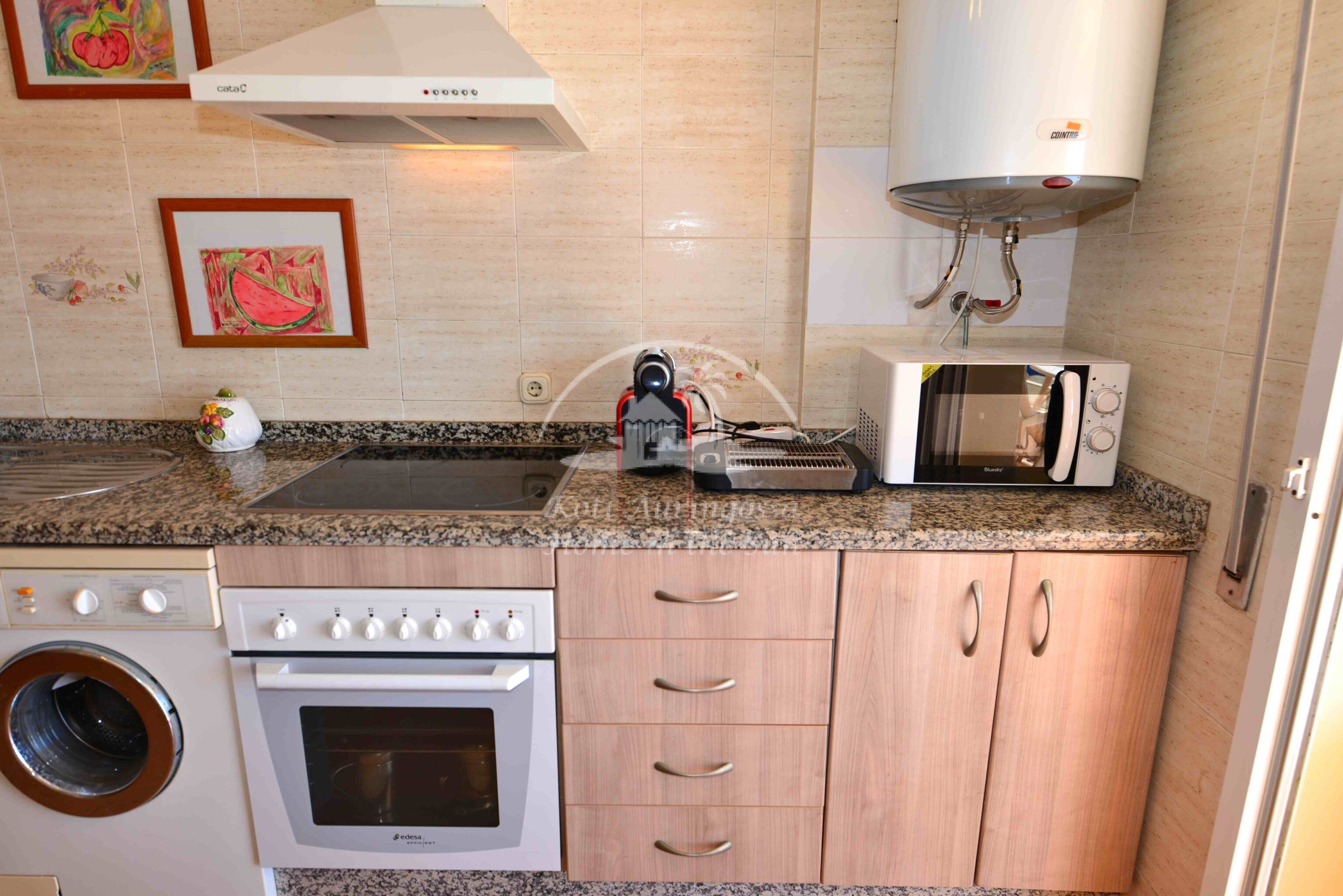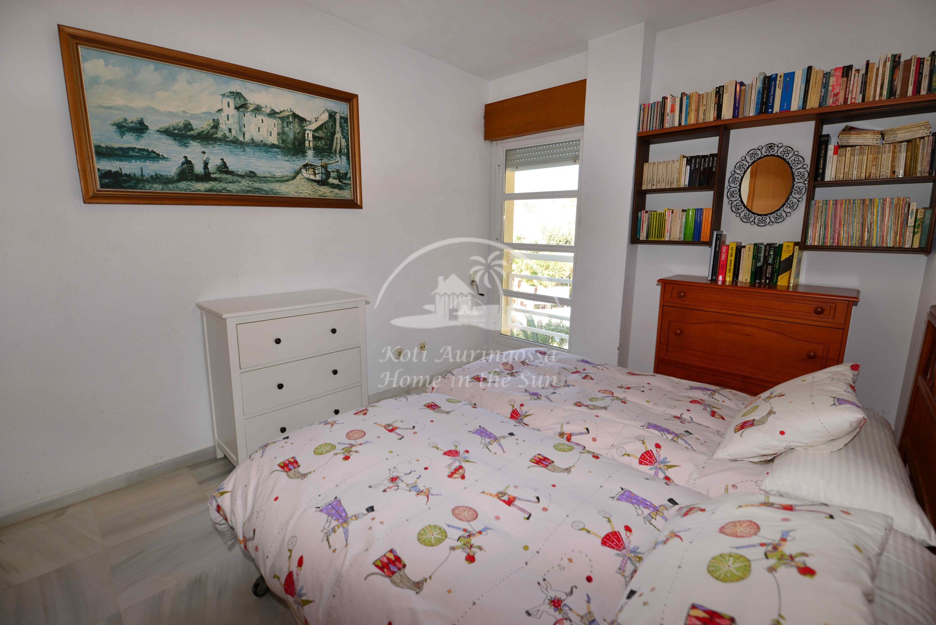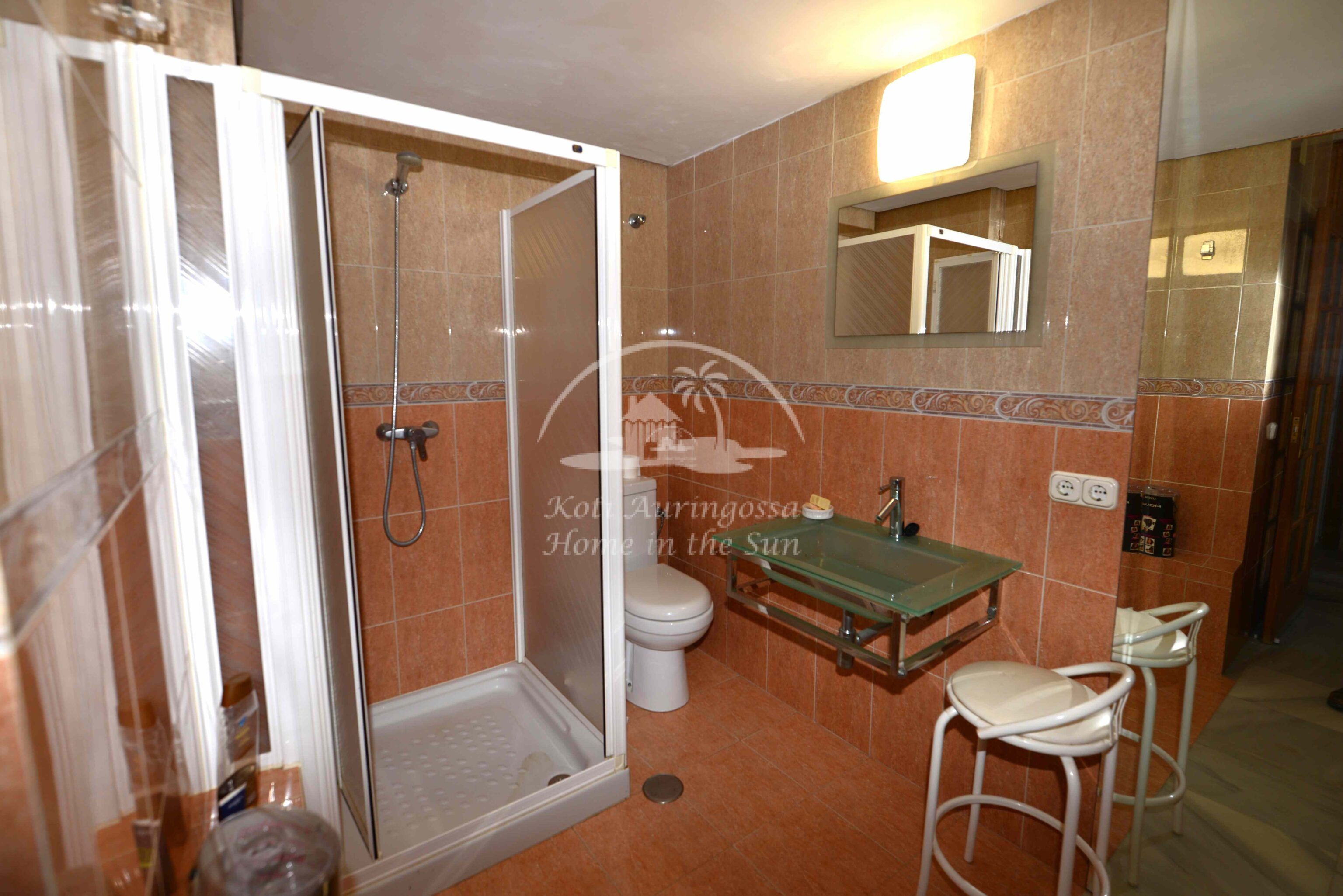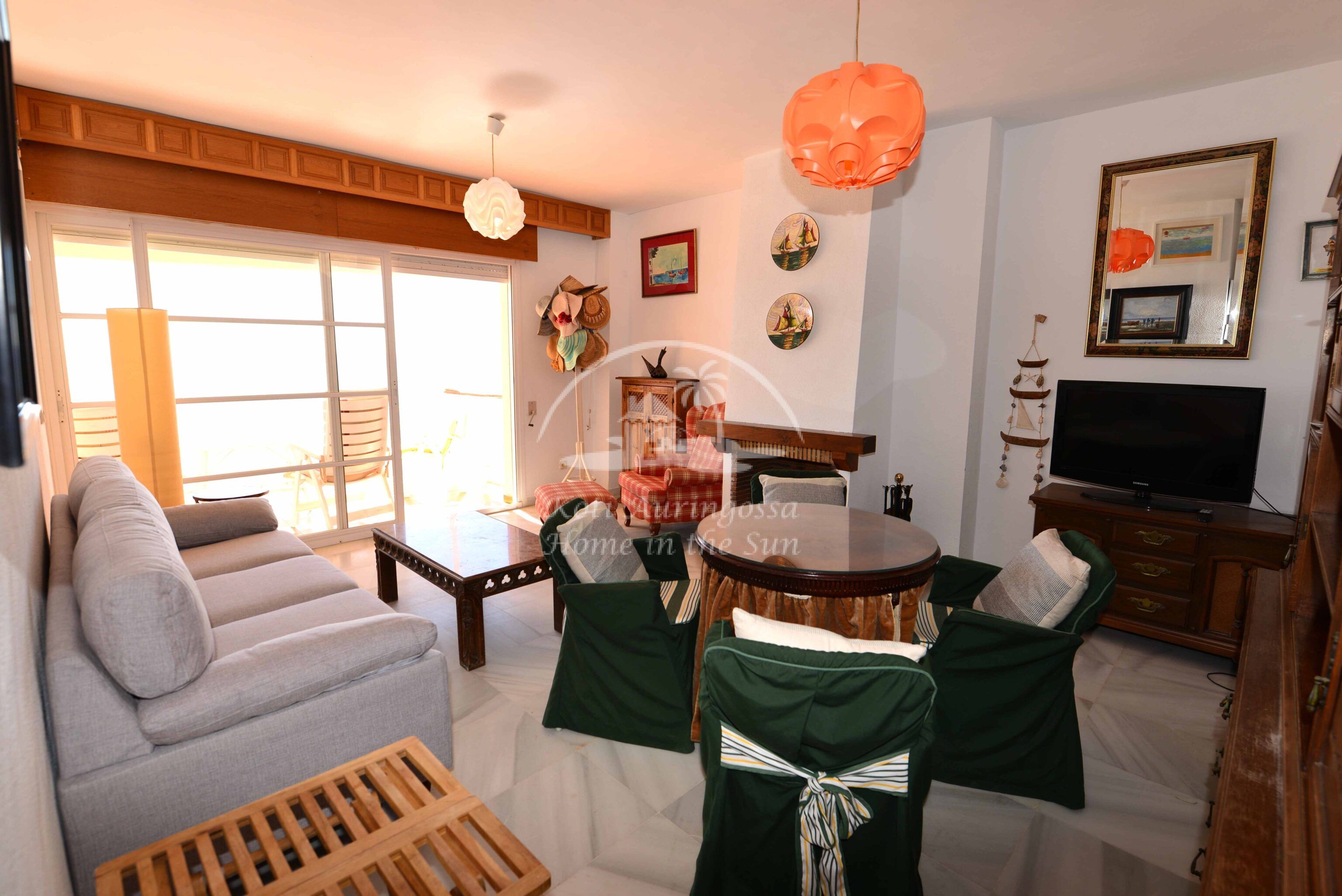 Asunto on kodikkaasti kalustettu ja sisustettu. Valoisa olohuone ja ruokailutila takalla. Olohuoneesta ja keittiöstä, on käynti etelä -länteen päin olevalle aurinkoiselle terassille, terassilta on kauniit näkymät merelle ja koko rannikolle. Erillinen tilava keittiö, jossa on myös astianpesukone. 2 makuuhuonetta.
