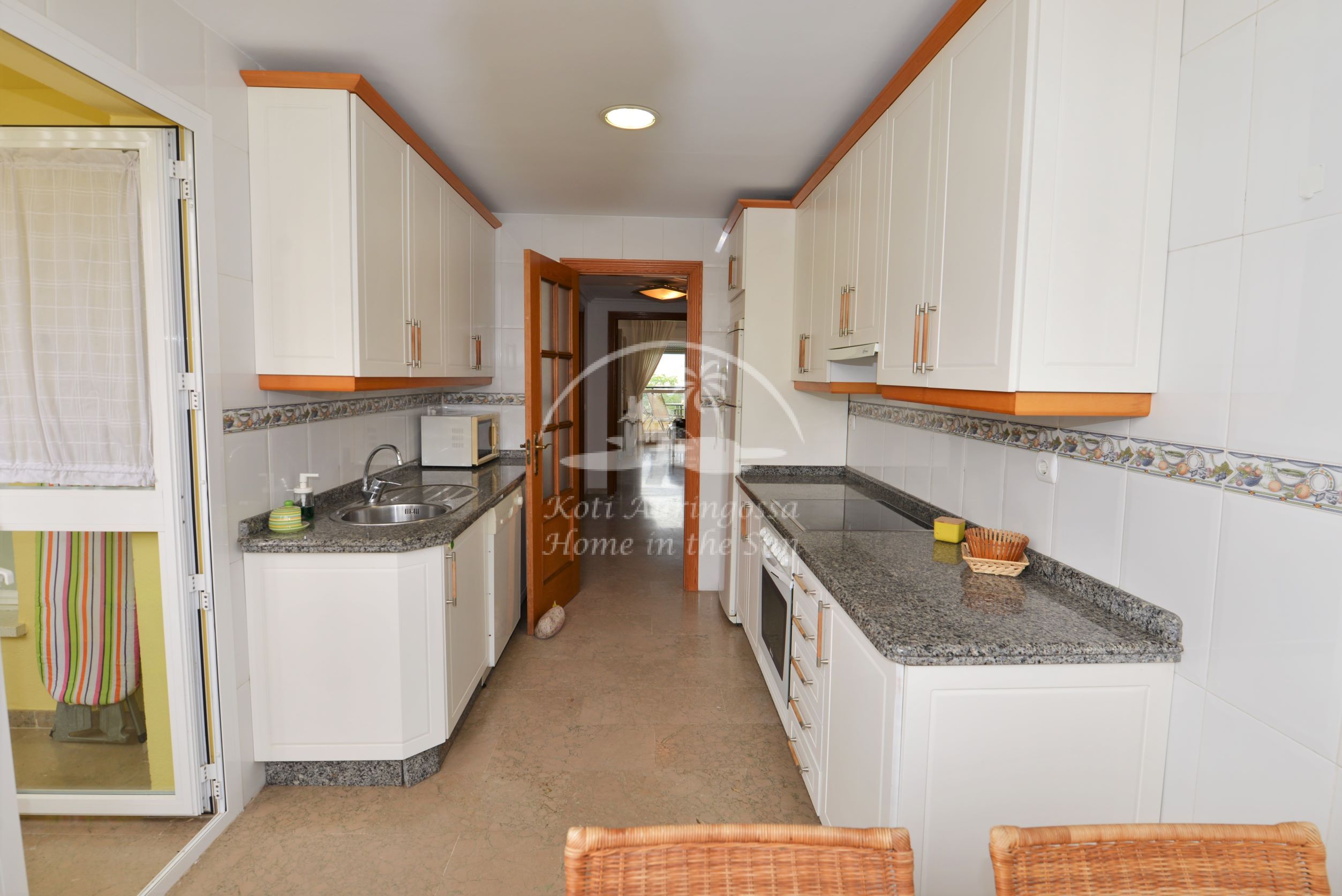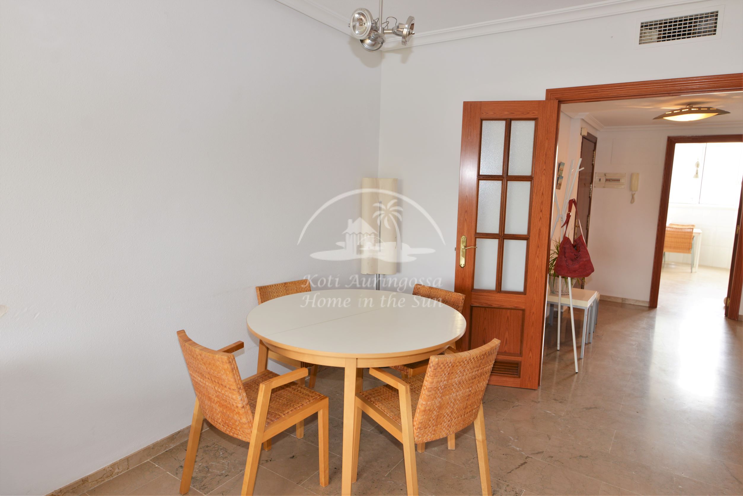 Asunto perus kalustettu ja sisustettu. Valoisa olohuone ja ruokailutila. Olohuoneesta on käynti länteen päin olevalla aurinkoiselle terassille. Erillinen tilava keittiö, jossa on myös astianpesukone.