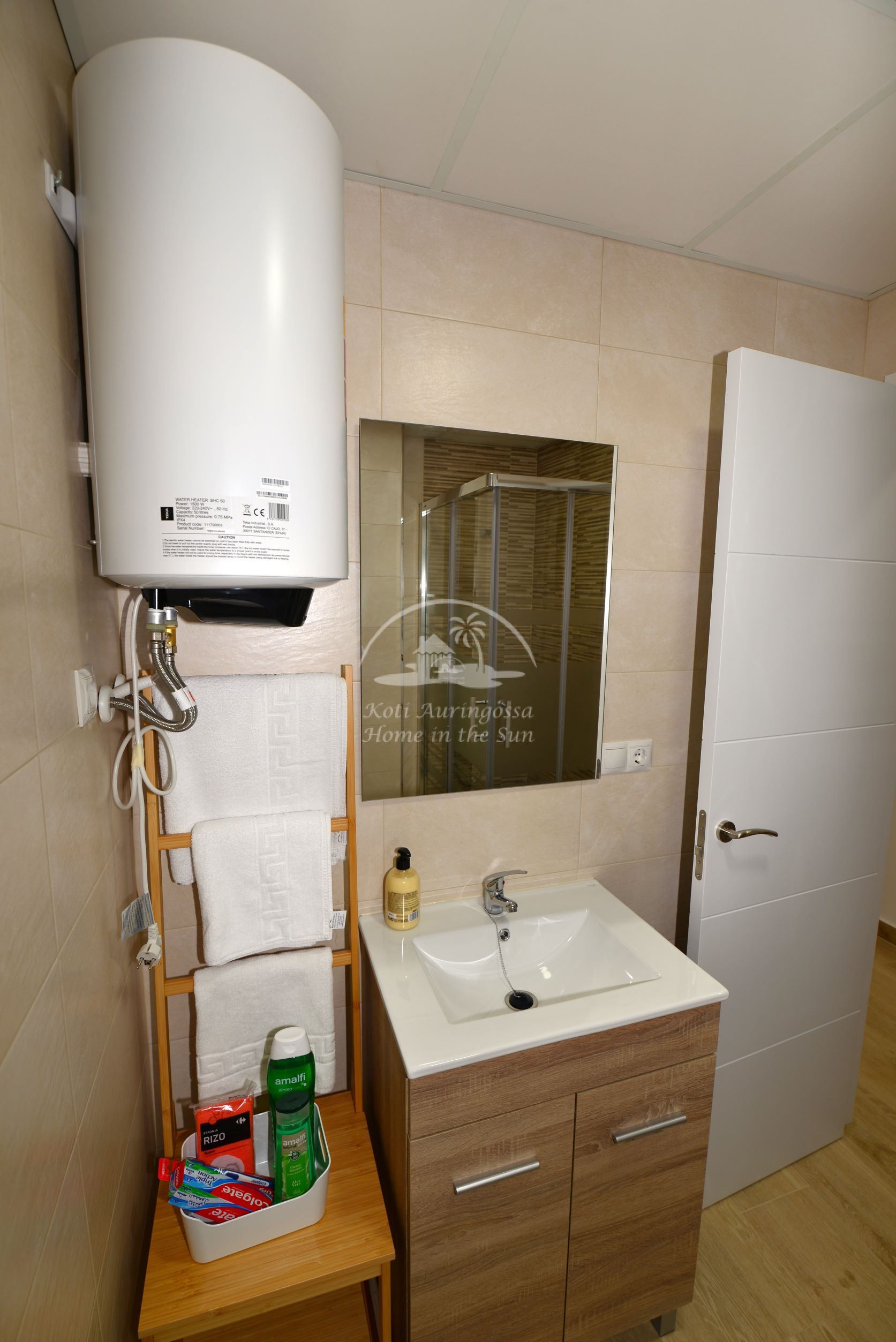 1 kylpyhuone suihkulla. Ilmastointi lämpöpumppu. Nopea valokuitu wifi internet yhteys valmiina.