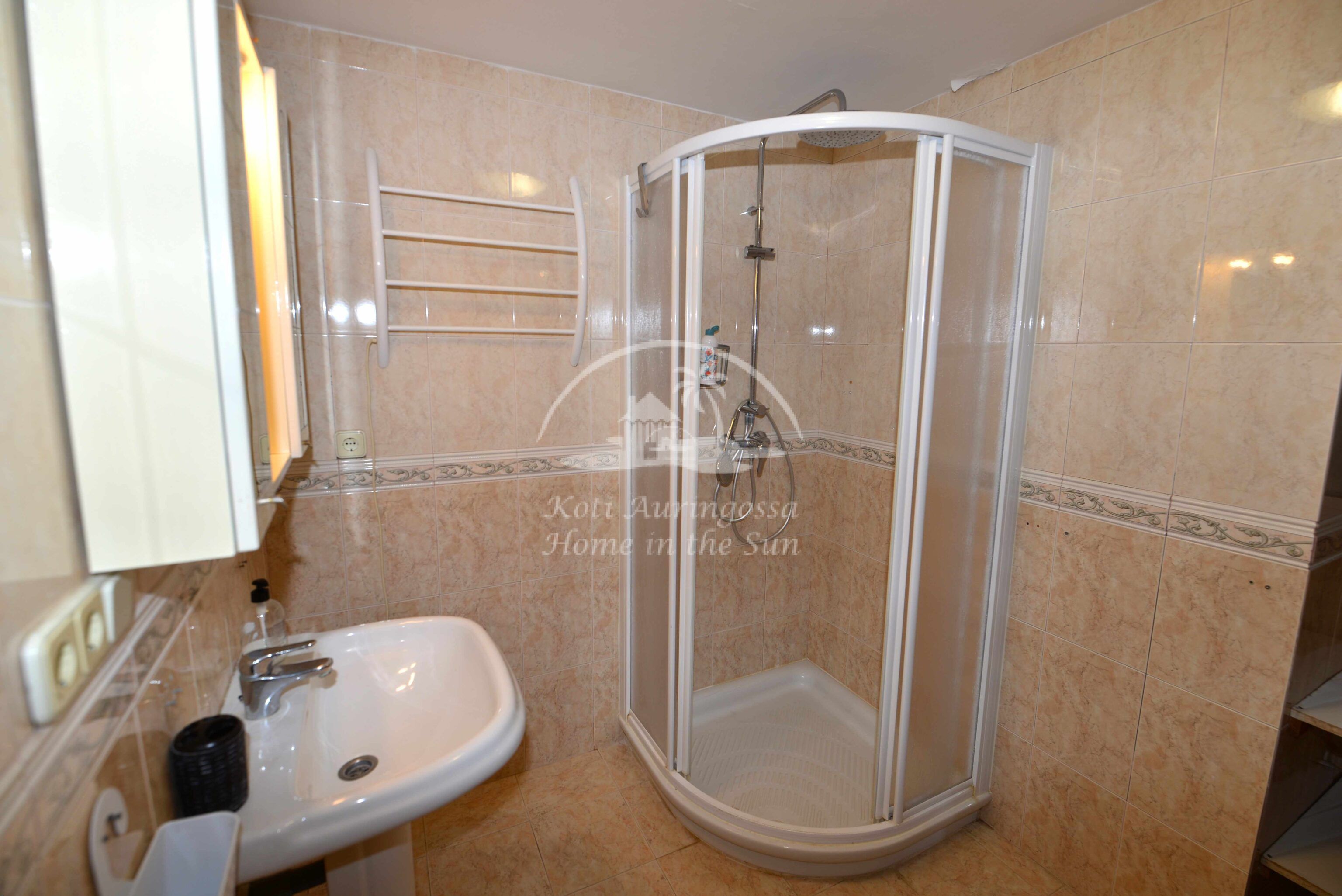 Asunto on kodikkaasti kalustettu ja sisustettu. Avara olohuone takalla, olohuoneesta on käynti asunnon kiertävälle etelä / länsi suuntaiselle katetulle terassille. Terassilta on avarat näkymät rannikolle. Terassilta pääsee talon edessä olevalle uima-altaalle ja kivalle grillaus alueelle. Erillinen keittiö, jossa on myös astianpesukone. 3 makuuhuonetta. 2 kylpyhuonetta. Ilmastointi lämpöpumppu olohuoneessa ja kaikissa kolmessa makuuhuoneessa. Täysin aidattu tontti. Talon edessä on suuri ilmainen parkkialue. Merenrantaan noin 300 metriä.