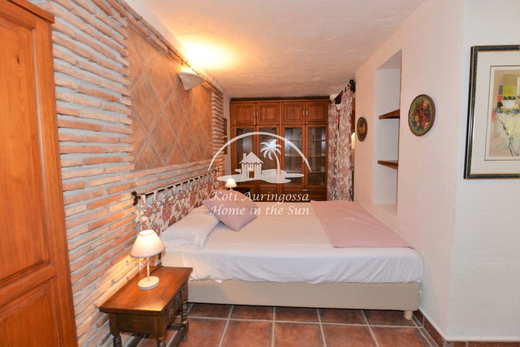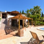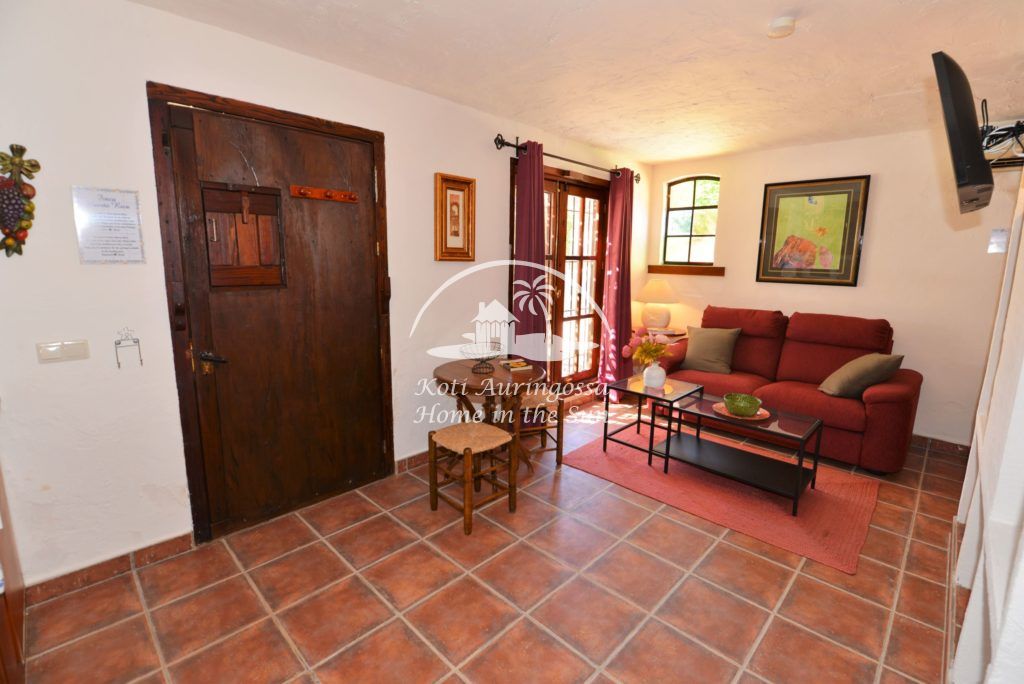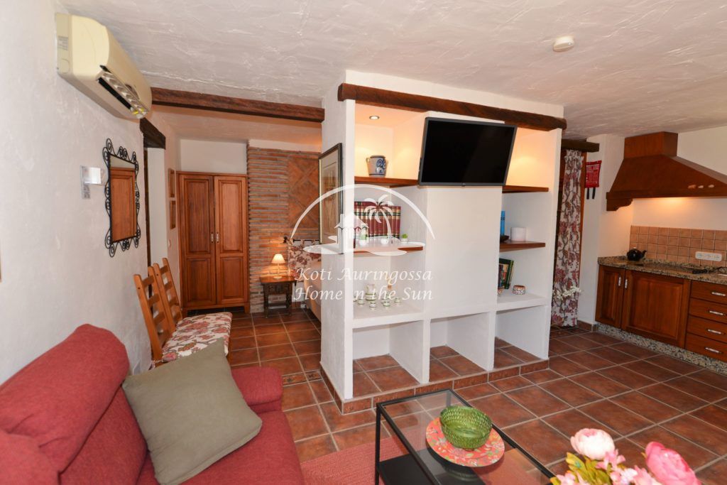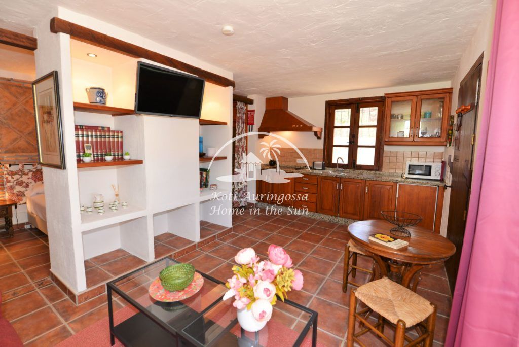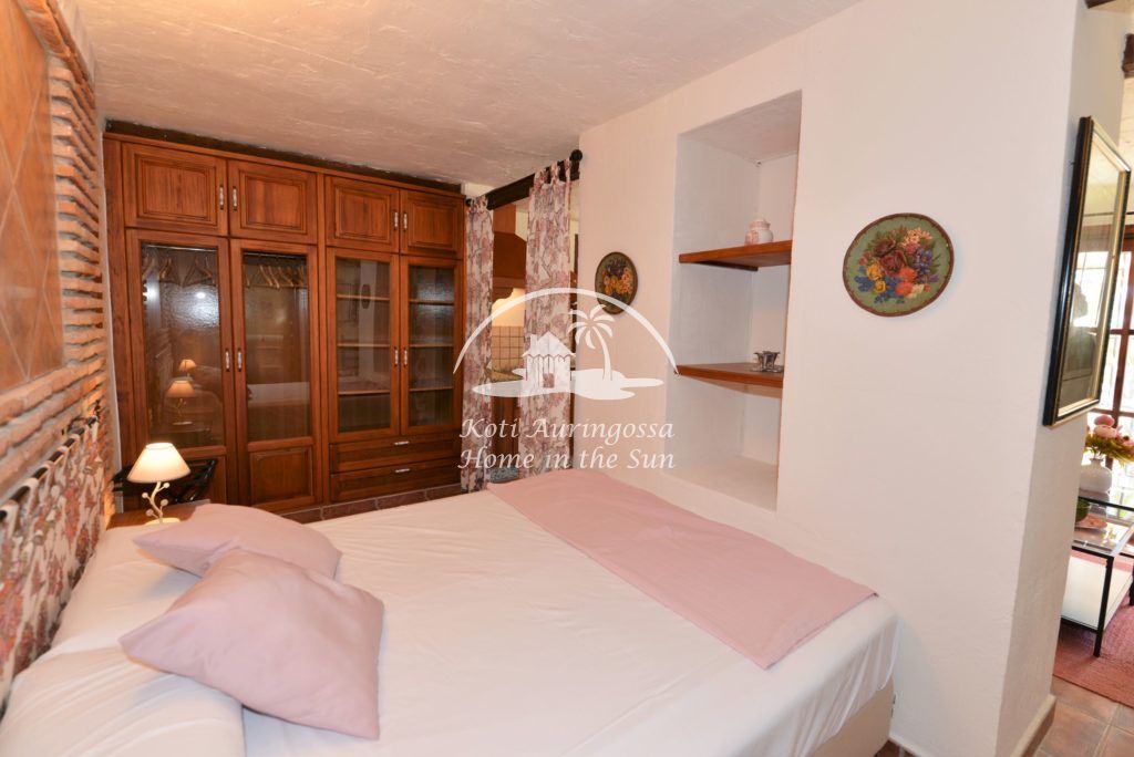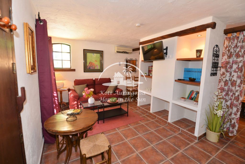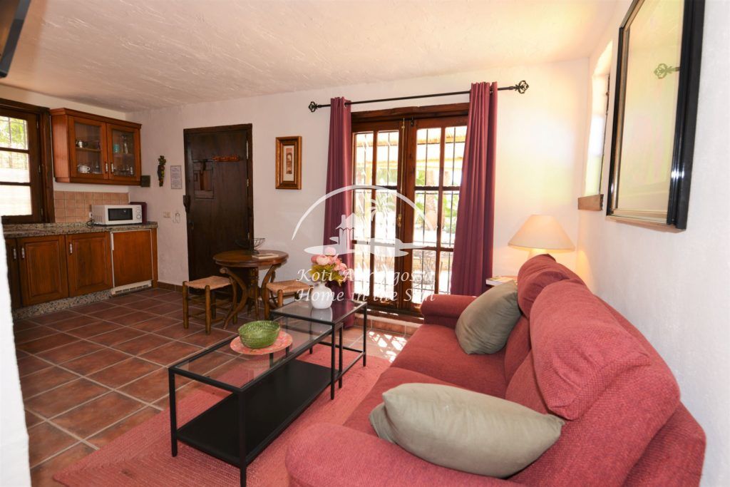 Bungalow Palmeral, Tässä kauniissa bungalowissa on valoisa olohuone ja ruokailutila. Moderni avokeittiö. 1 avara makuuhuone. 1 kylpyhuone suihkulla. Suuri katettu terassi josta pääsee suoraan uima-allas alueelle. Mijakseen ja Alhaurin el Grandeen ajaa noin 10 min. Fuengirolaan noin 25 min.