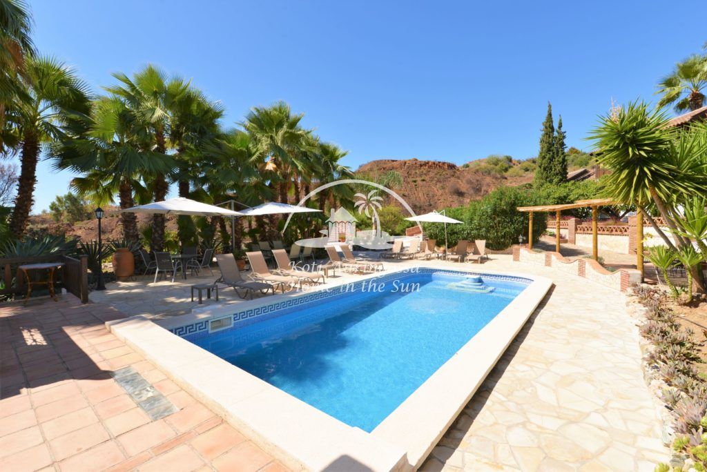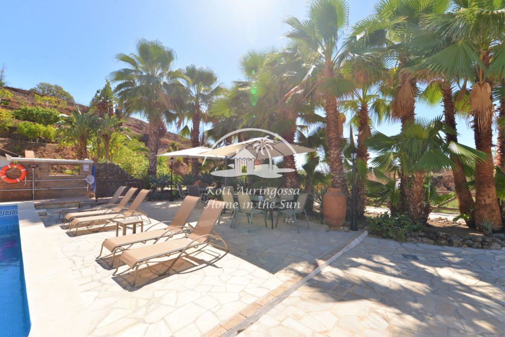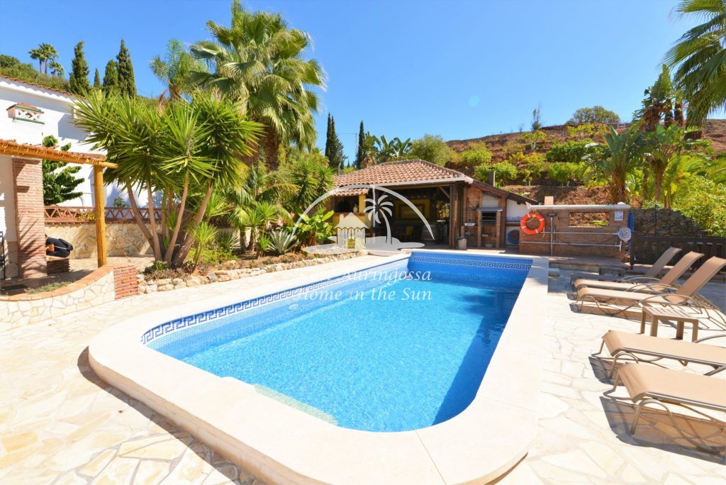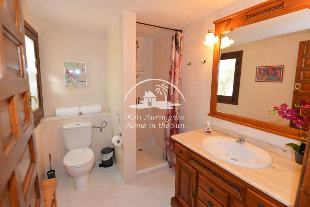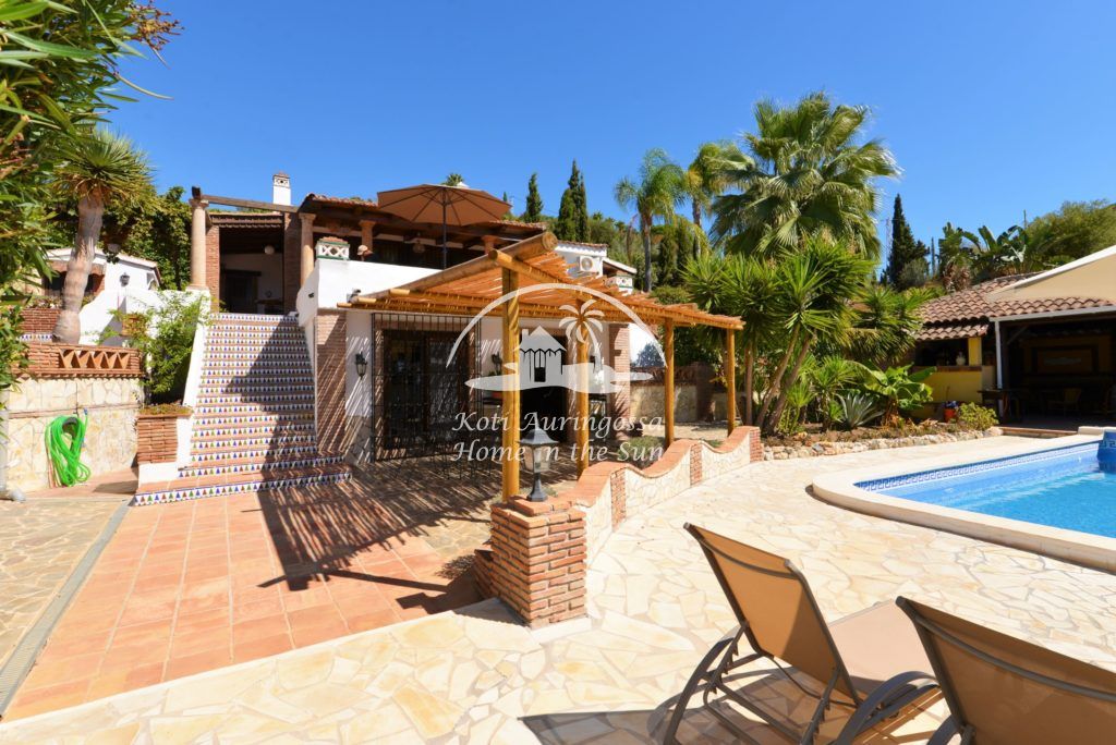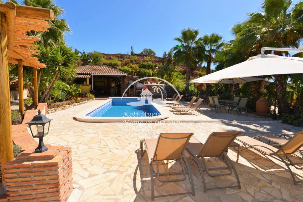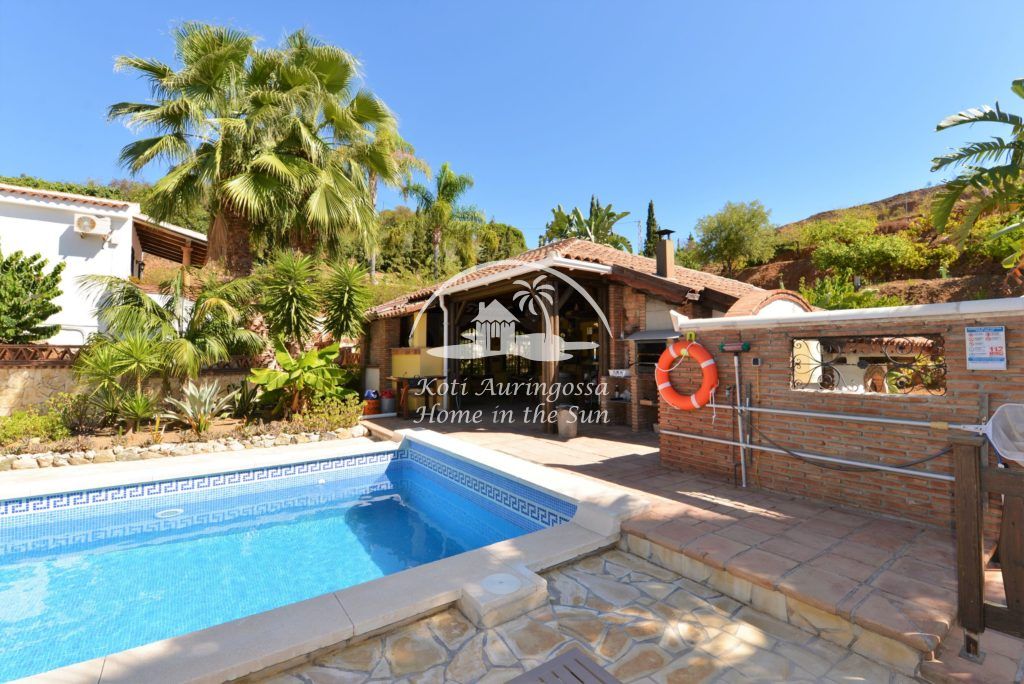 Bungalow Palmeral, Tässä kauniissa bungalowissa on valoisa olohuone ja ruokailutila. Moderni avokeittiö. 1 avara makuuhuone. 1 kylpyhuone suihkulla. Suuri katettu terassi josta pääsee suoraan uima-allas alueelle. Mijakseen ja Alhaurin el Grandeen ajaa noin 10 min. Fuengirolaan noin 25 min.