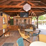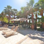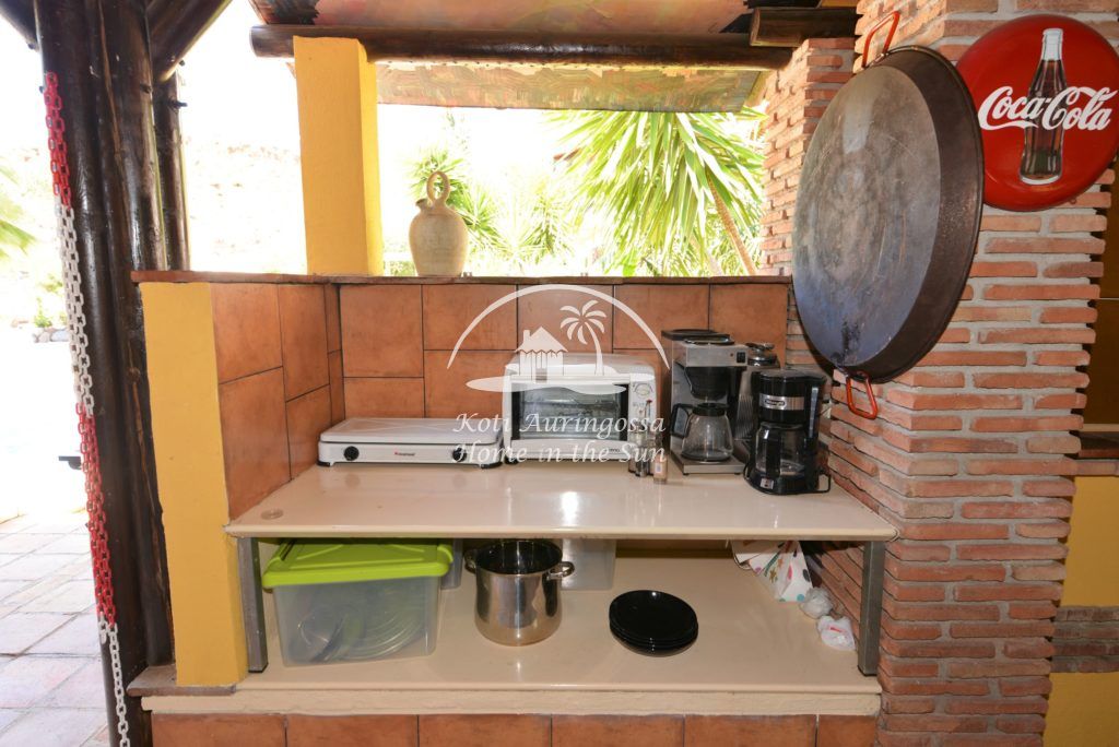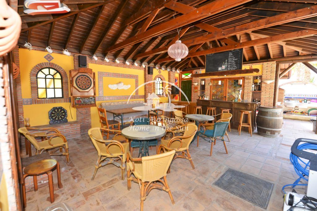 Upea yhteinen uima-allas alue, jonka ympärillä on runsaasti auringonotto tilaa. Vieressä katettu baari terassi, jossa on grilli ja pienen välipalan tekoon tarvittavat laitteet kuten pieni grilliuuni ja kahvinkeitin.